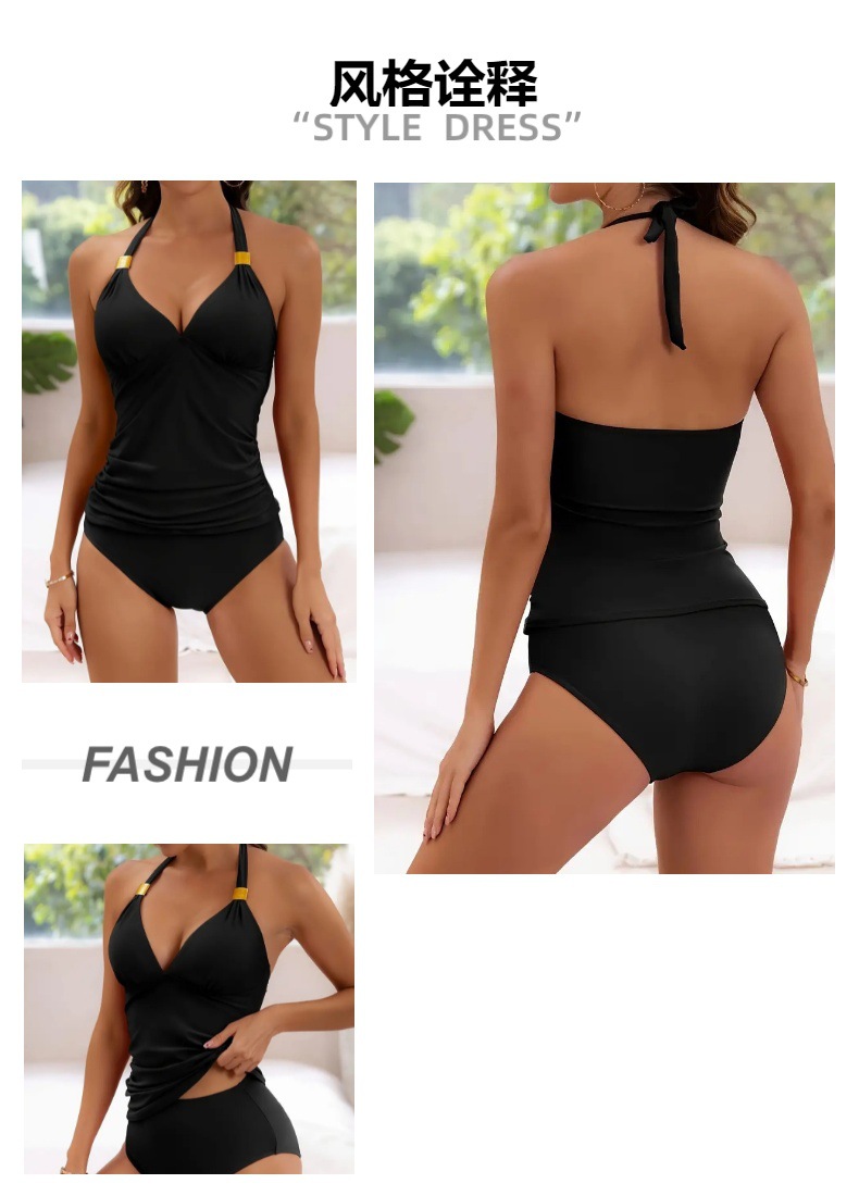 Купальник-бикини Amazon 2025: однотонный, с завязками на шее, с V-образным вырезом, с шортами, с эффектом утягивания живота