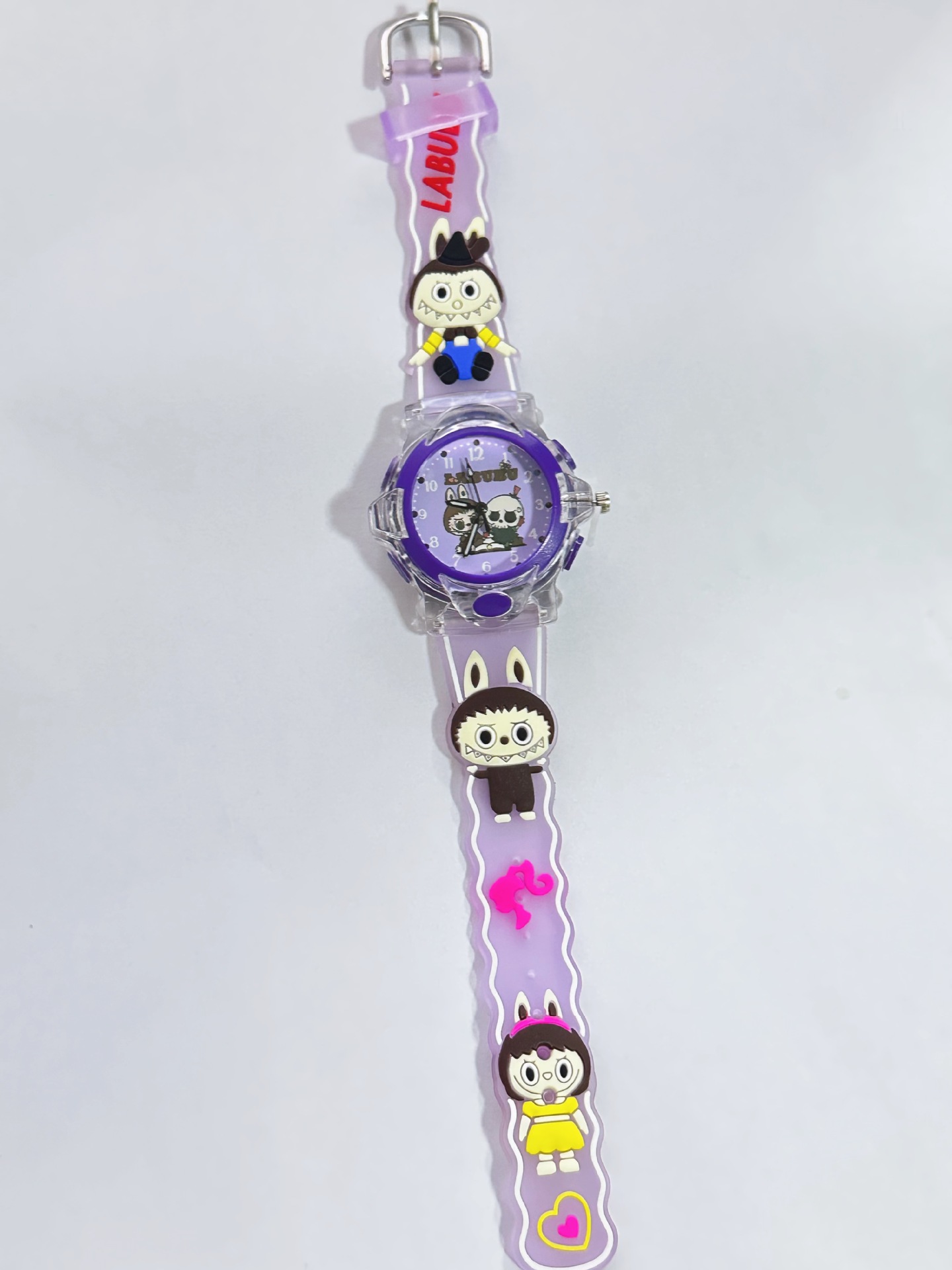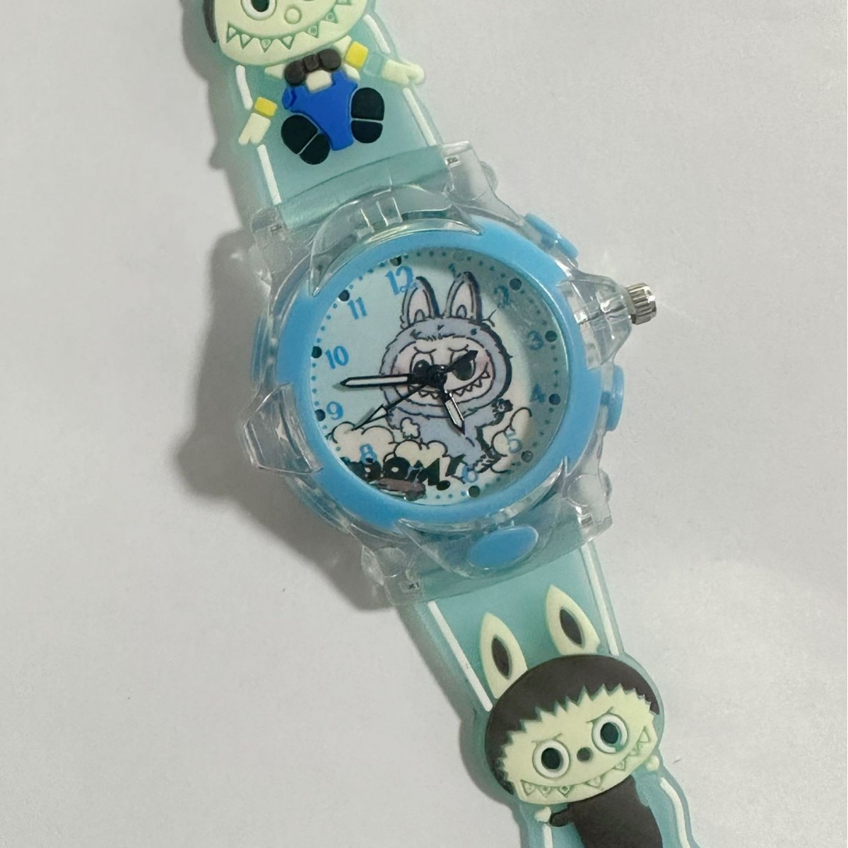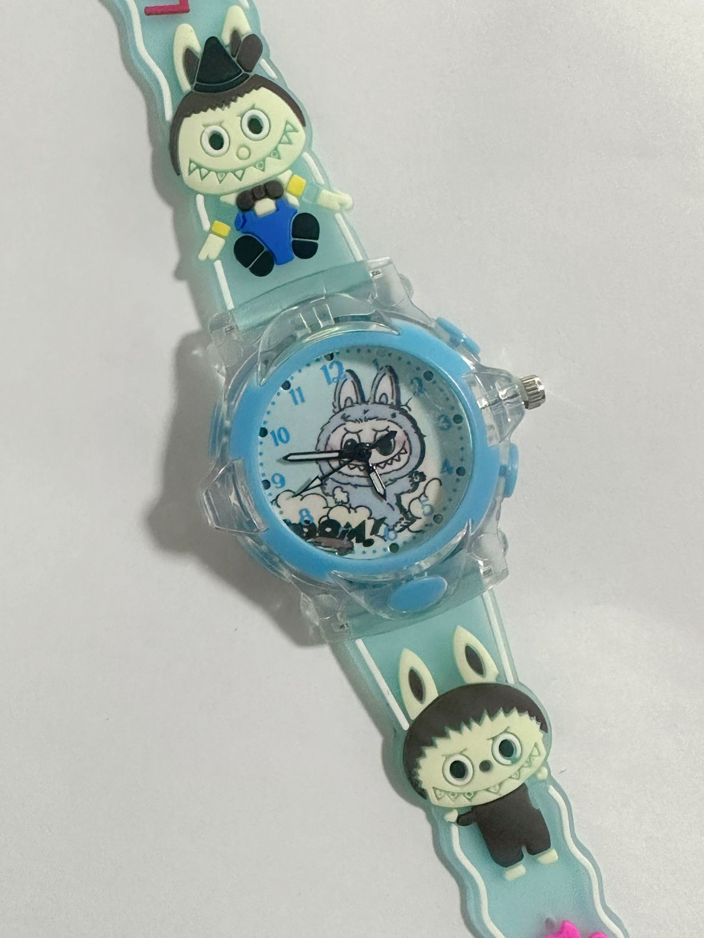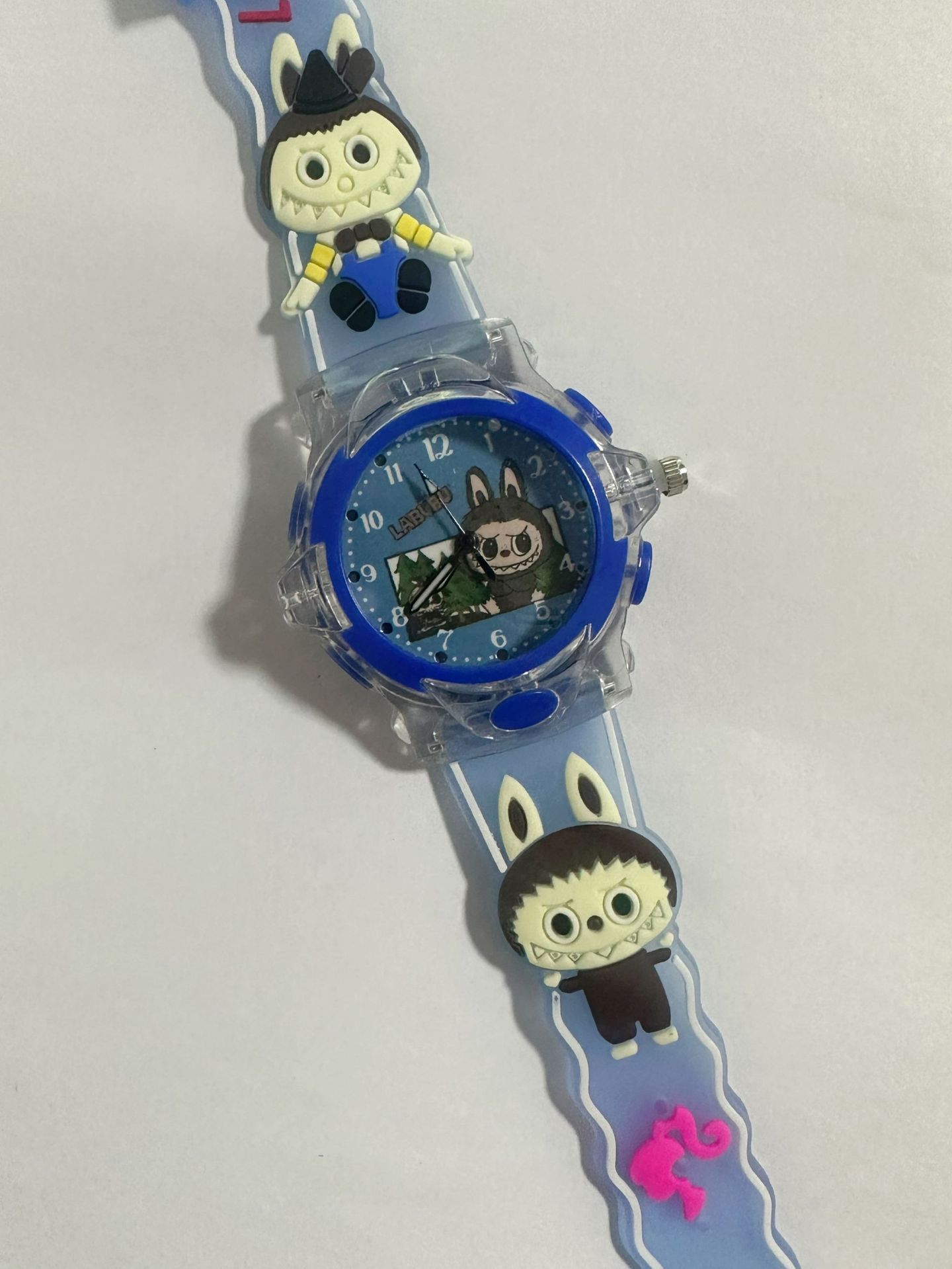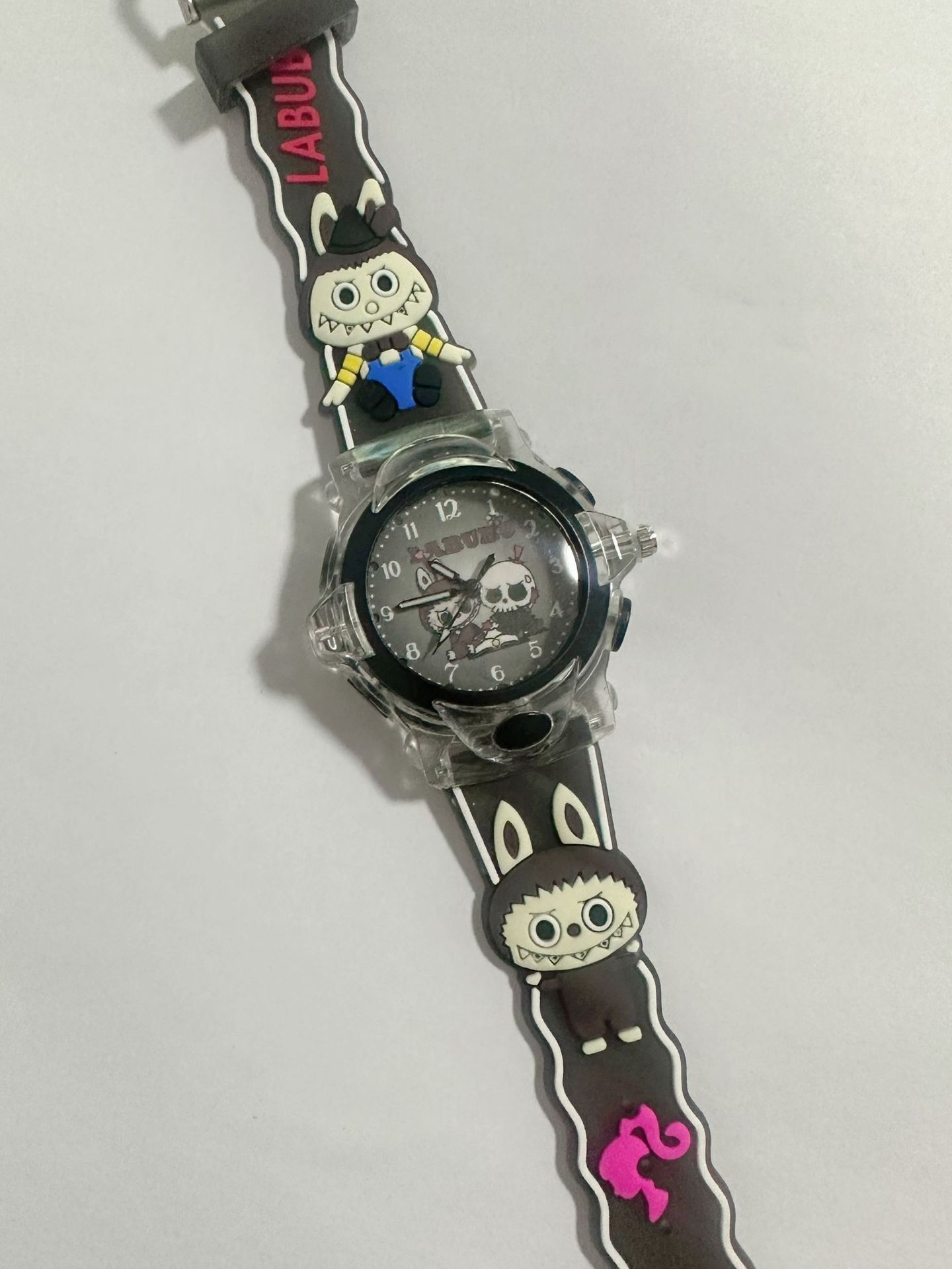 Детские кварцевые часы Labubu с 3D-стерео силиконовым ремешком, креативные светящиеся цифровые часы для мальчиков и девочек