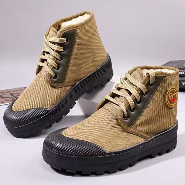 Новые рабочие ботинки в стиле «лайфстайл», хлопковые, утолщенные, из канваса, для стройплощадок, цельные, оптом.