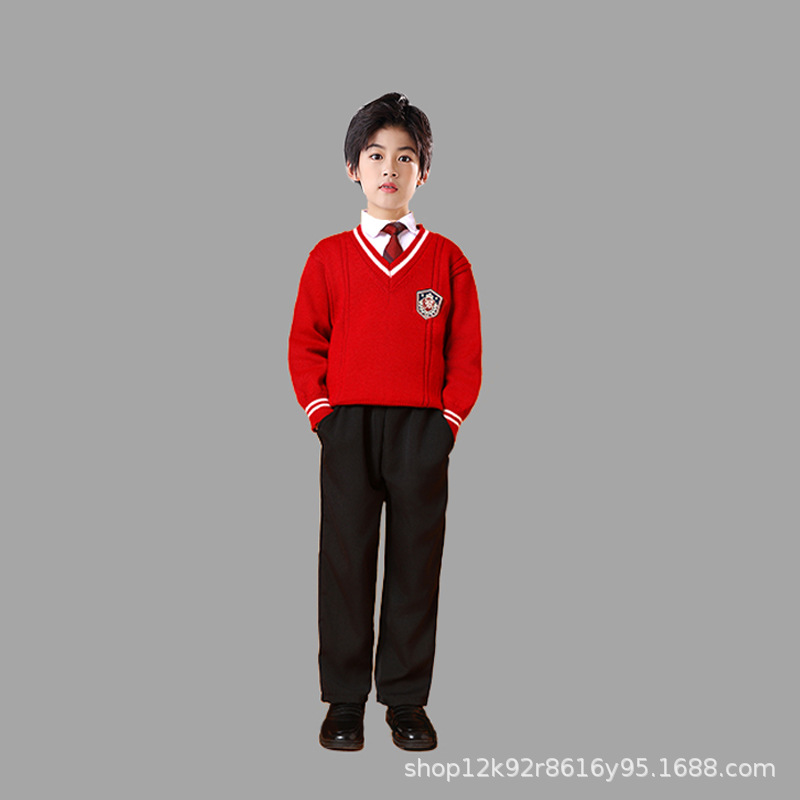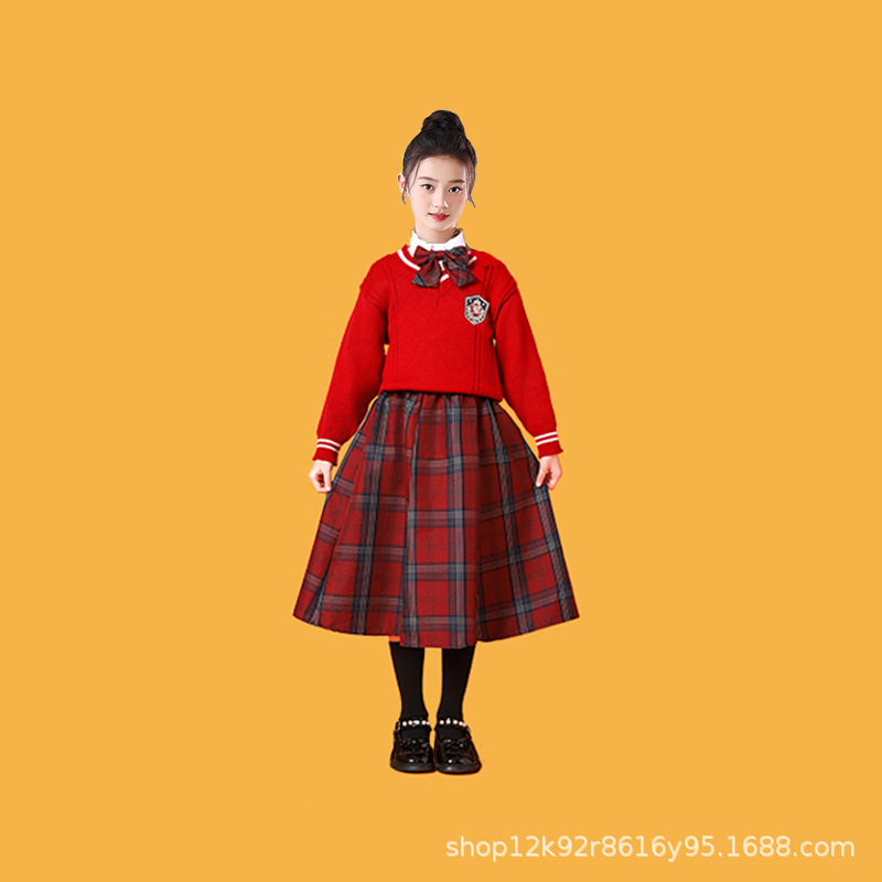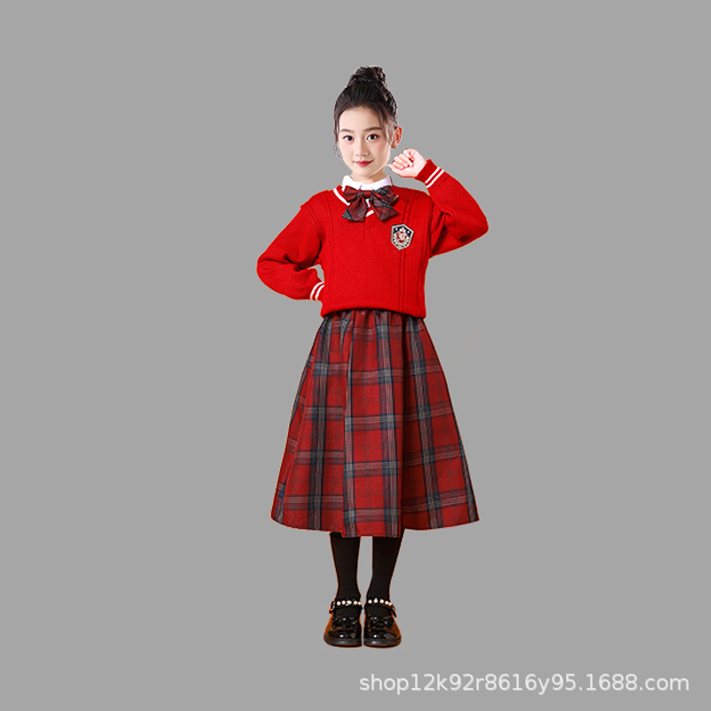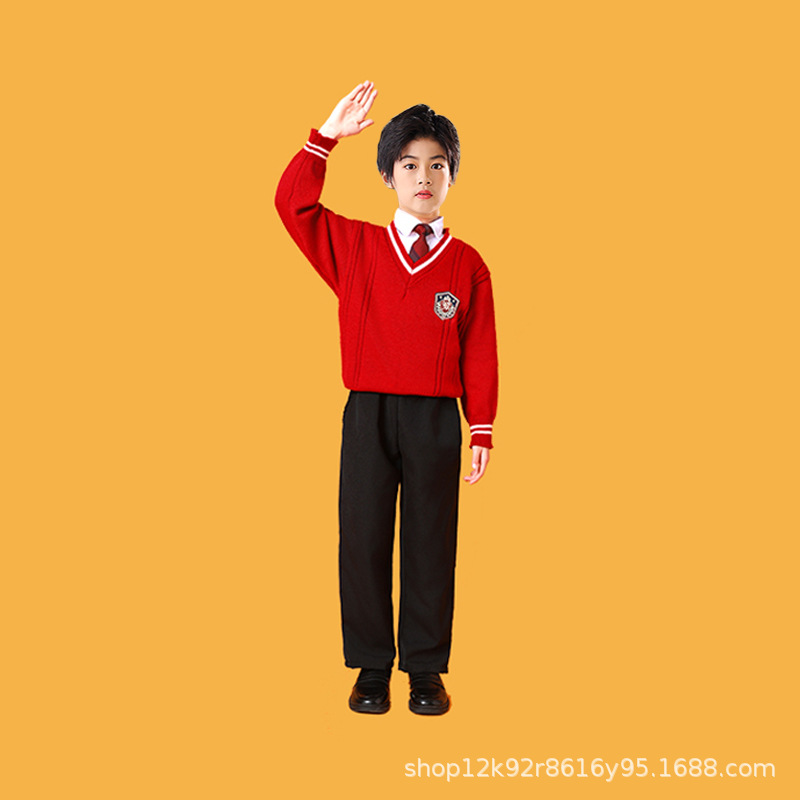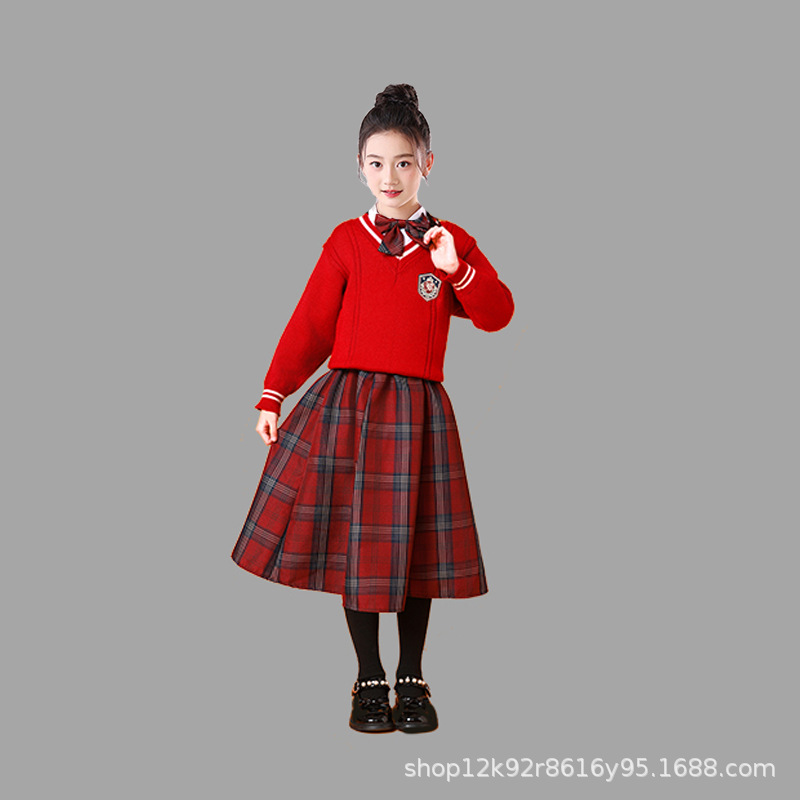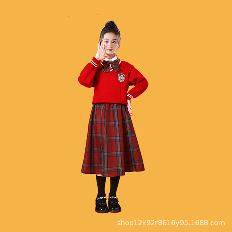 Новогодняя одежда для хоровых выступлений для детей, осенне-зимние бархатные рубашки для учащихся начальной школы, красные свитера, школьная форма в стиле преппи для ведущих классных руководителей