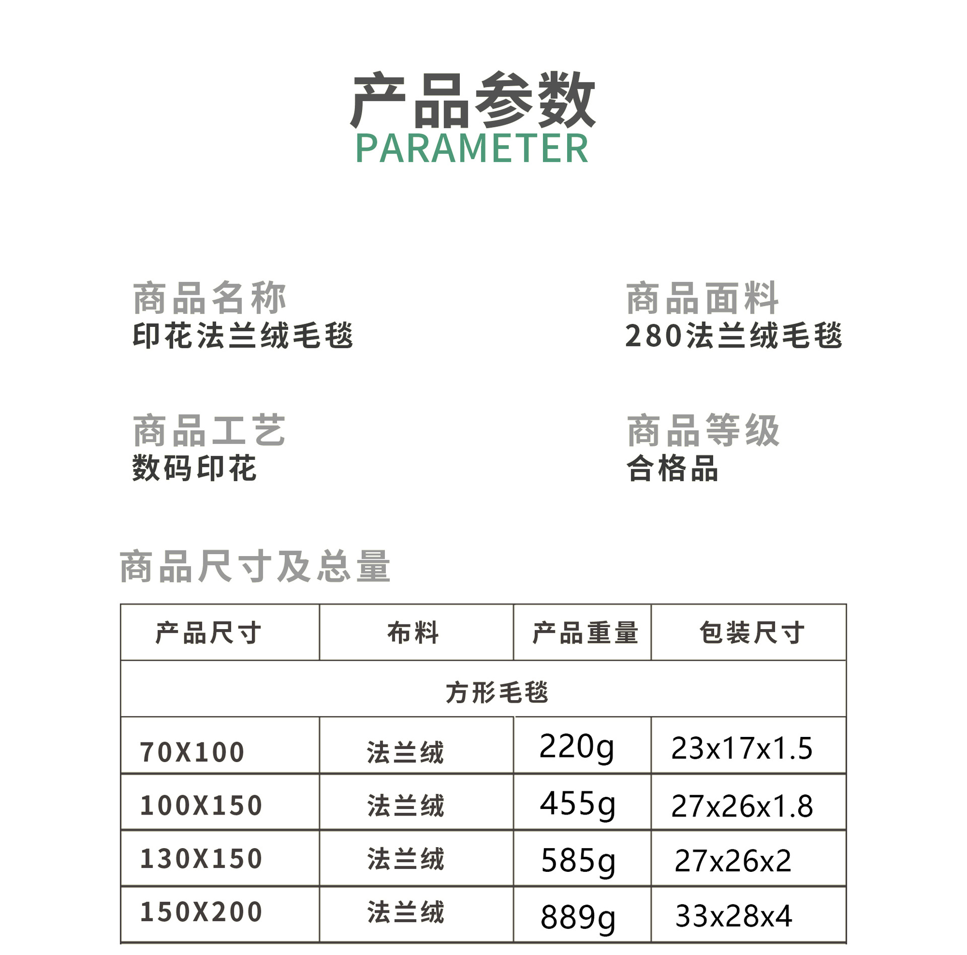 70x100; 150x130; 150x200; 180x230; 130x100