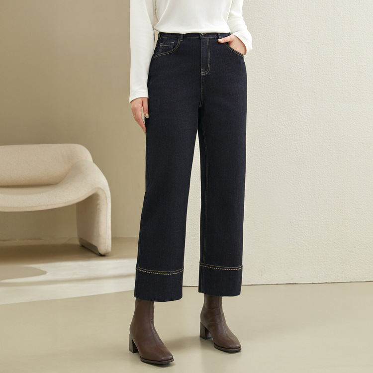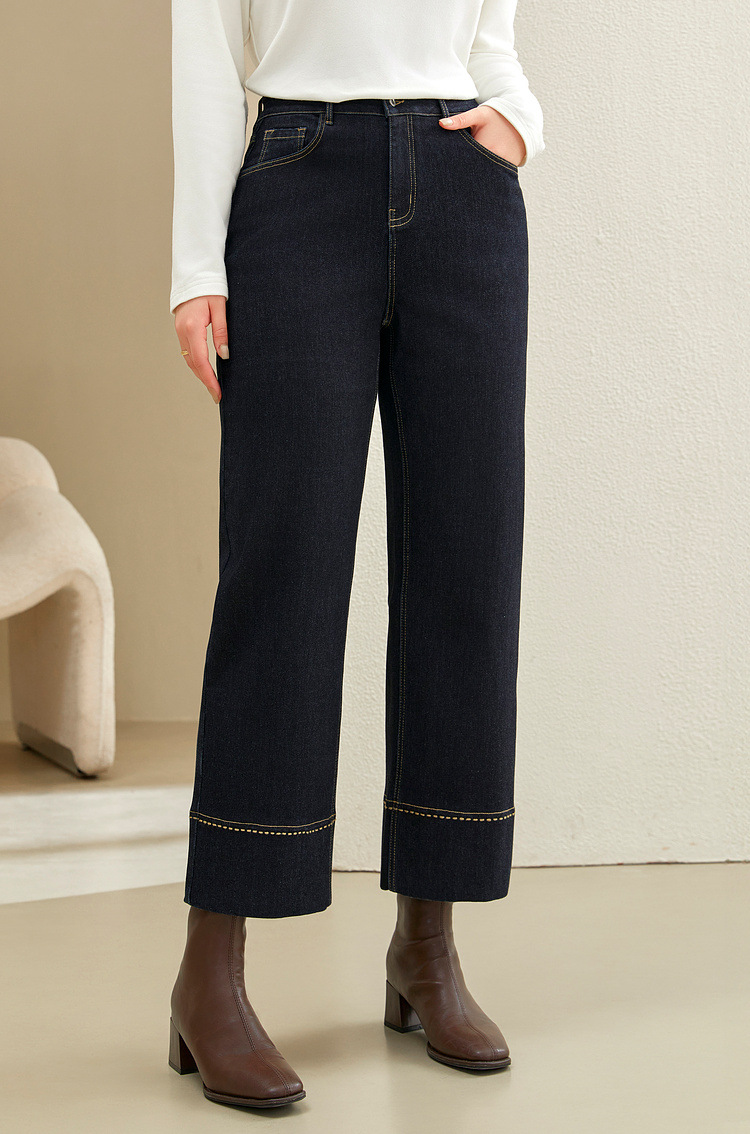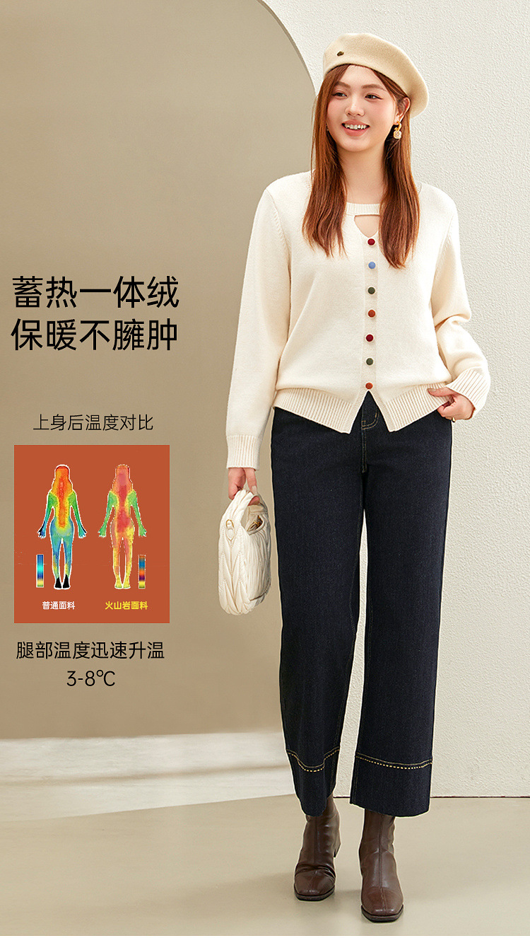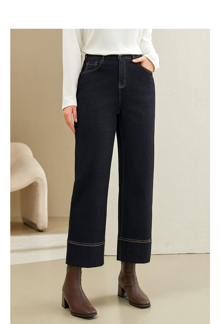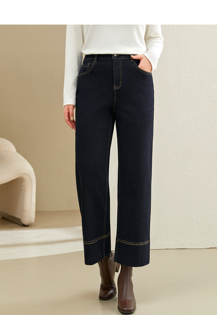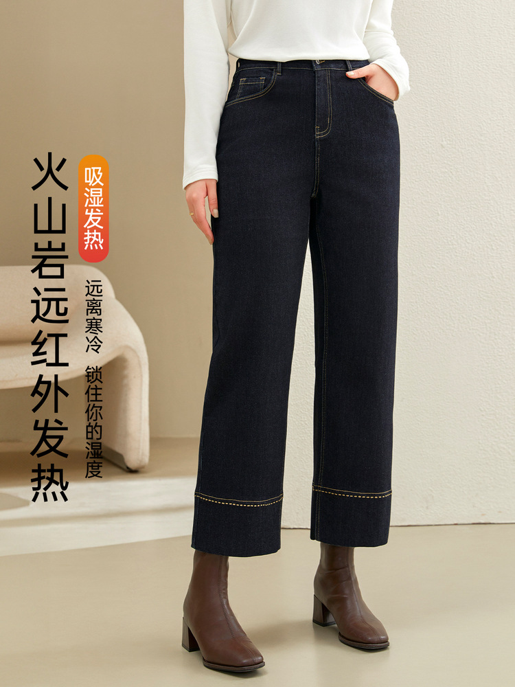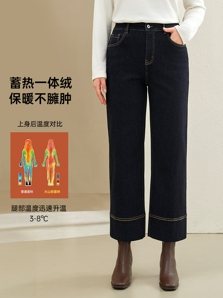 [Осень и зима широкие термальные брюки теплые брюки] Полноцветный большой размер женские шлифовальные джинсы толстый мм зимний новый