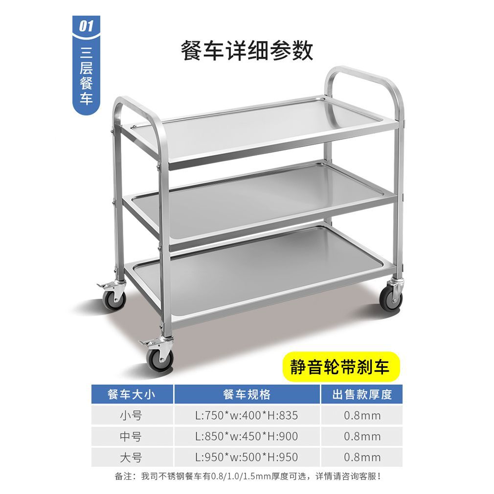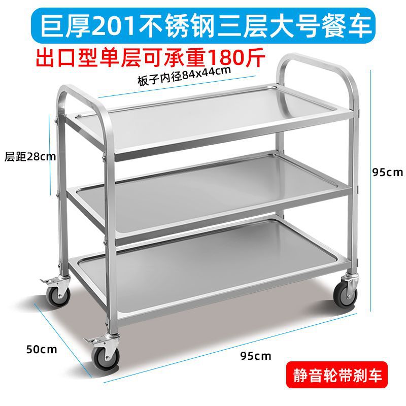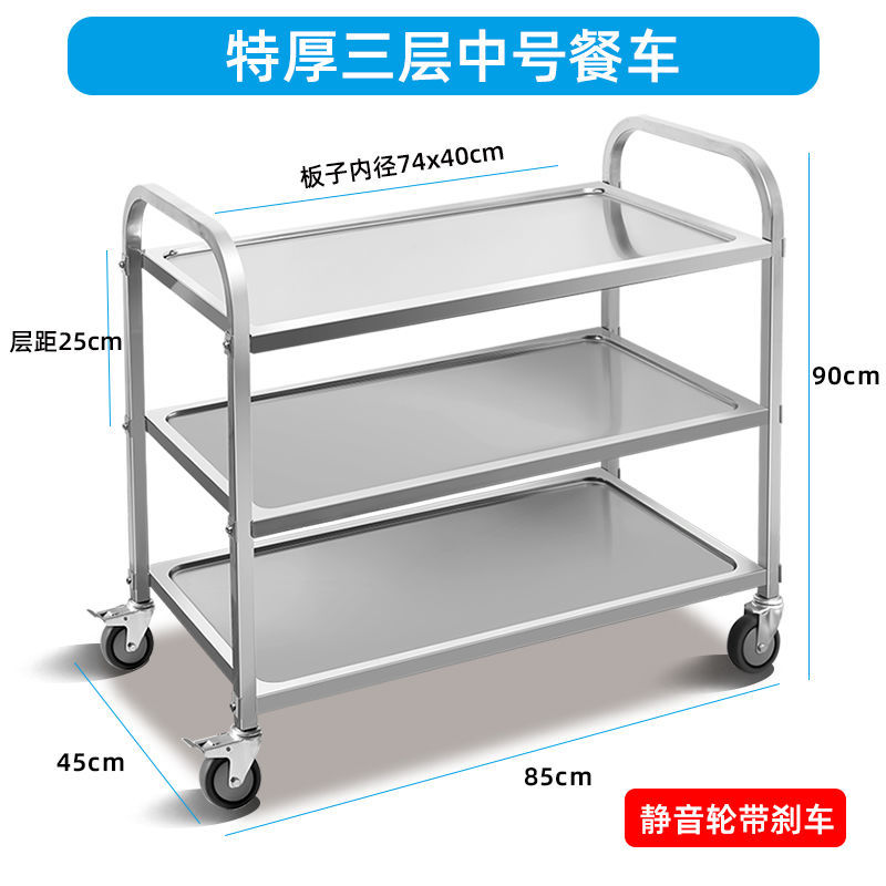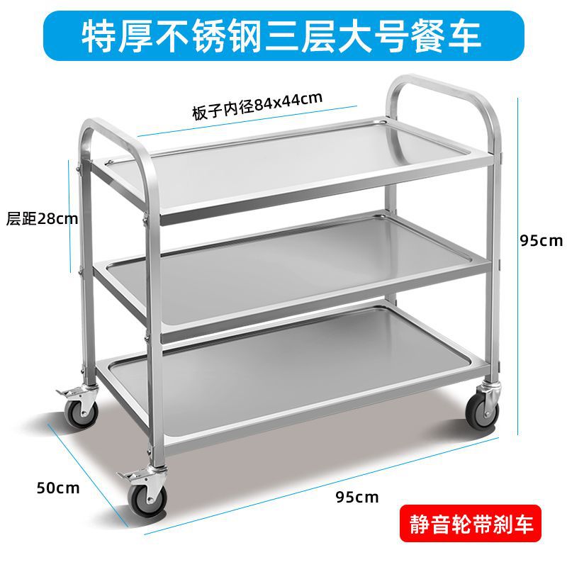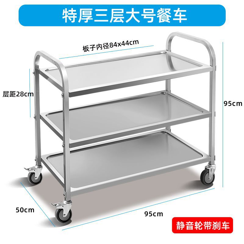 Мобильная тележка из нержавеющей стали трехслойная тележка коммерческая тележка для сбора посуды