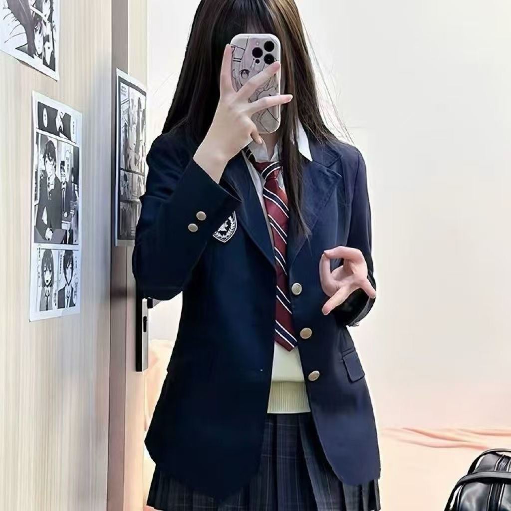 Продвинутое чувство JK униформа пиджак женский 2025 весна и осень новый стиль колледжа свободный корейский костюм для отправки значков