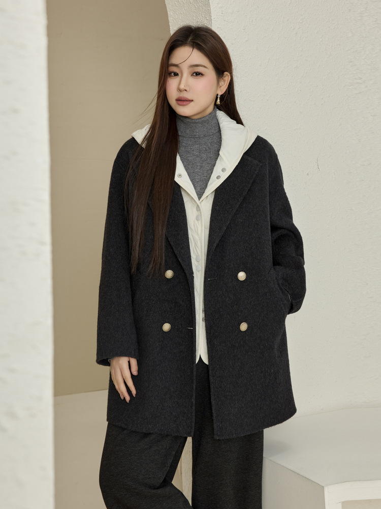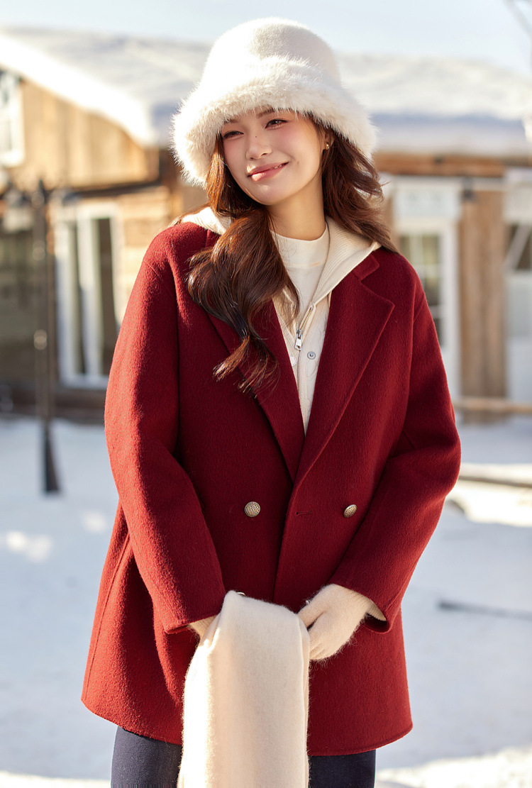 [Осенняя и зимняя атмосфера, полная шерстяная двухсторонняя шерстяная шерстяная шерстяная куртка] Full Mm Женская толстая зимняя куртка