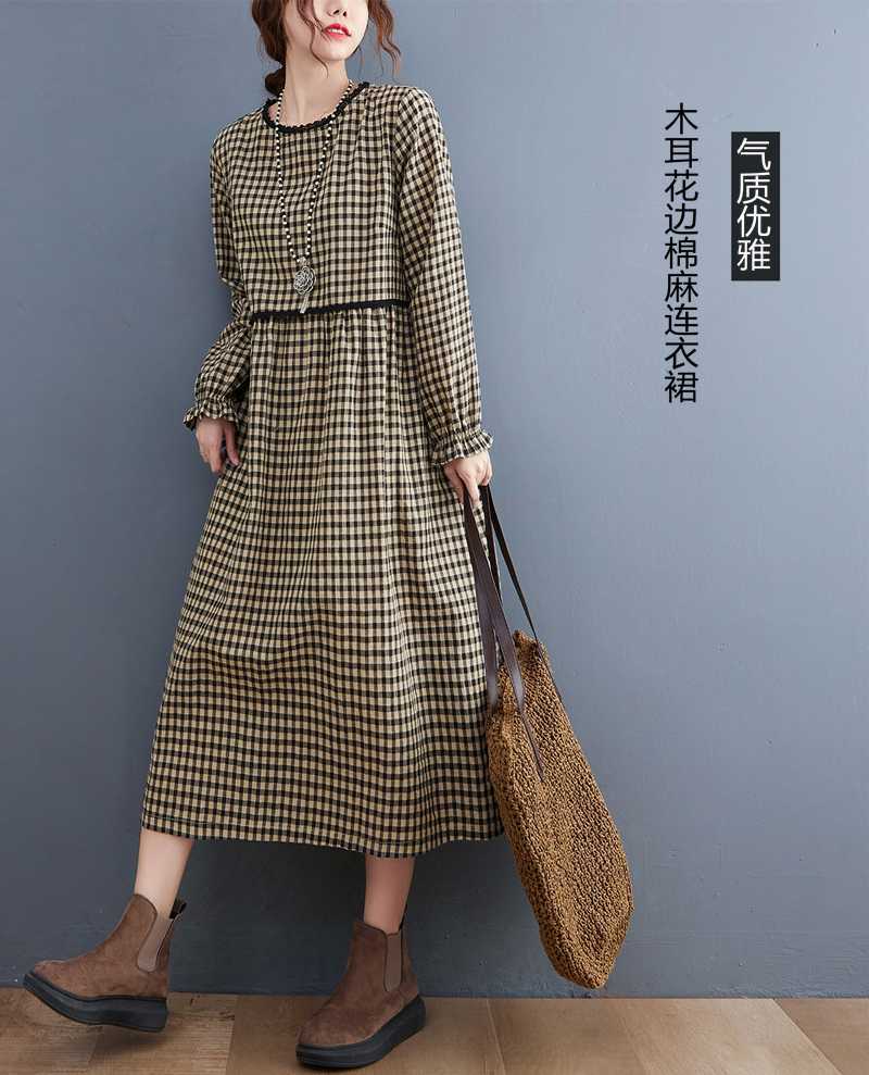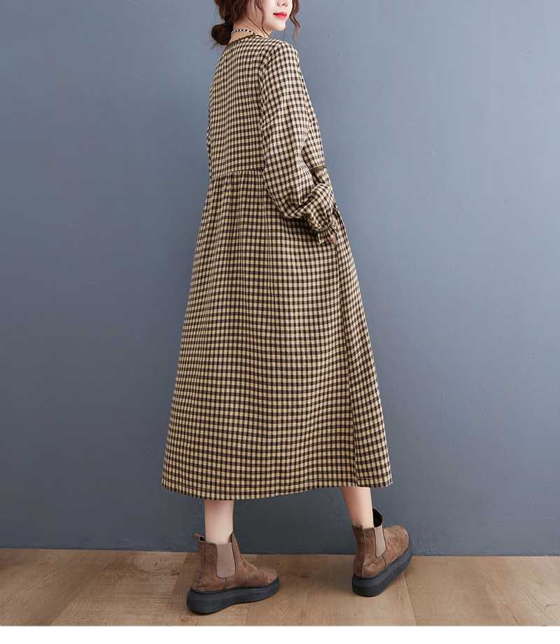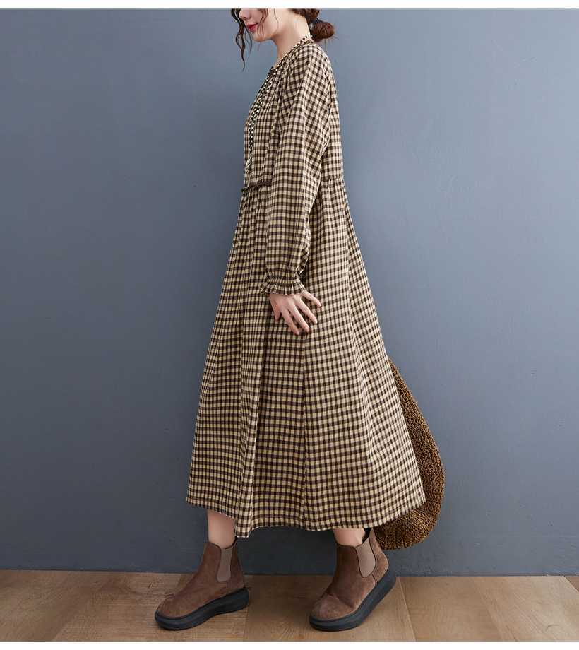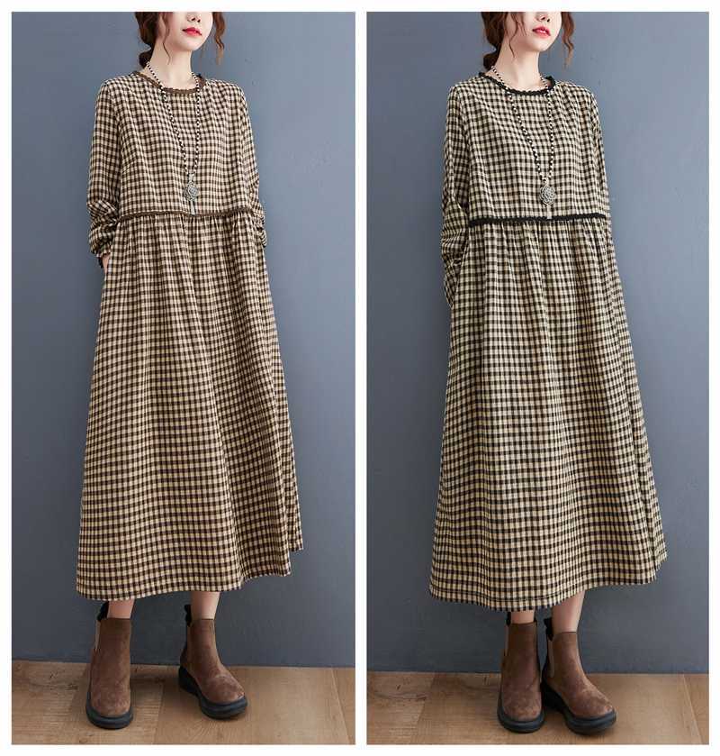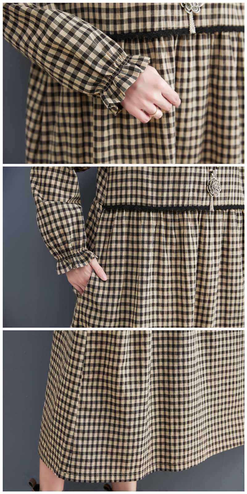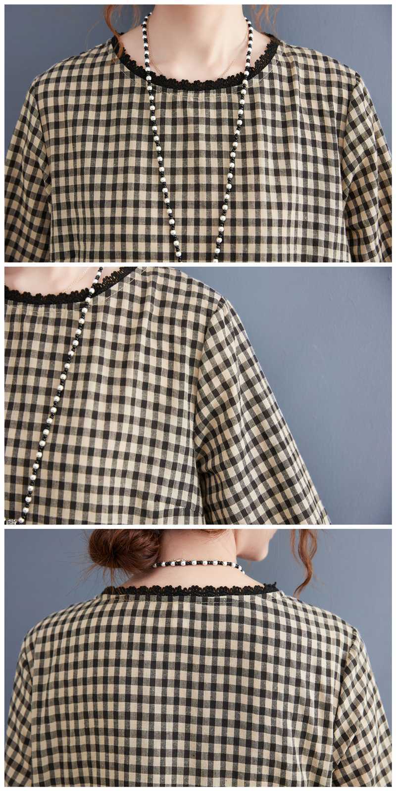 Реичный выстрел из деревянного ушного кружева в клетку из хлопка и льна платье большого размера женская одежда