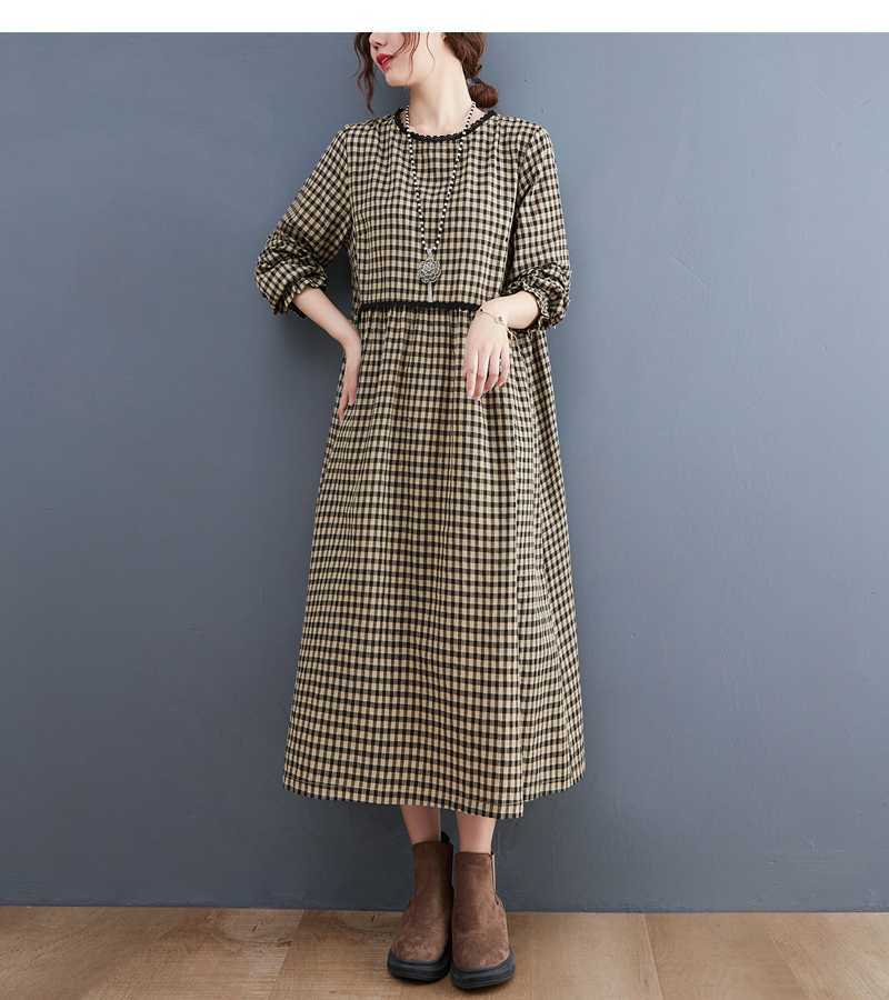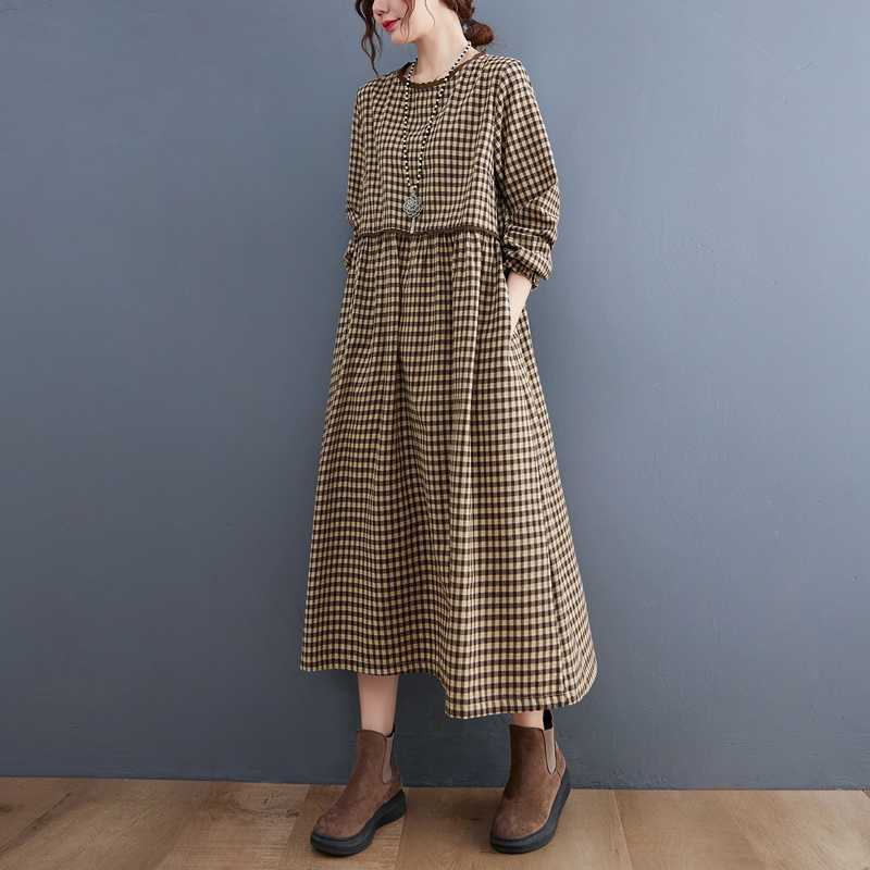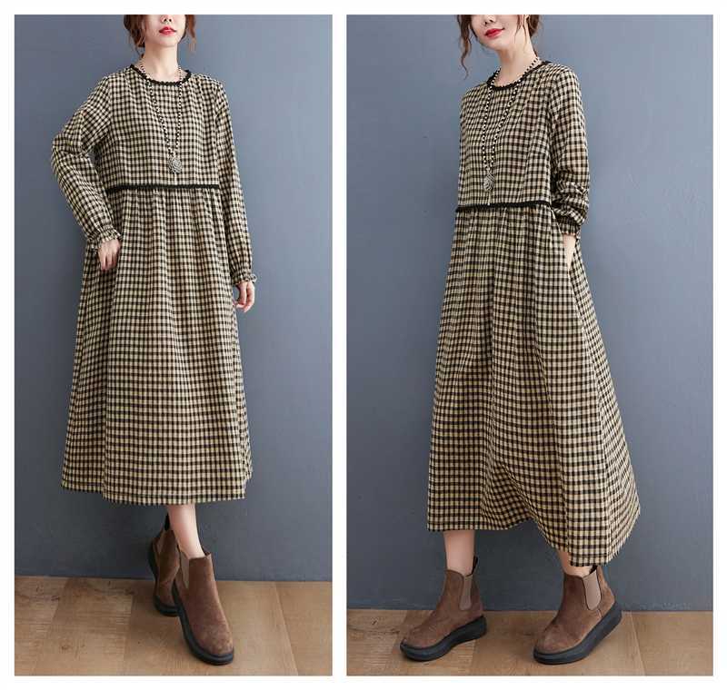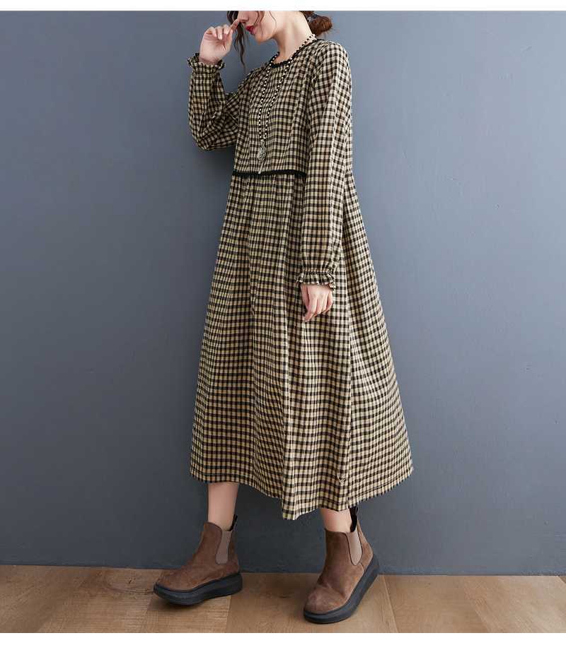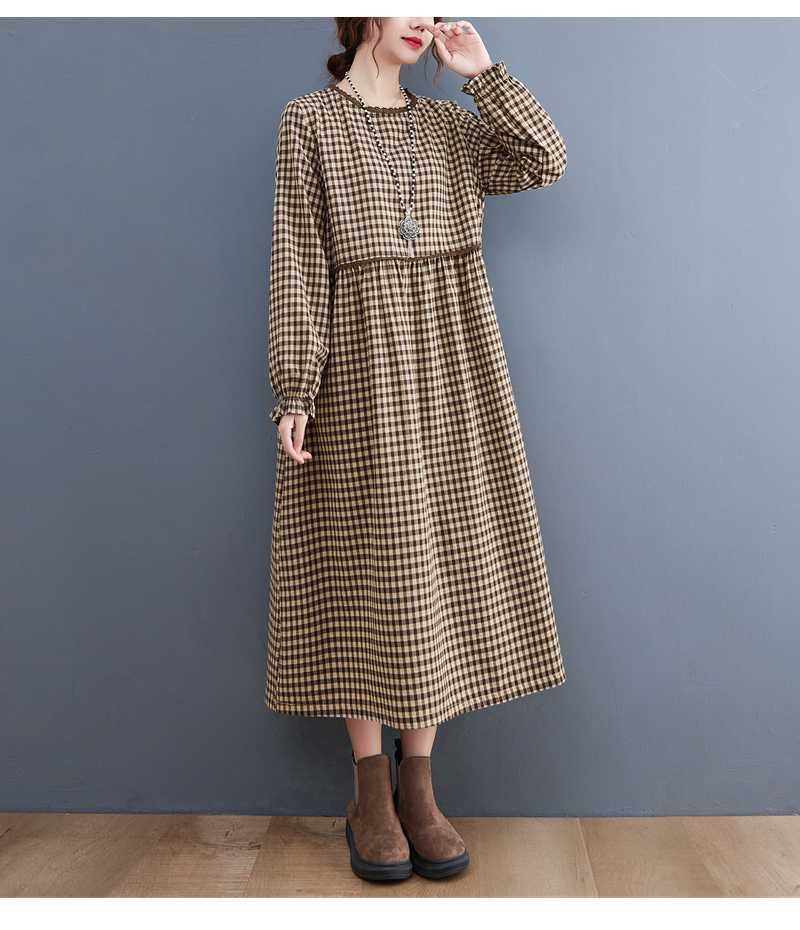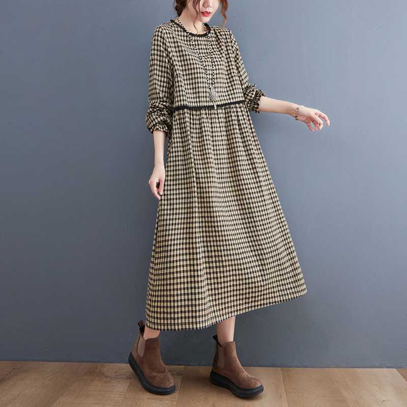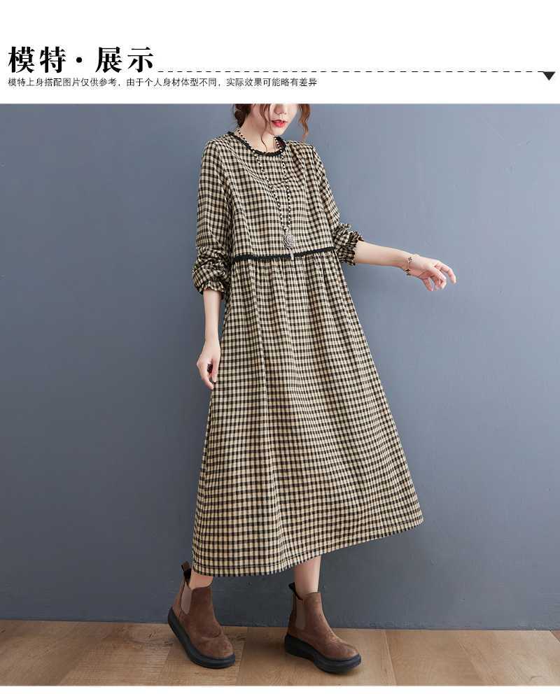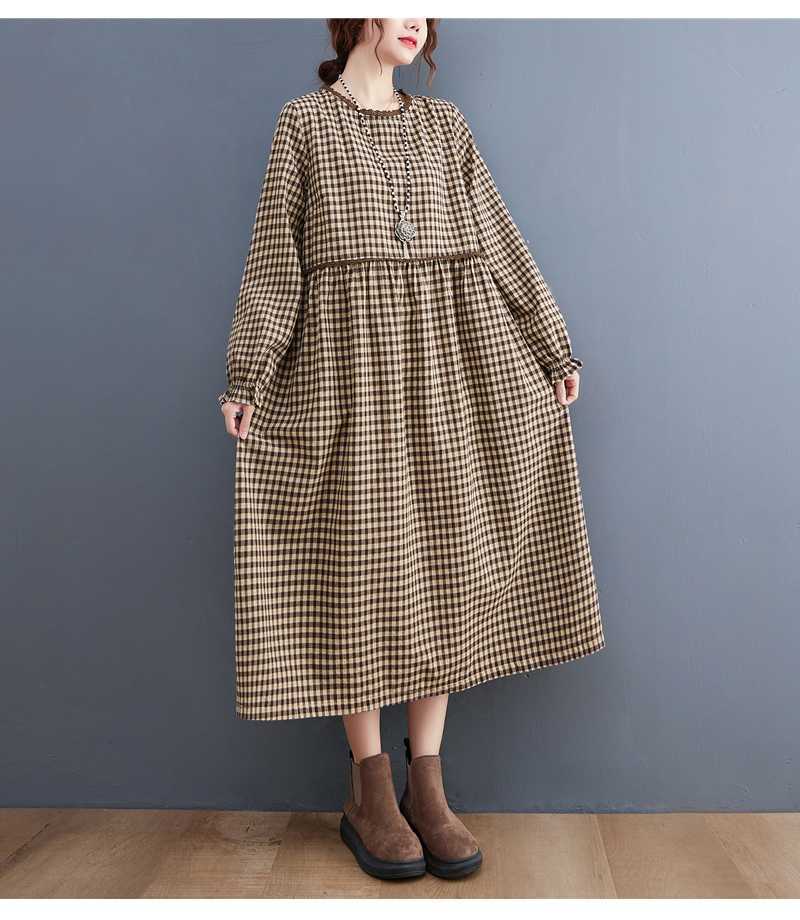 Реичный выстрел из деревянного ушного кружева в клетку из хлопка и льна платье большого размера женская одежда