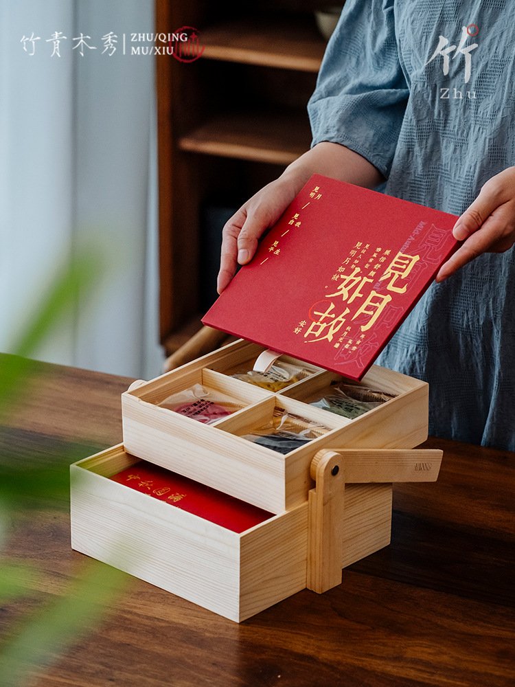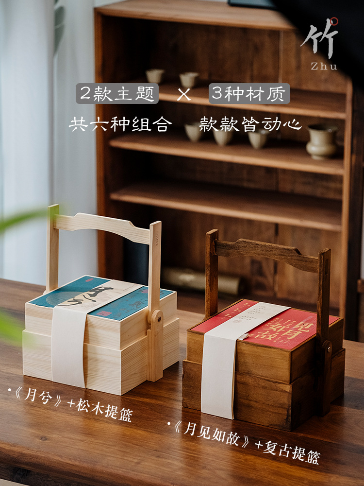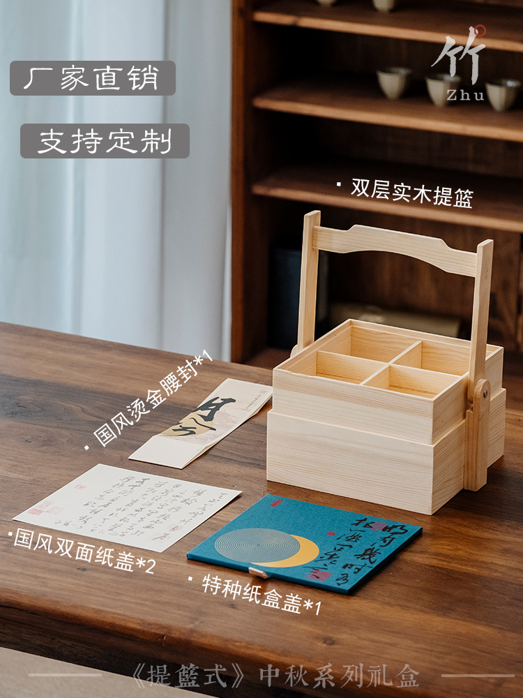 Двухслойная коробка для лунного пирога середины осени, деревянная корзина 8 капсул в китайском стиле, высококачественная подарочная коробка премиум-класса 2024