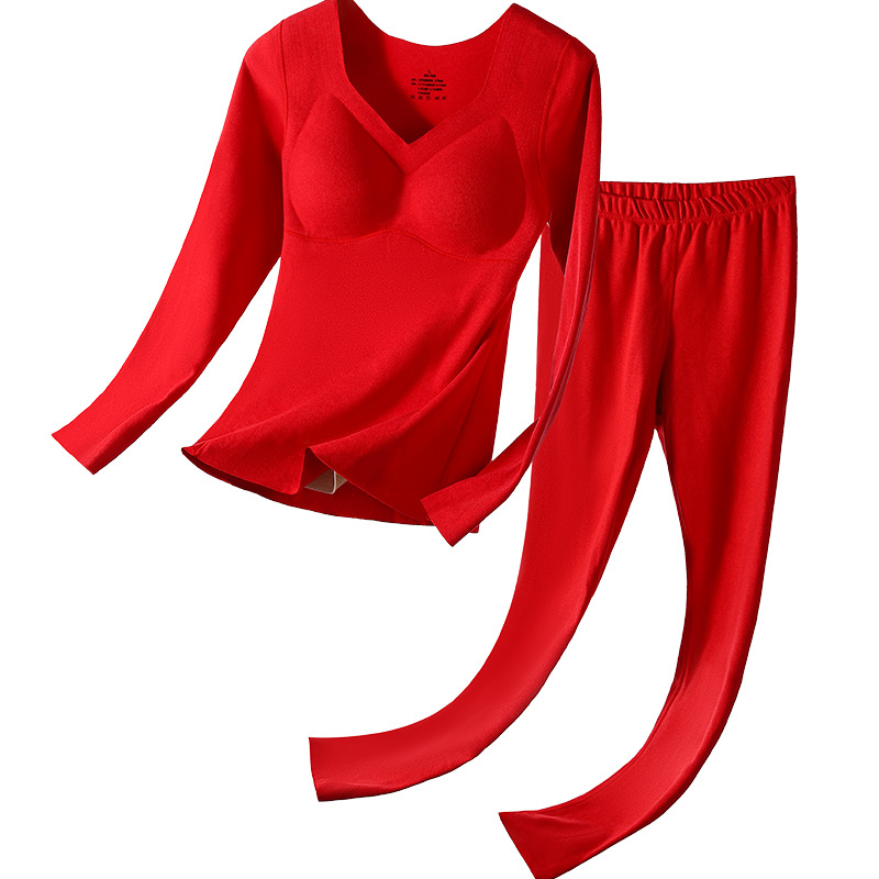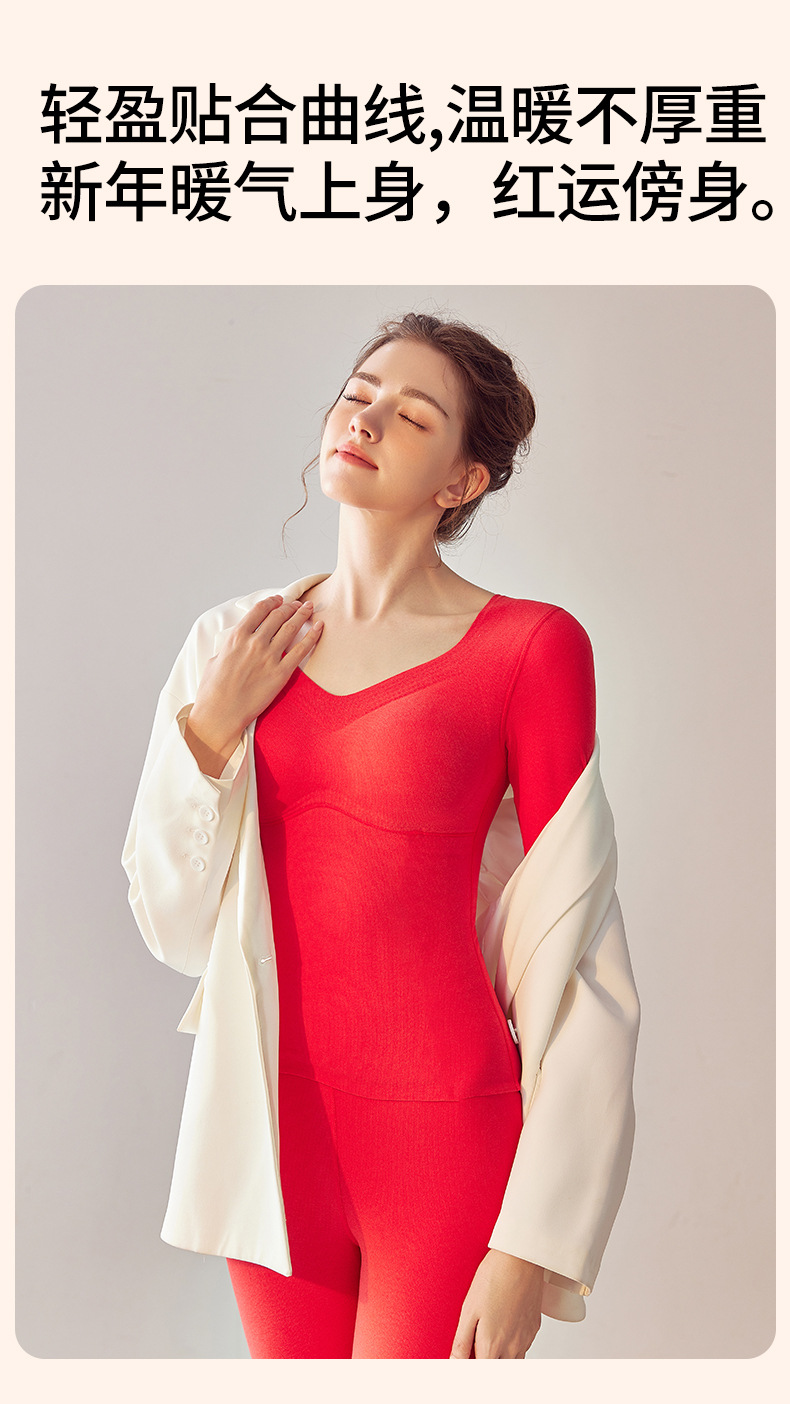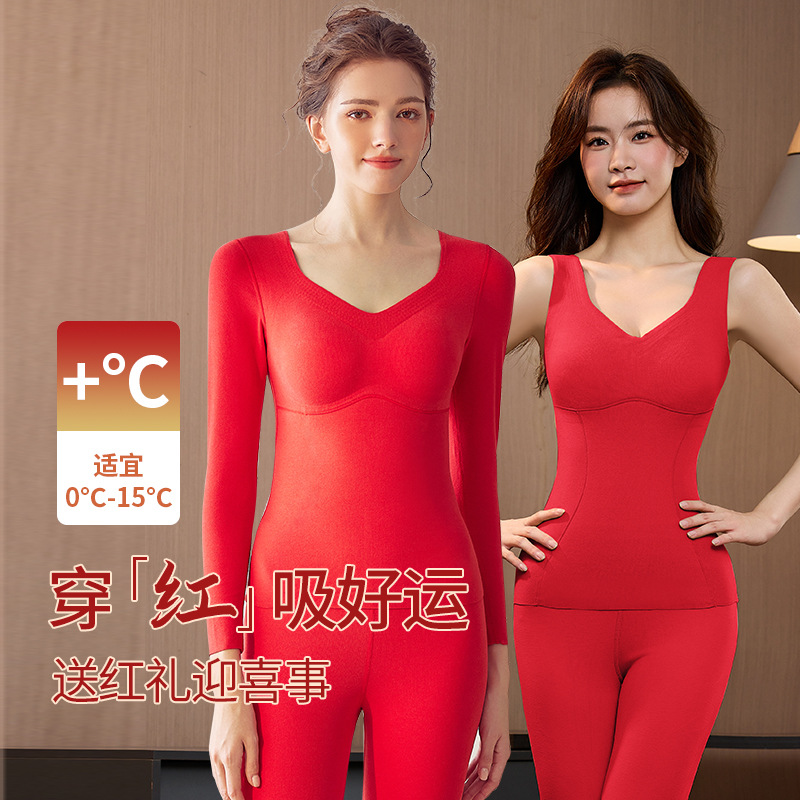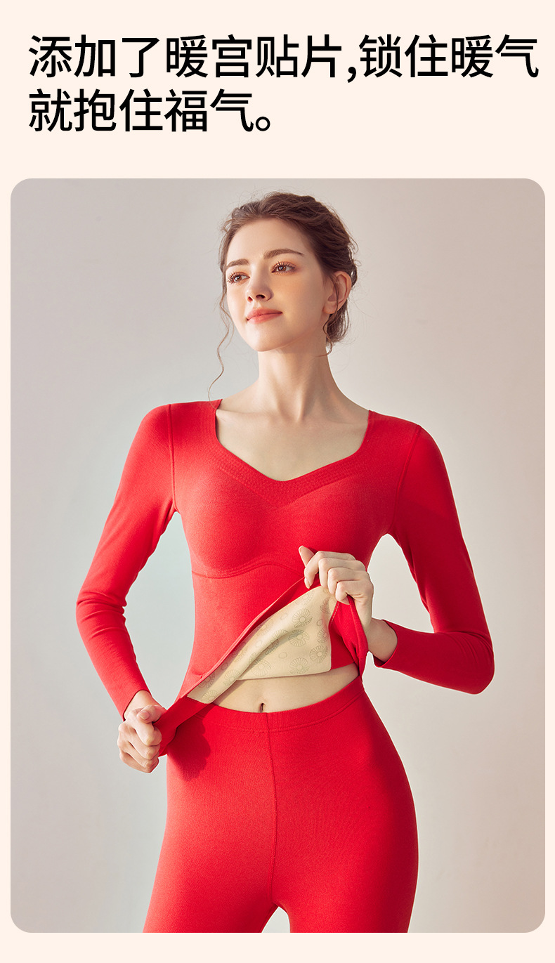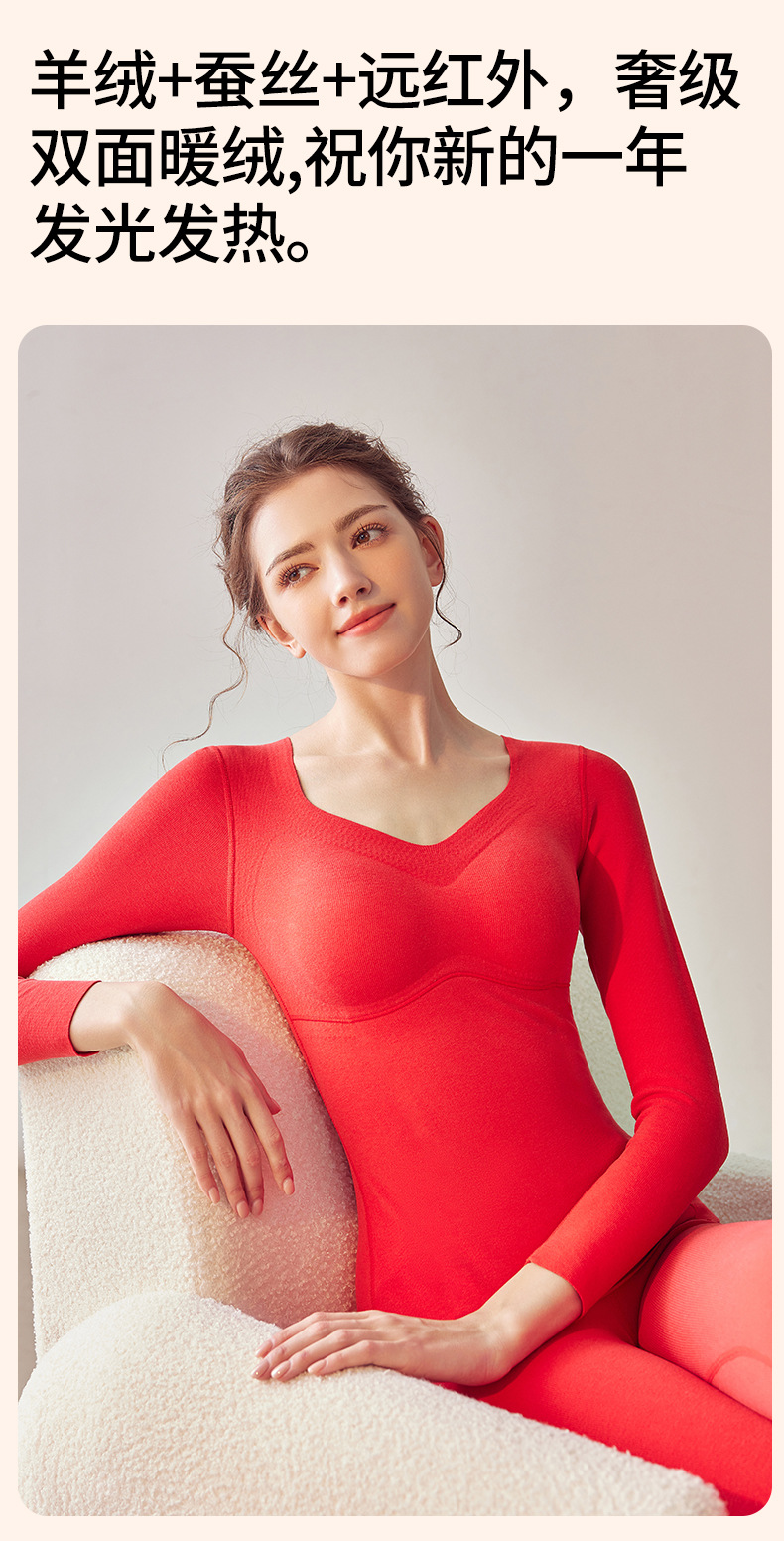 2025 новый [Год рождения красный] дамы теплый и горячий набор осенняя одежда осенние брюки стройные и удобные с грудью