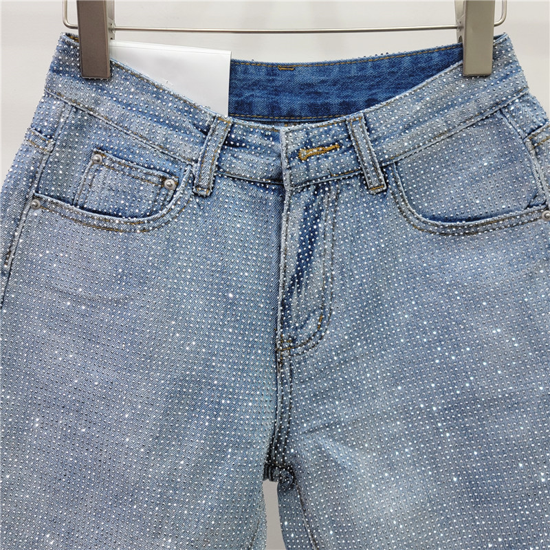 Европейские товары, полные бриллиантов, джинсы, женские шорты, прямые брюки, прилив весны и лета 2025 года новые дикие брюки с высокой талией