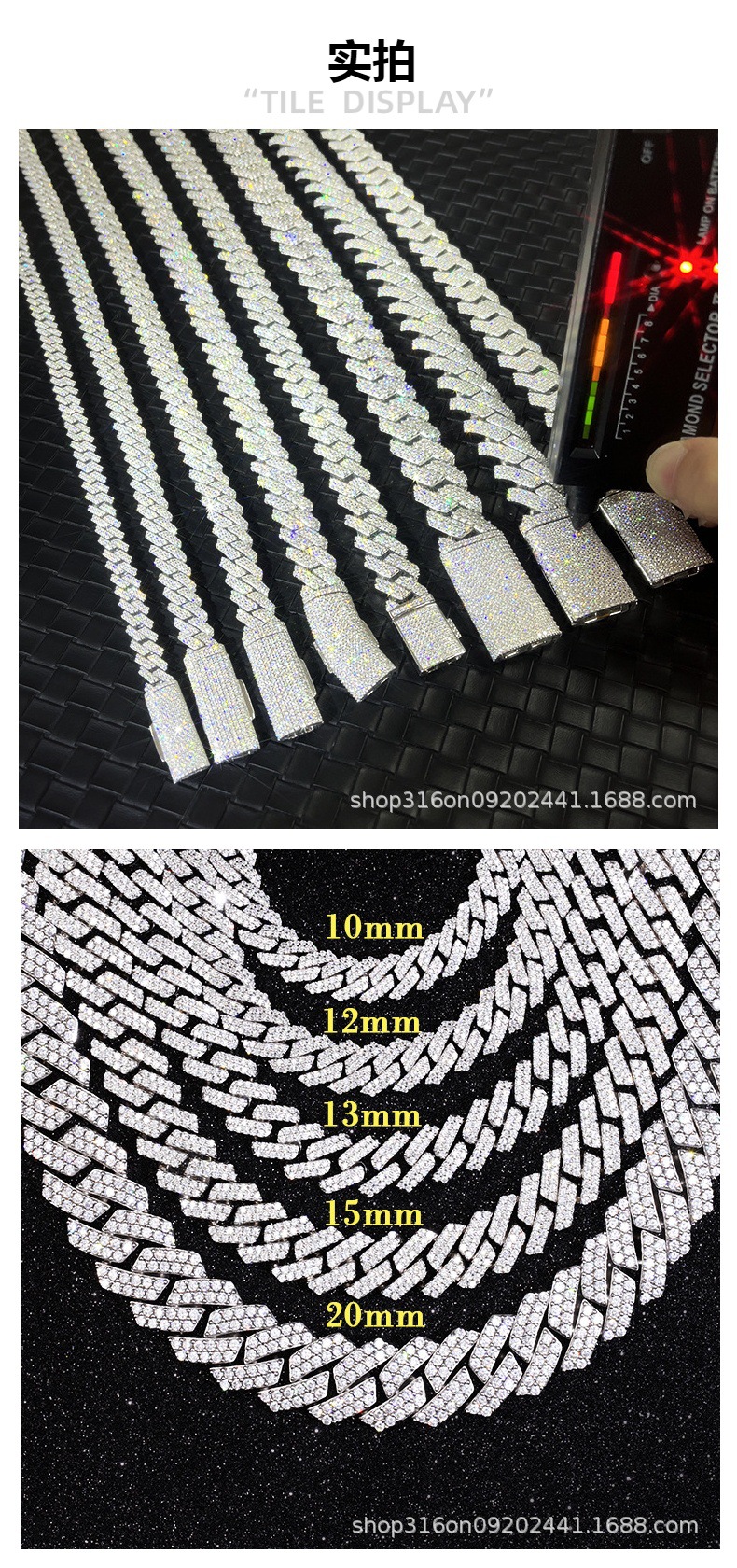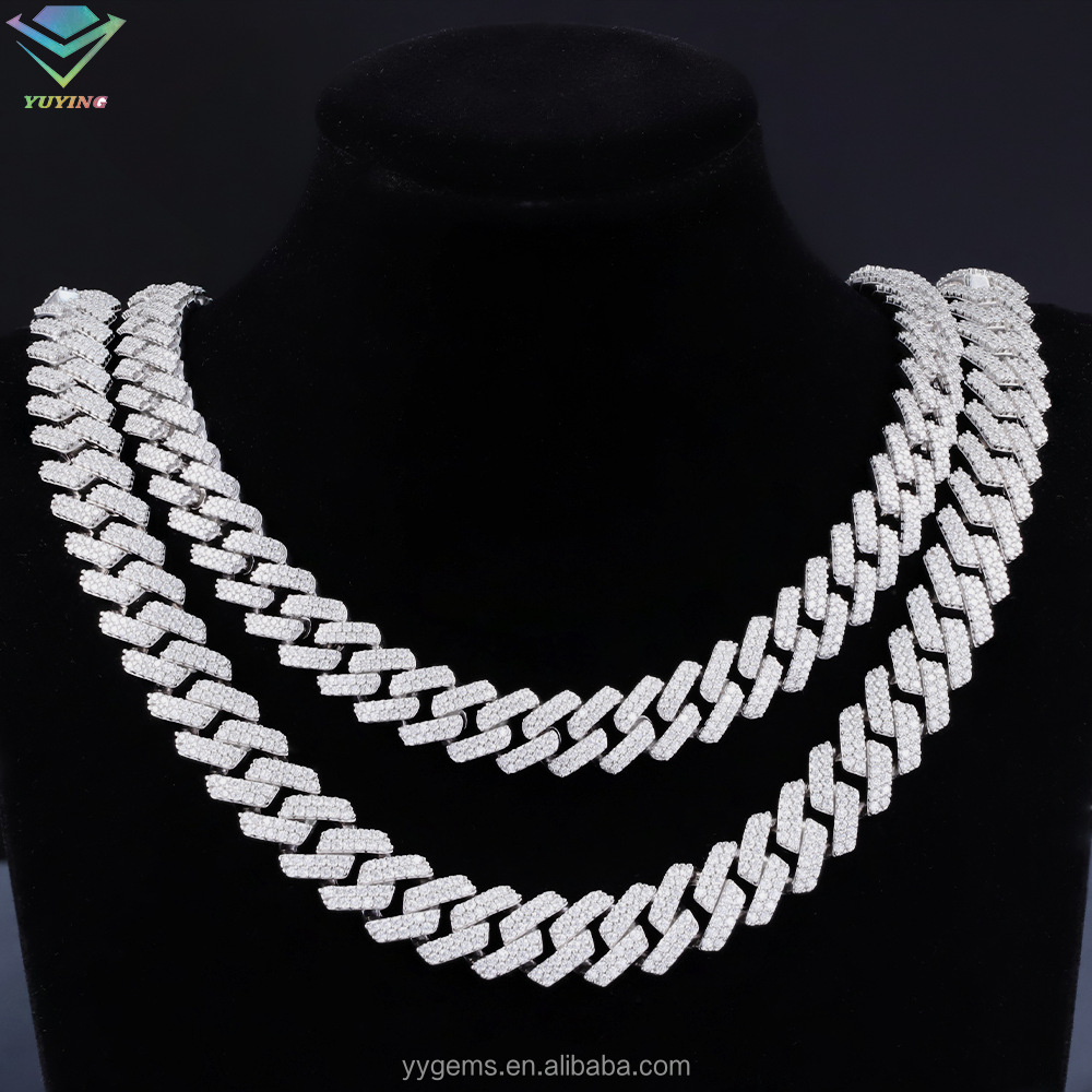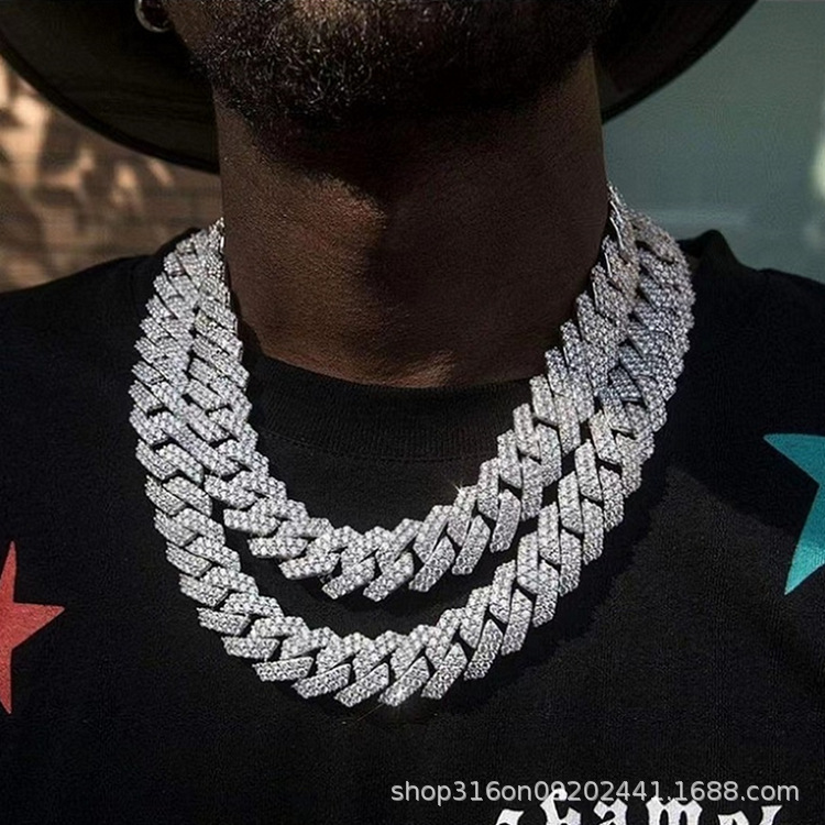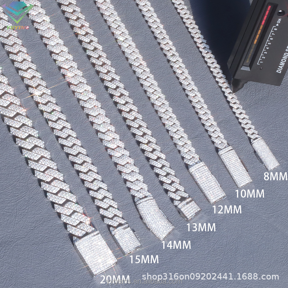 Популярное трансграничное украшение: кубинская цепь из серебра S925 с двойным рядом моассанитов, ширина 8-15 мм, в европейском и американском стиле хип-хоп.