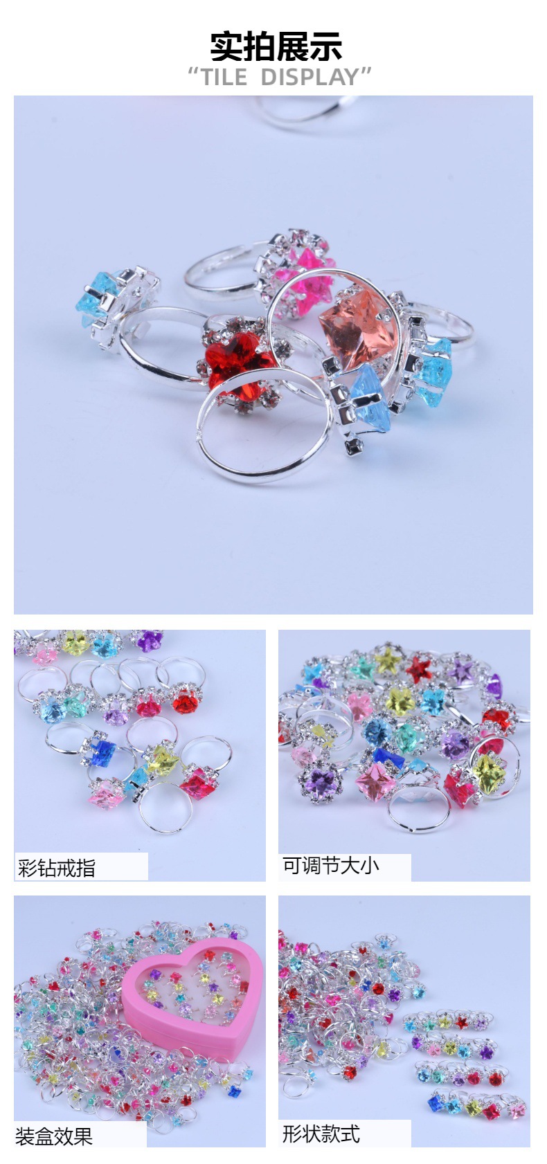 Детские украшения для девочек, милые принцессы, призы для детского сада, подарки, игрушки, имитация хрусталя, драгоценный камень, мультяшное кольцо со стразами