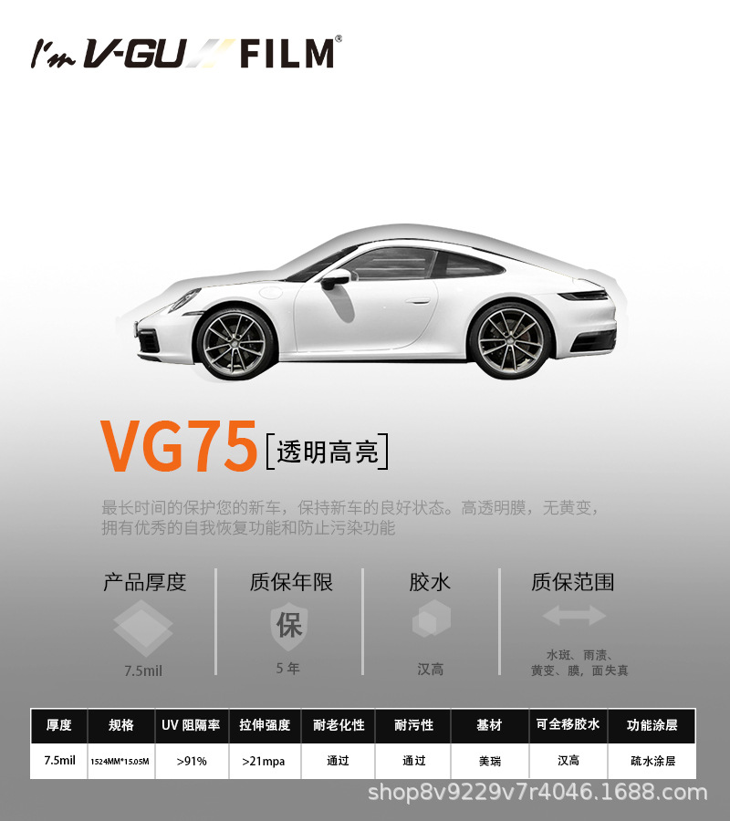 Автомобильная невидимая автомобильная одежда VGU, гидрофобная ТПУ, устойчивая к пожелтению, защитная пленка для автомобильной краски PPF, полное окно автомобиля