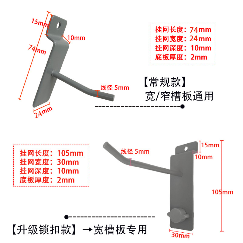 5 см, одинарный крючок, толщина 5 мм; 10 см, одинарный крючок, толщина 5 мм; Одинарный крючок длиной 15 см, толщиной 5 мм.; 20 см, одинарный крючок, толщина 5 мм; 25 см, одинарный крючок, толщина 5 мм; Замок 5 см с одним крючком толщиной 5 мм.; Замок 10 см, одинарный крючок, толщина 5 мм.; Замок 20 см, одинарный крючок, толщина 5 мм.