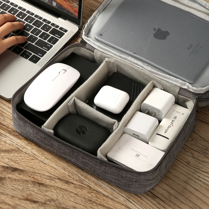 Сумка для хранения цифровых устройств, наушников, портативного зарядного устройства, многофункциональная, с отделениями для документов, с замком.