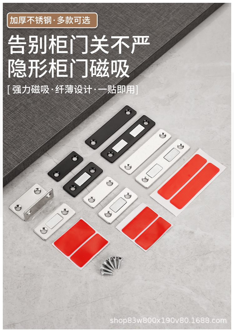 Магнитный ультратонкий двойной магнитный раздвижной шкаф без сверления, невидимый дверной стопор, магнит для шкафа, сильный магнитный дверной стопор на 90 градусов.