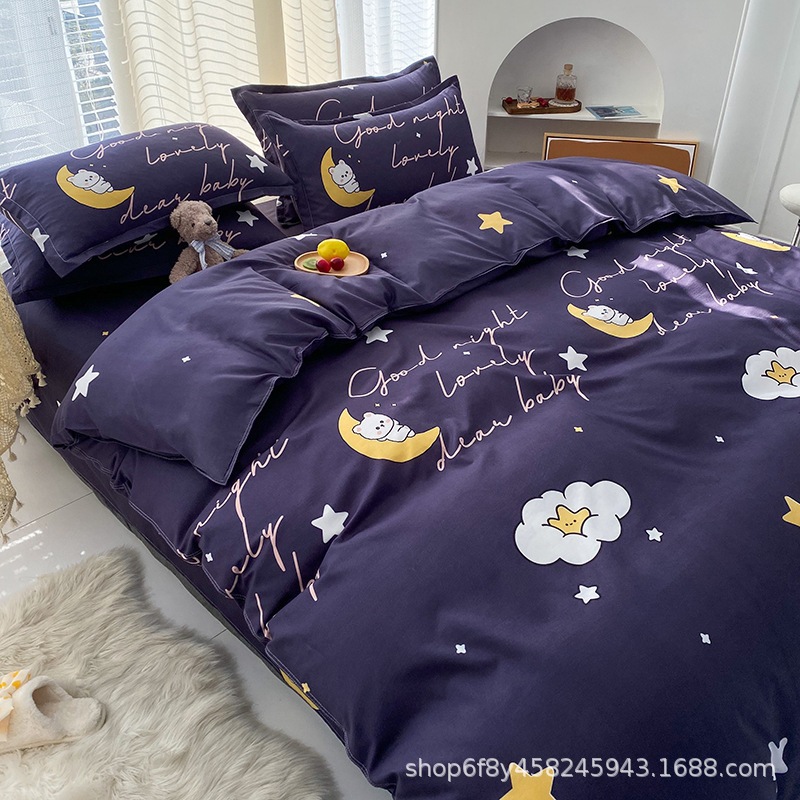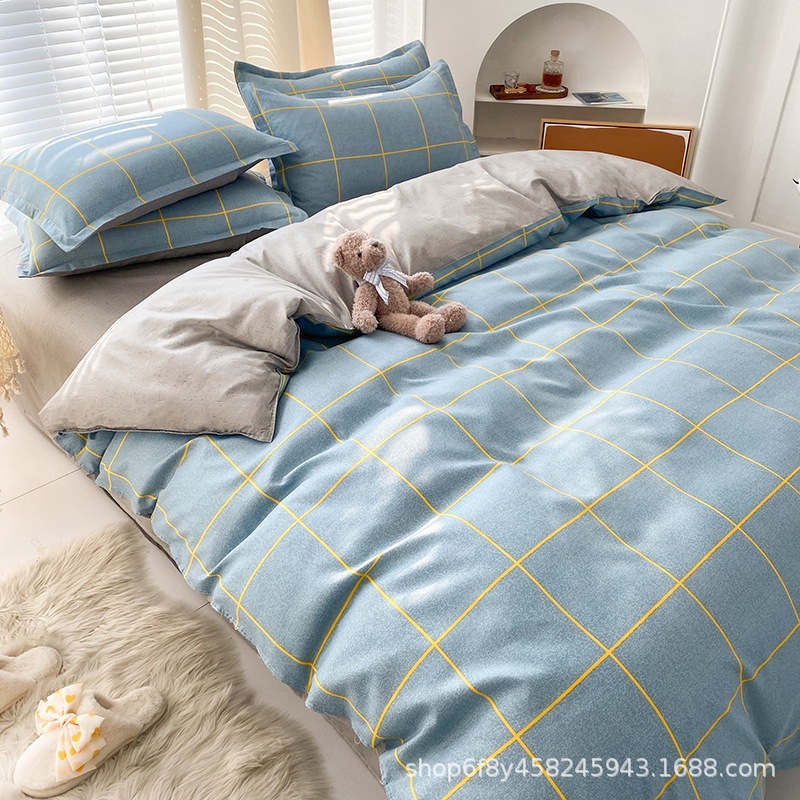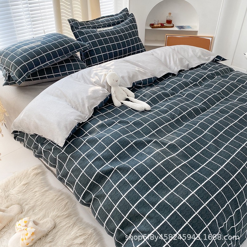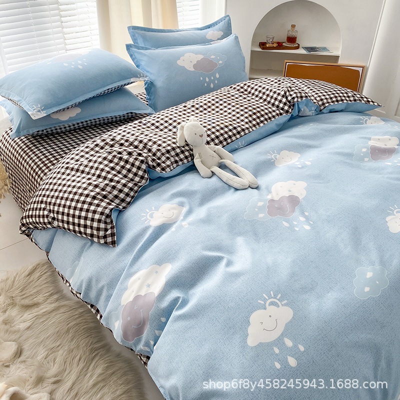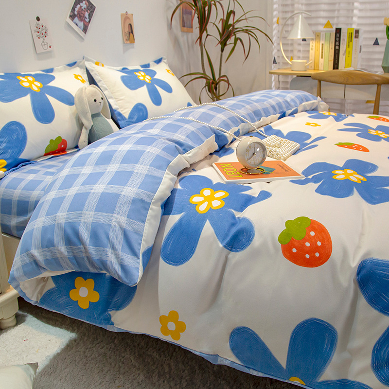 Комплект постельного белья из стираного хлопка, четыре предмета, новинка 2025 года, свежий цветочный принт, пододеяльник, простыня, комплект для общежития, три предмета, простыня 3