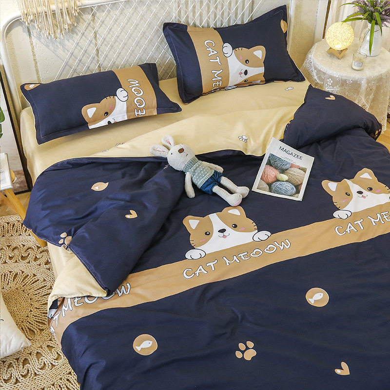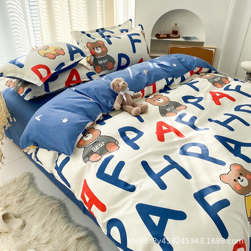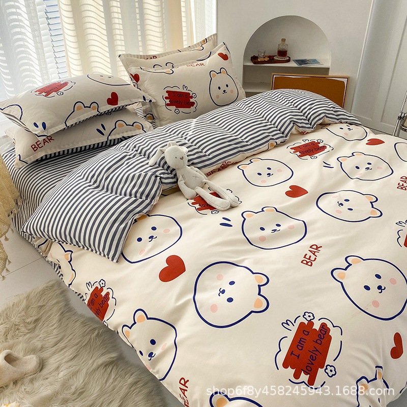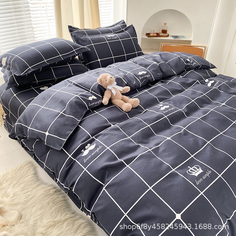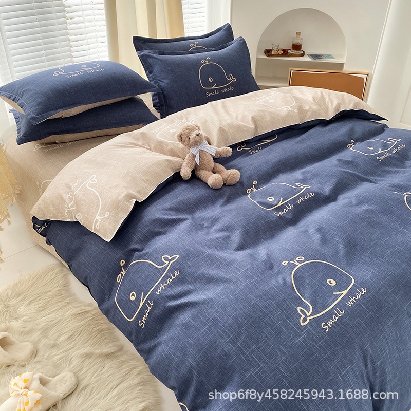 Комплект постельного белья из стираного хлопка, четыре предмета, новинка 2025 года, свежий цветочный принт, пододеяльник, простыня, комплект для общежития, три предмета, простыня 3