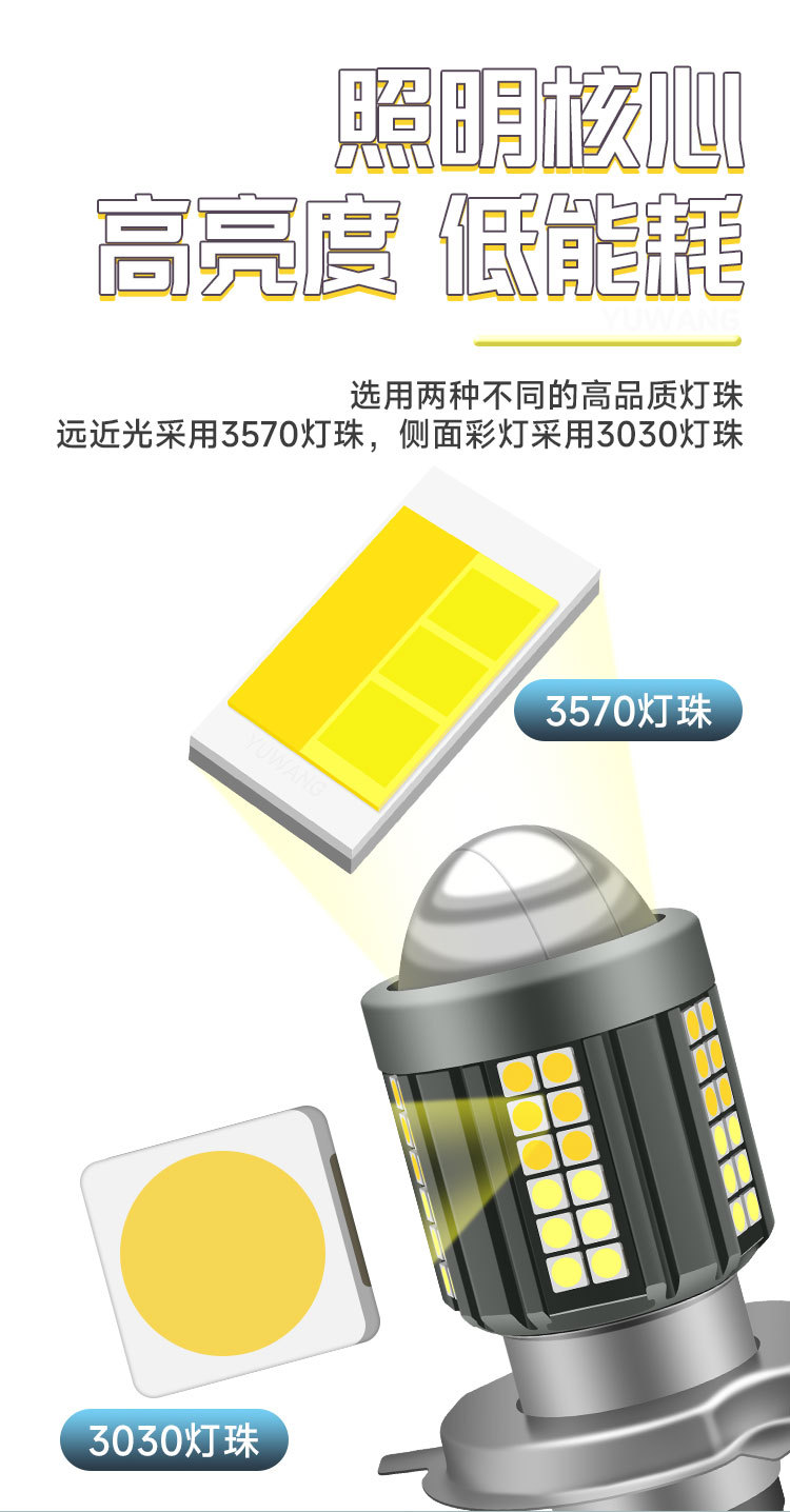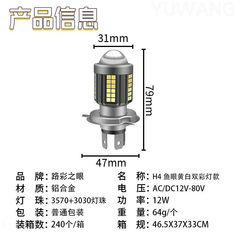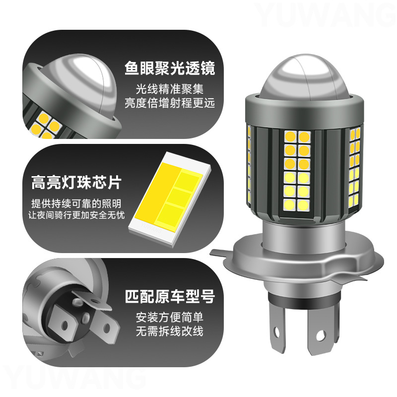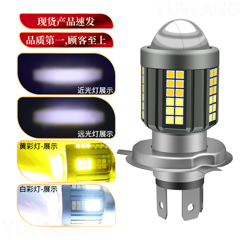 Мотоцикл светодиодная фара двухцветная машинная лампа H4 двойной свет дальний и ближний один объектив желто-белый двухцветный кукурузный свет
