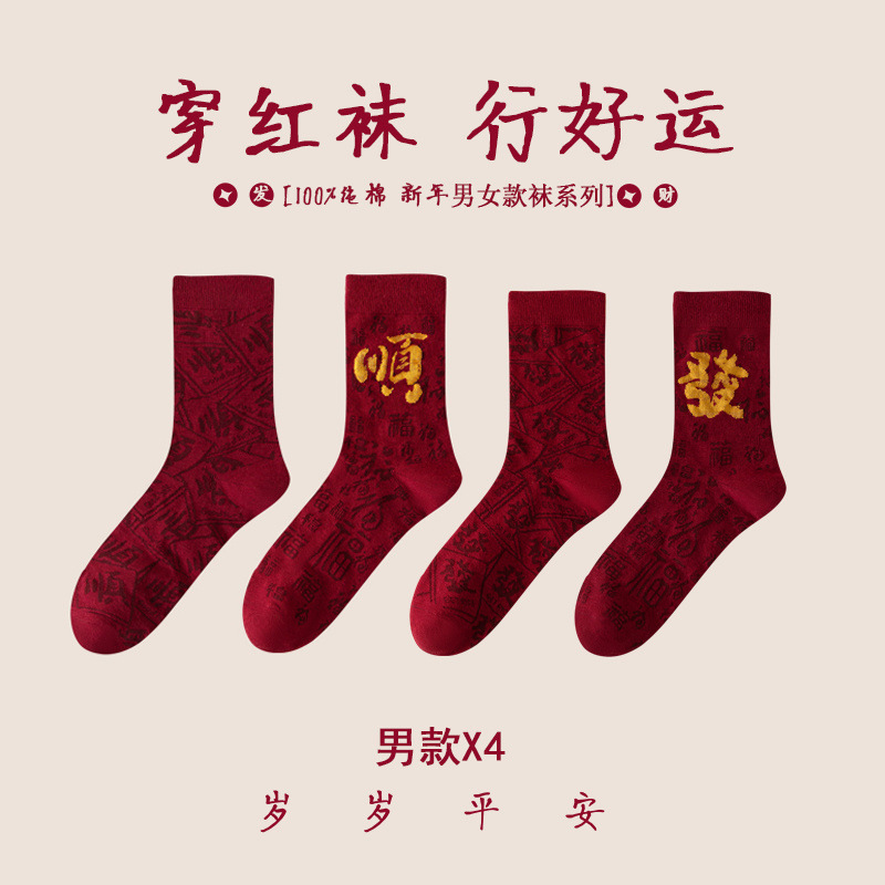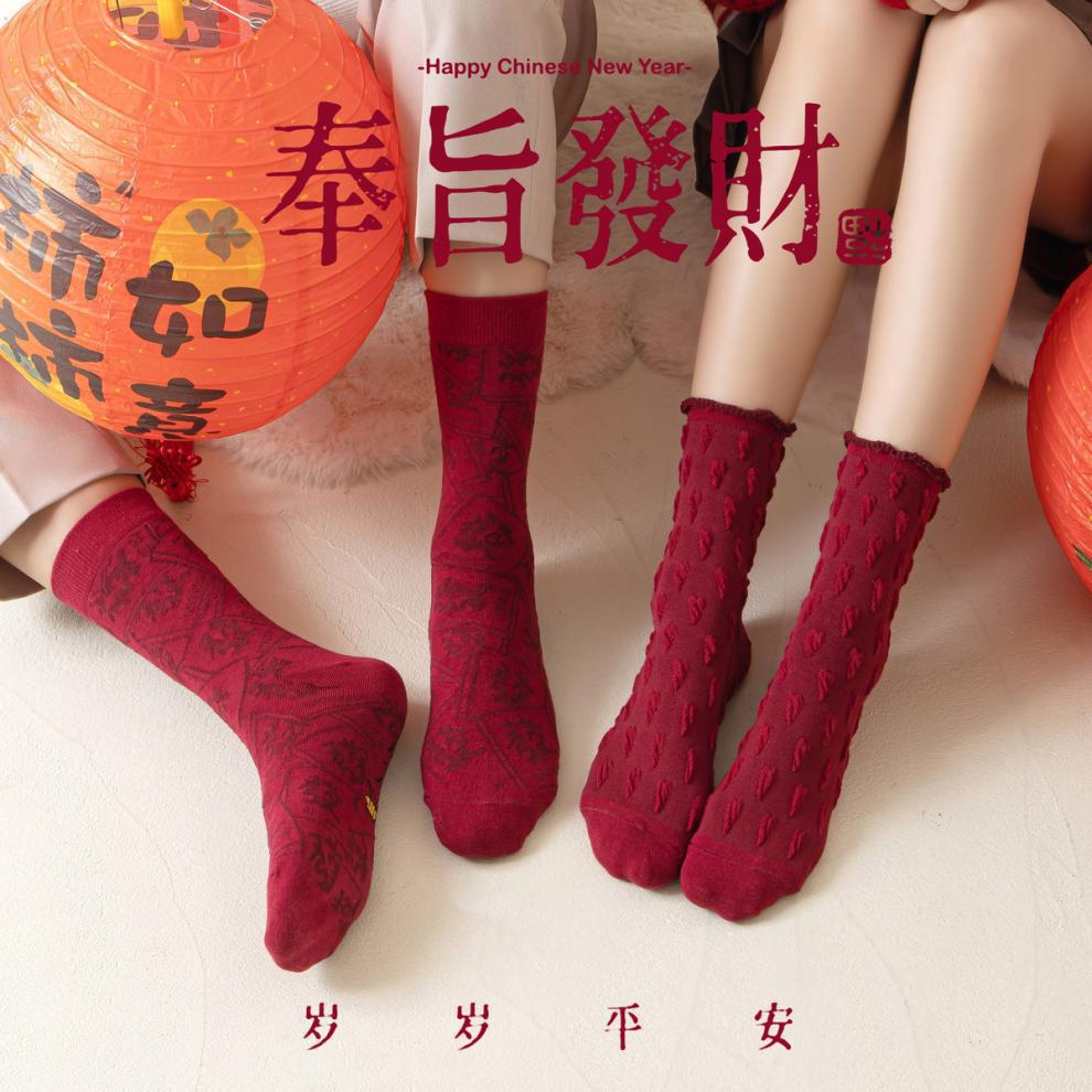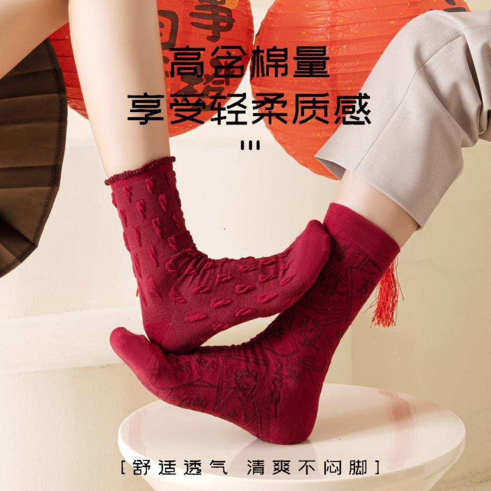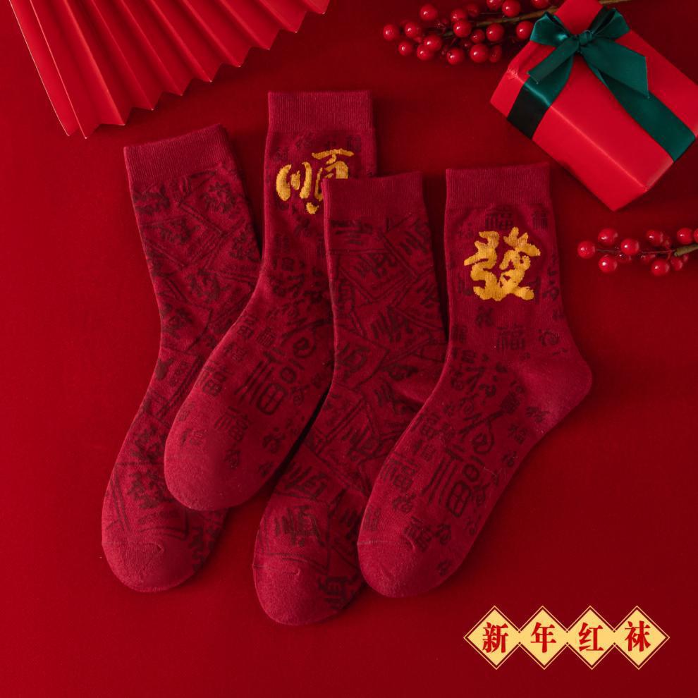 2025 Новый год Новый год красные носки для мужчин и женщин дикие красные новогодние носки