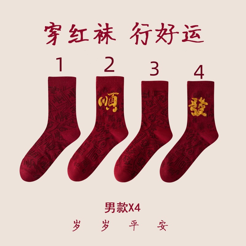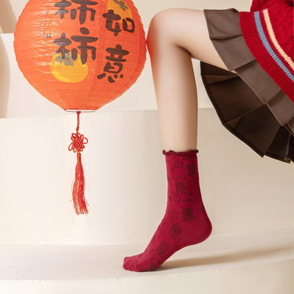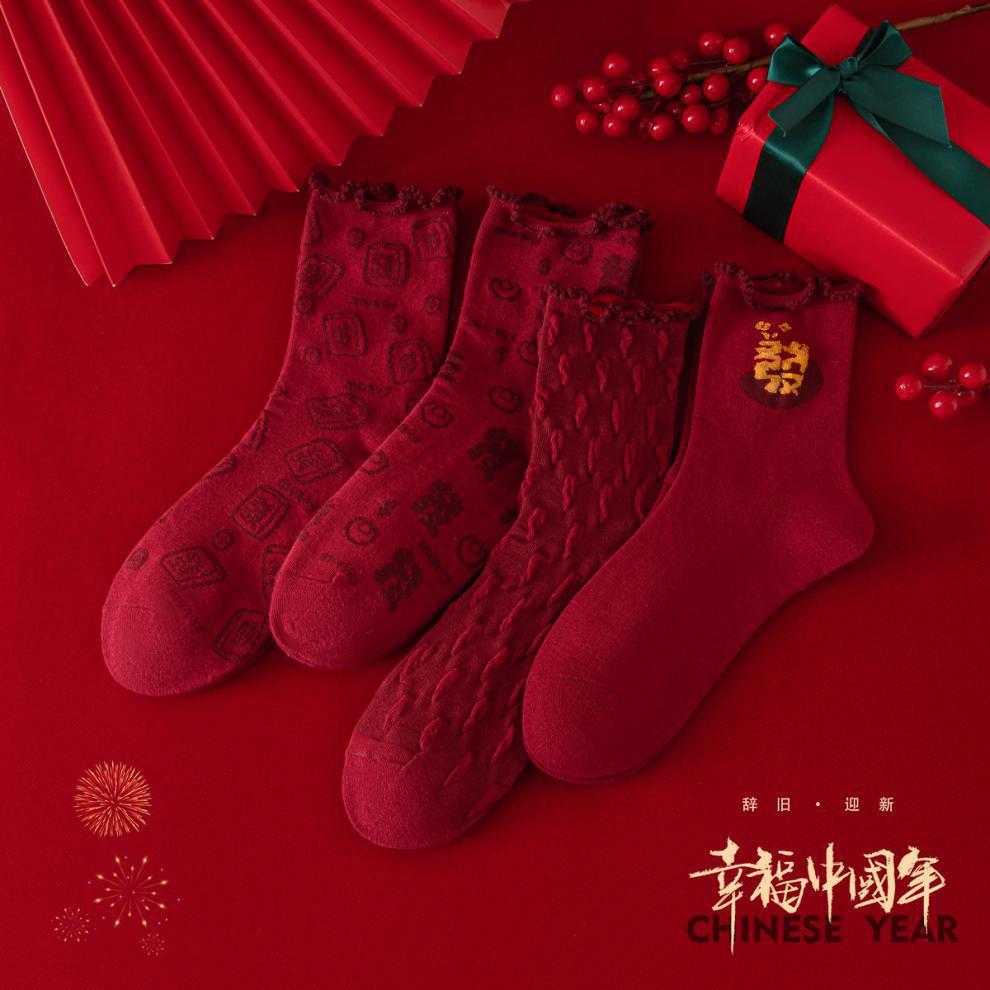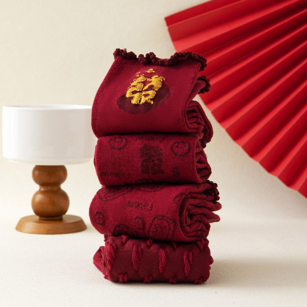 2025 Новый год Новый год красные носки для мужчин и женщин дикие красные новогодние носки