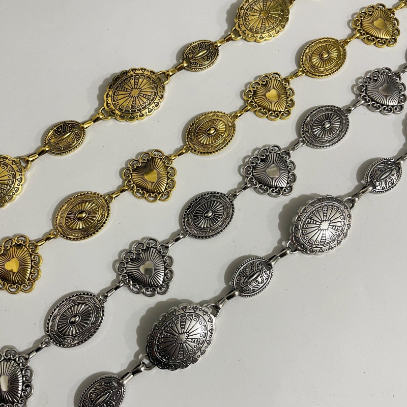 Европейские и американские трансграничные металлические сшитые цепи талии женские ретро модные дикие текстурированные платья талии украшения пятно оптом