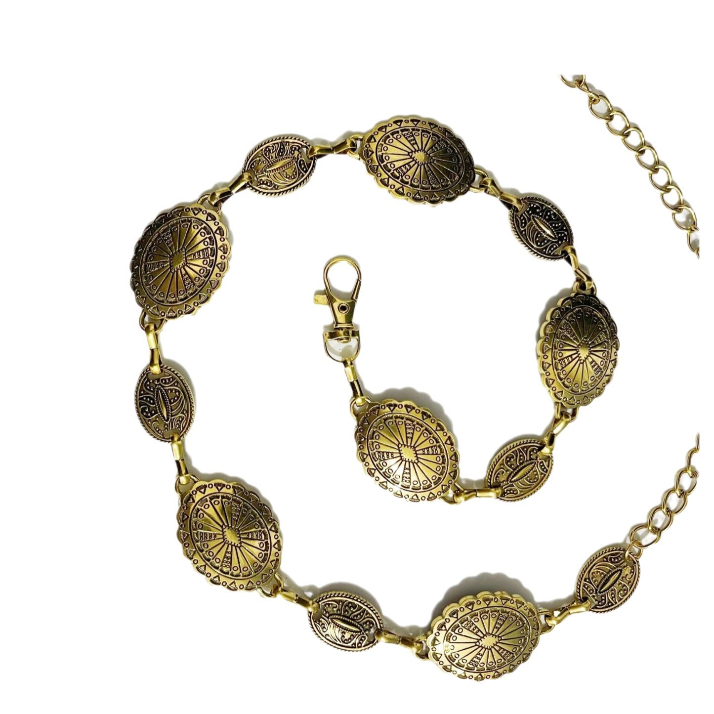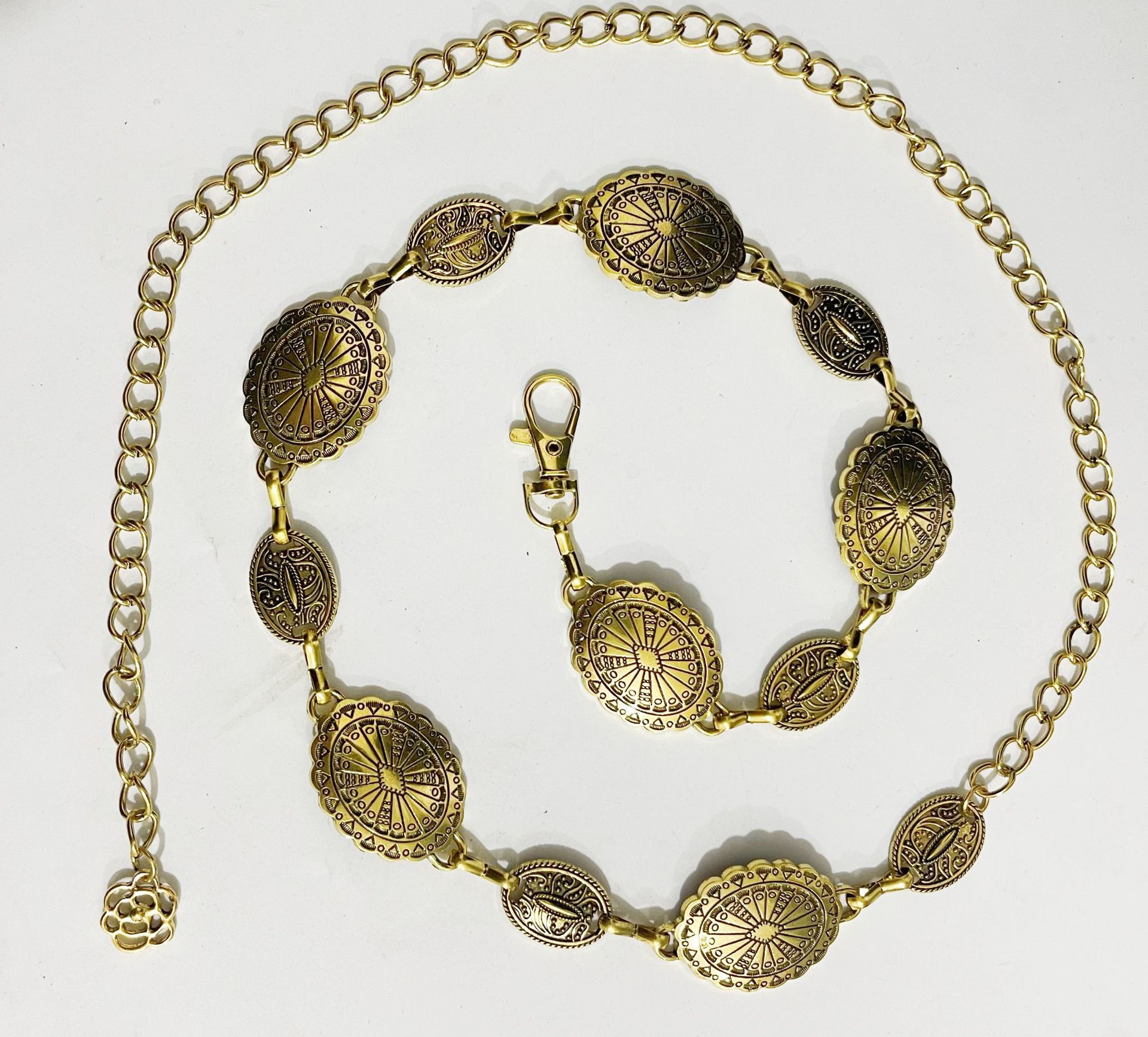 Поясная цепочка с резьбой, древне золото; Поясная цепочка с резьбой, древне серебро