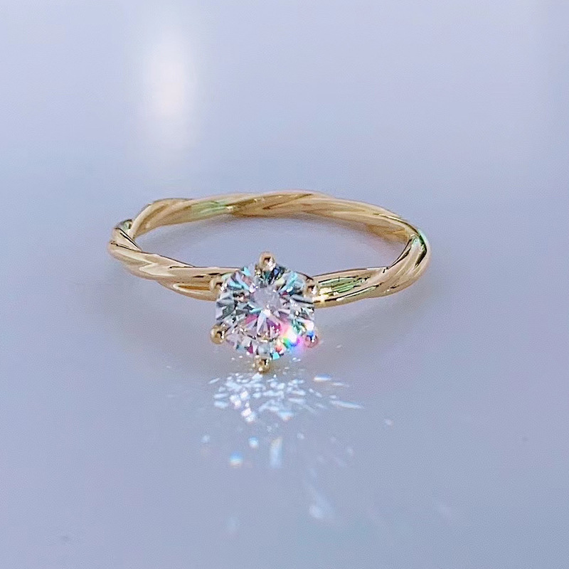 Кольцо из золота 18 карат с муассанитом и пеньковой веревкой Au750, цветное золотое кольцо с муассанитом и шестикогтевым бриллиантом для подруги, золотое кольцо с водной ракушкой