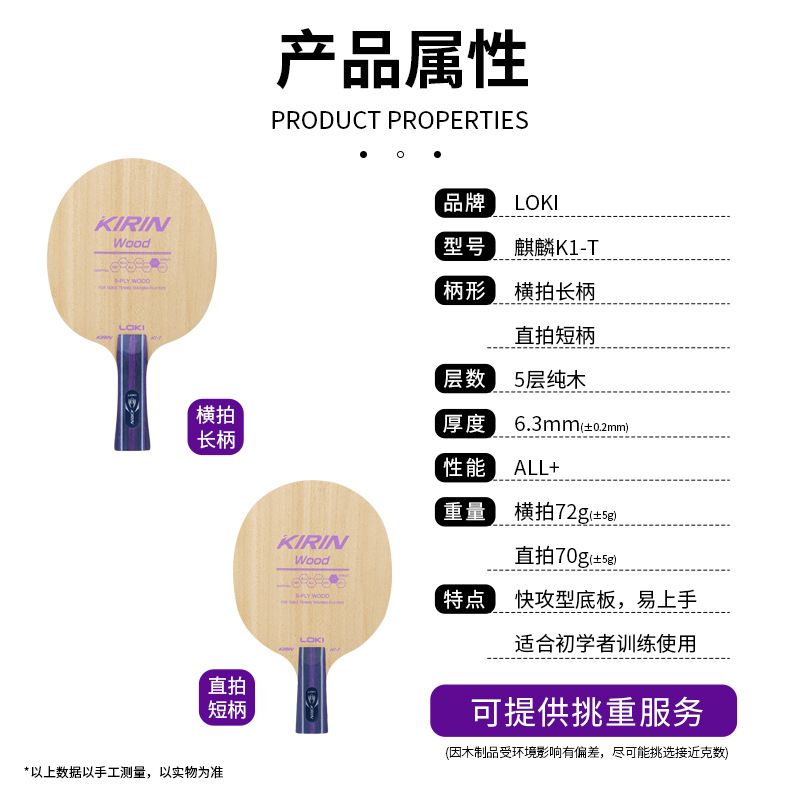 LOKI Raytheon ракетка для настольного тенниса тренировочная начальная нижняя пластина 5 слоев чистого дерева оптом Кирин KIRIN K1-T