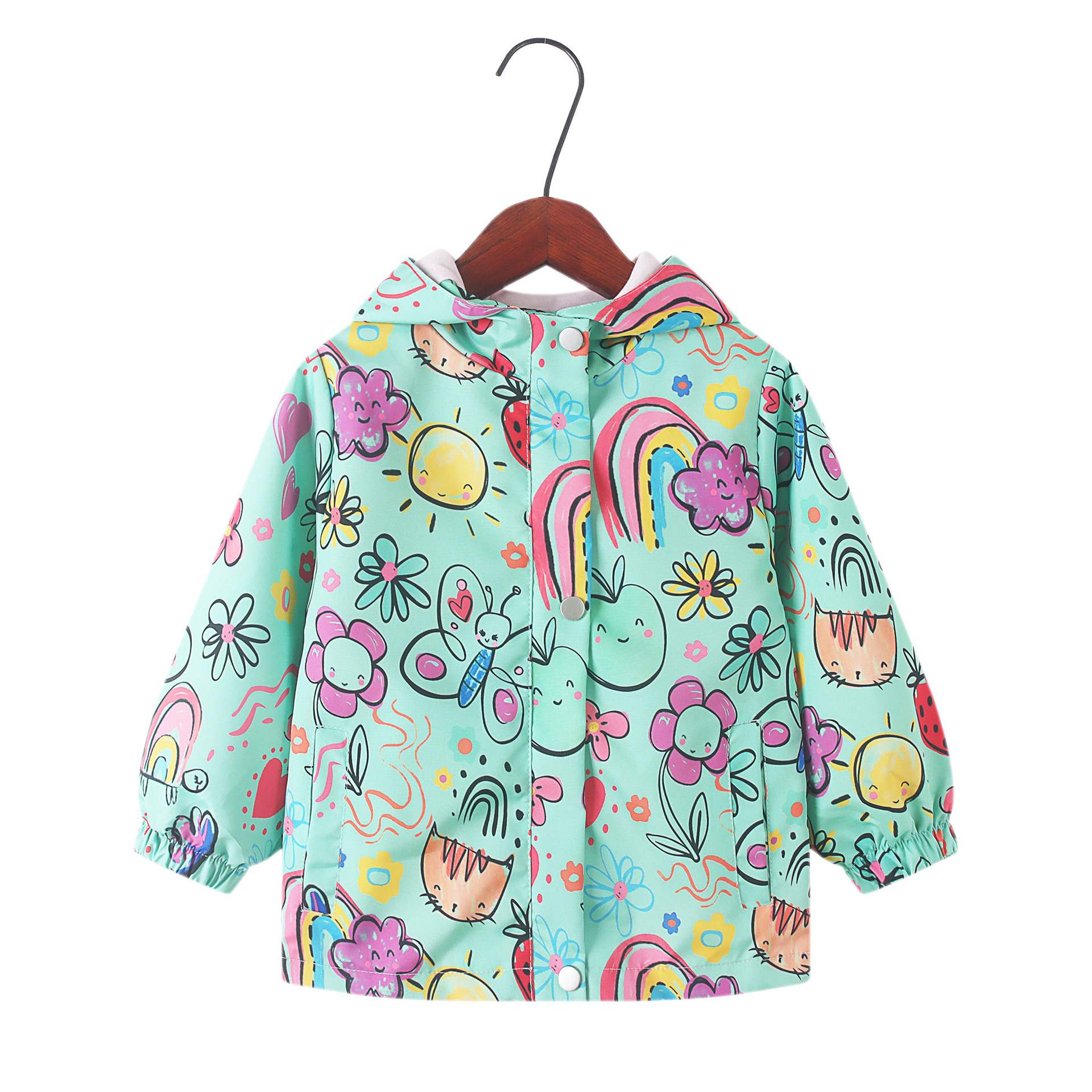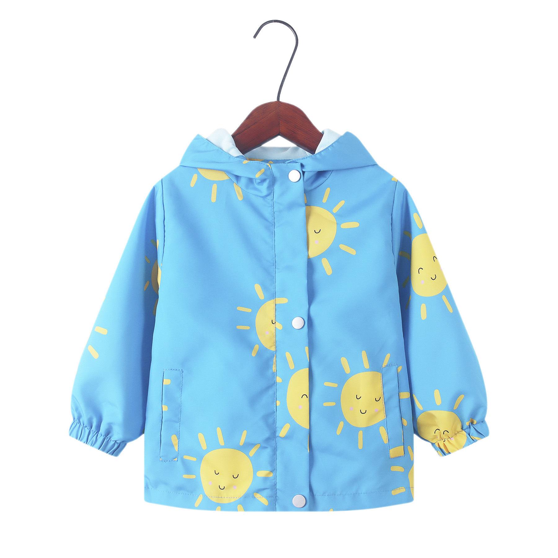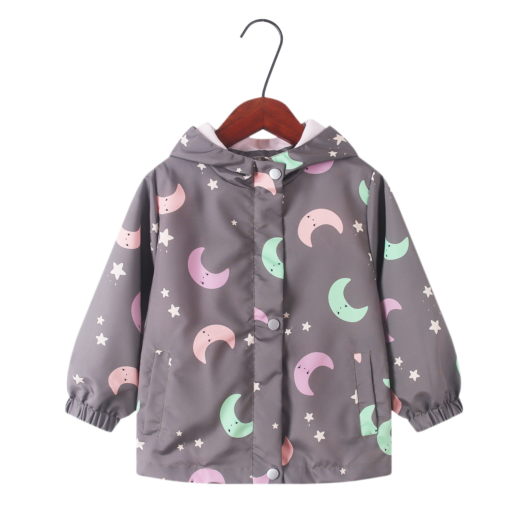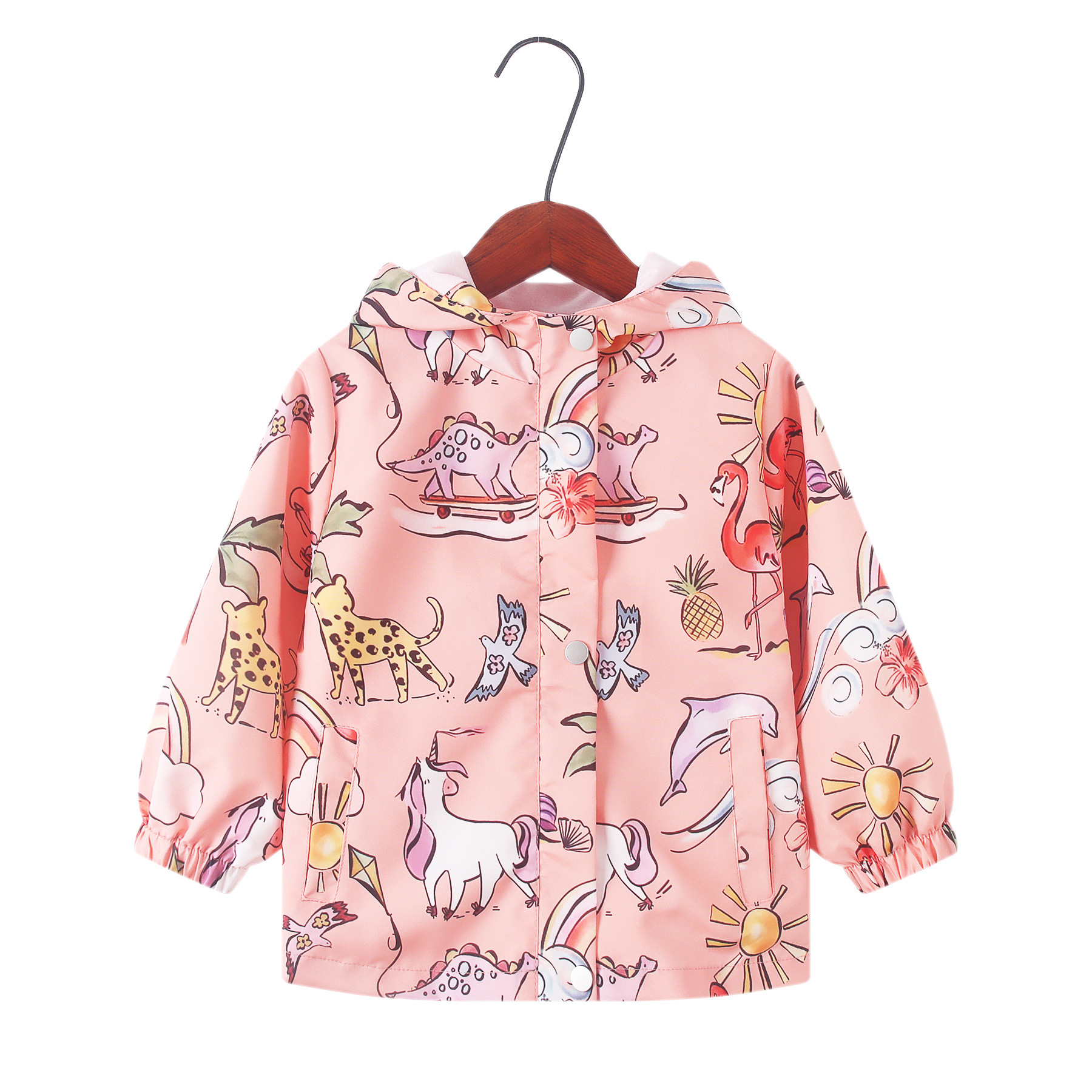 Весенне-осенняя новинка 2026: детская куртка-ветровка с капюшоном, размеры 100-150, для мальчиков и девочек, модная, с принтом, свободного кроя, водонепроницаемая.