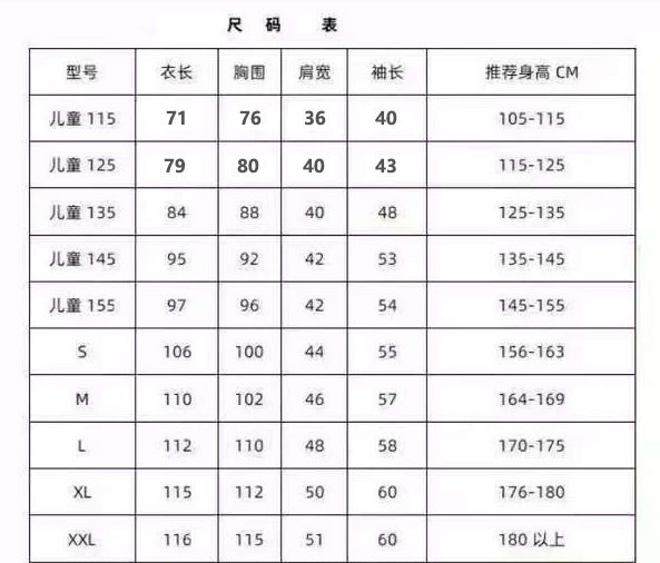 115; 125; 135; 145; 155; S; M; L; XL; XXL