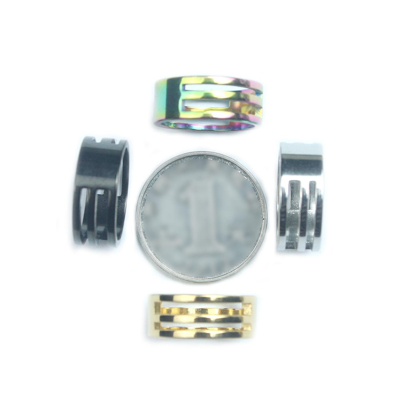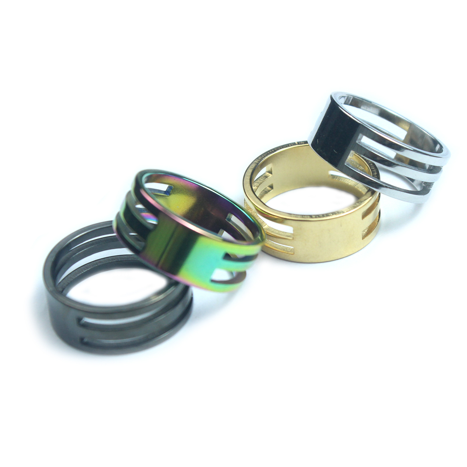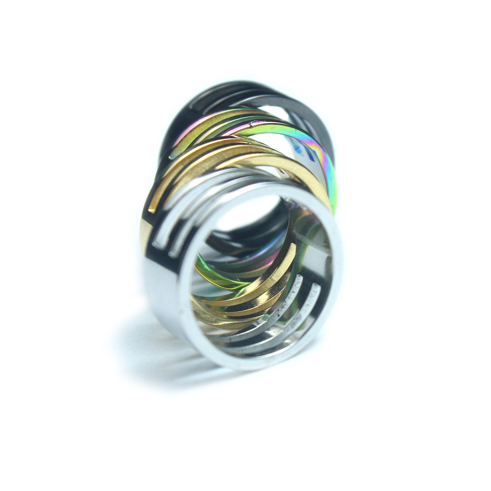 Открытое кольцо из нержавеющей стали – цвет стали.; Открытое кольцо из нержавеющей стали - черное; Открытое кольцо из нержавеющей стали-золото; Открытое кольцо из нержавеющей стали семь цветов