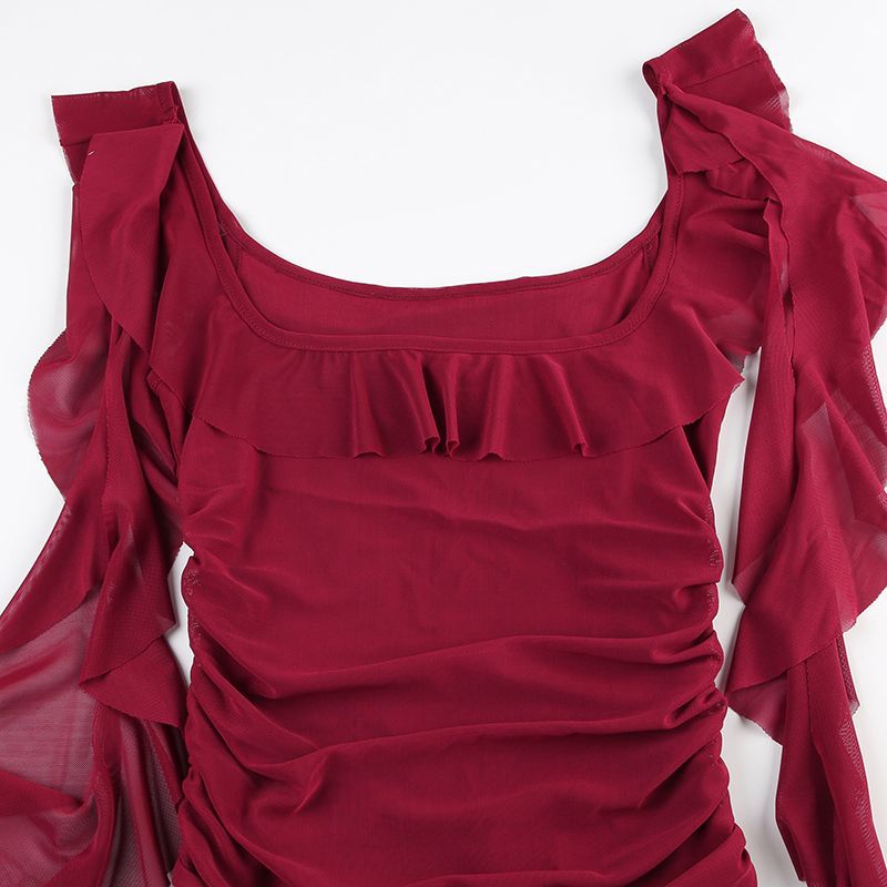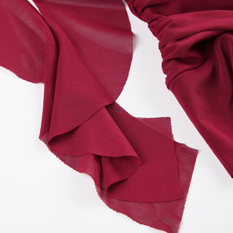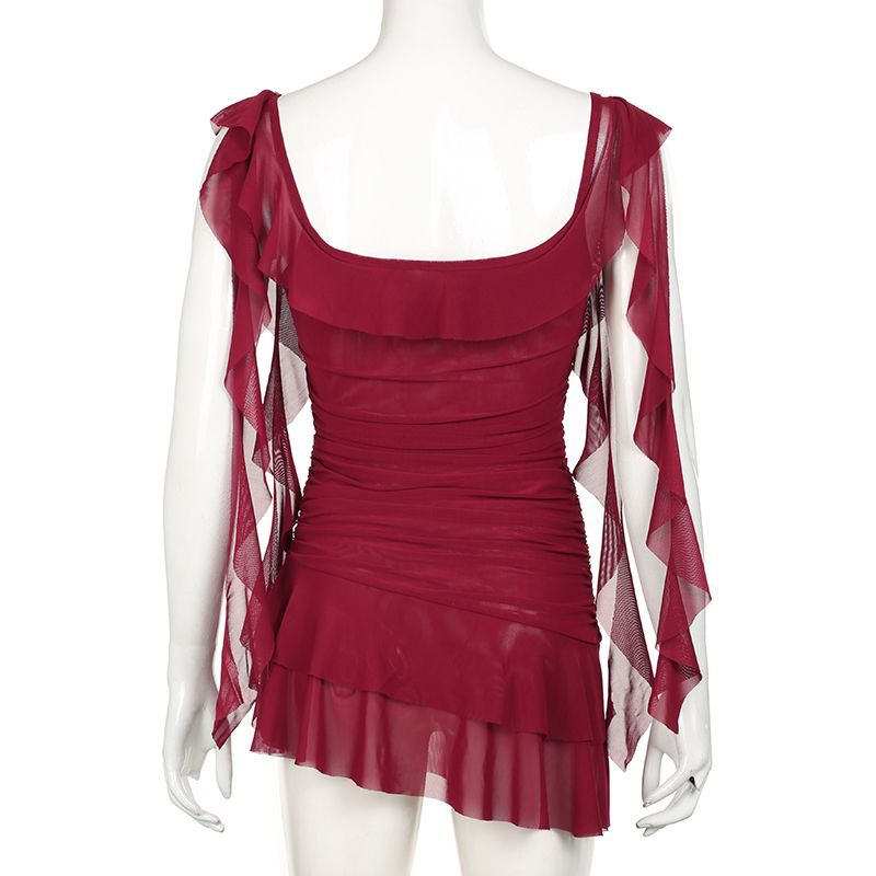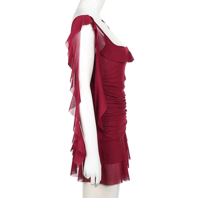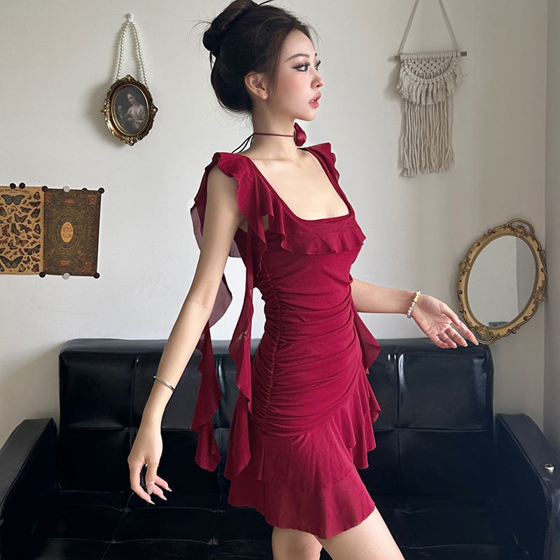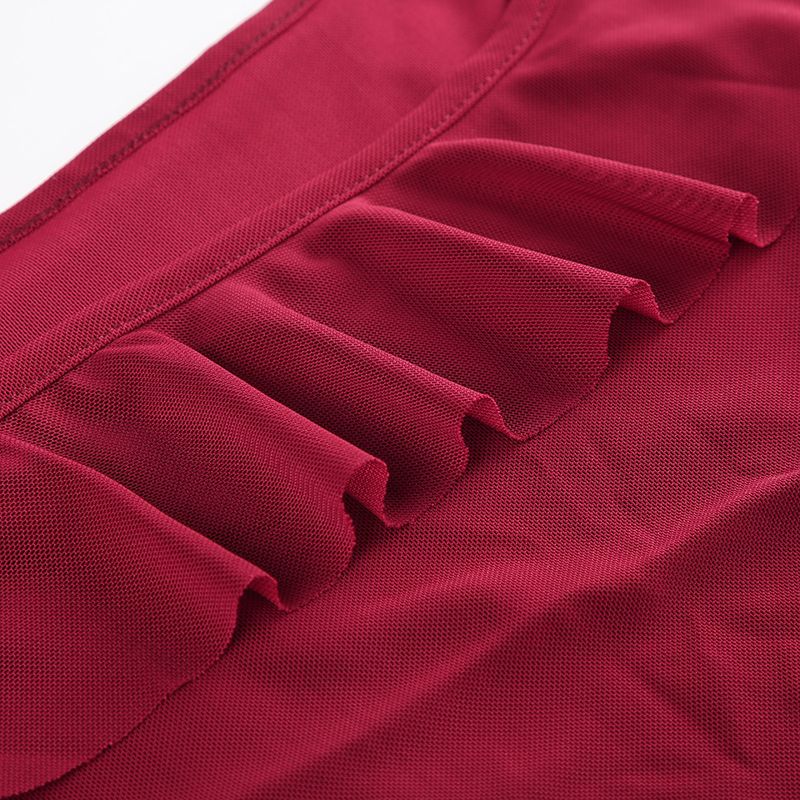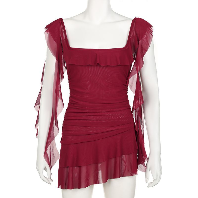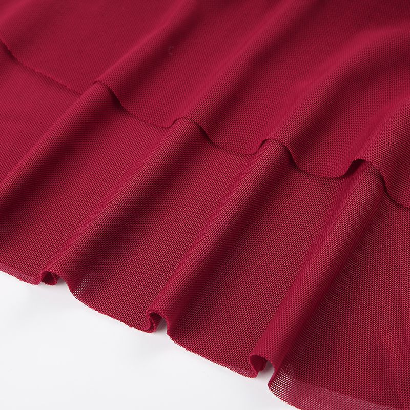 2025 воротник с листом лотоса Красное платье Летнее легкое сетчатое платье