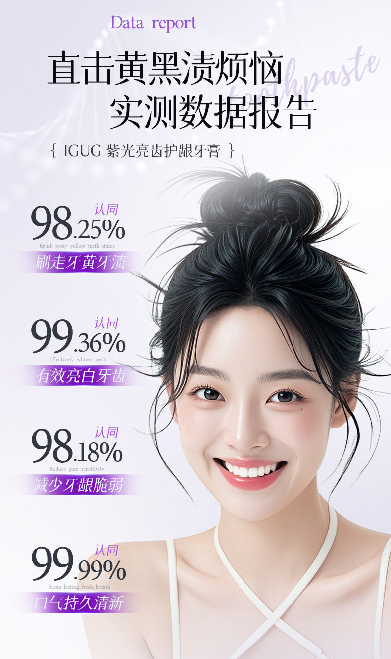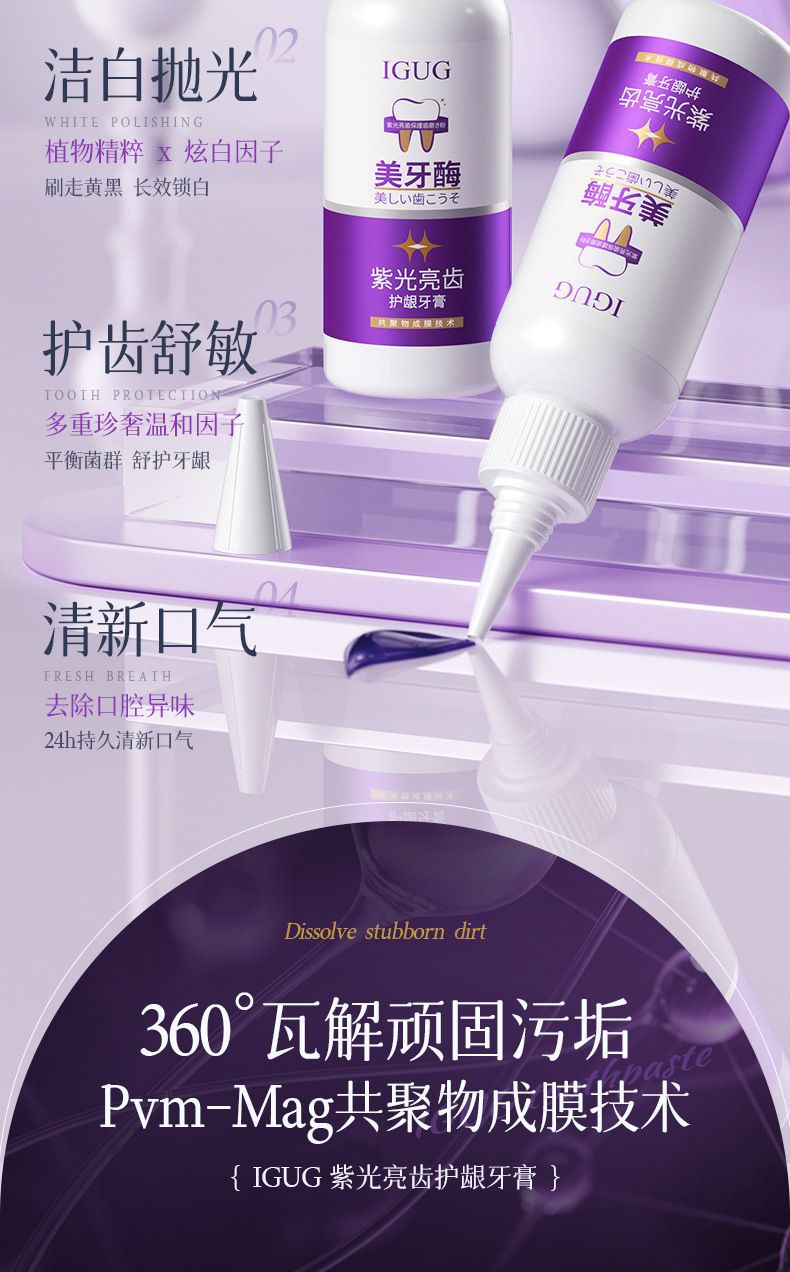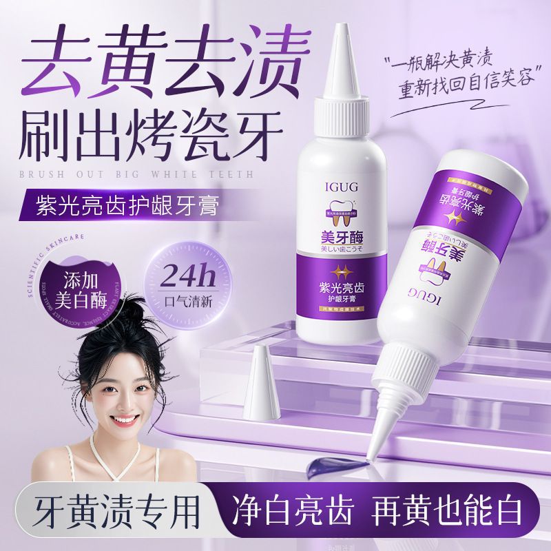 Фиолетовая зубная паста для отбеливания и обесцвечивания зубов