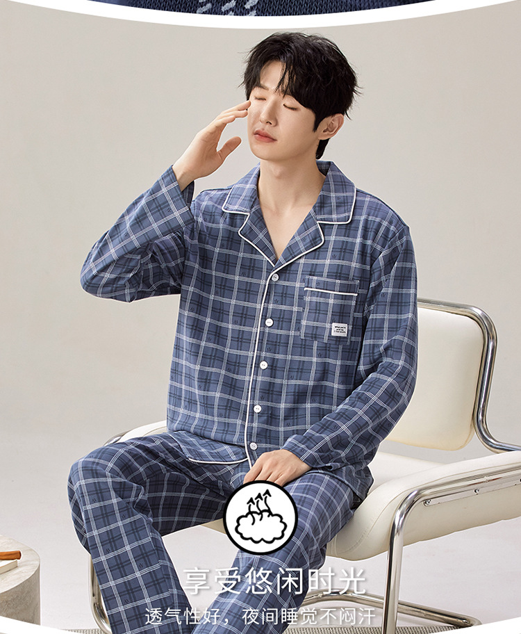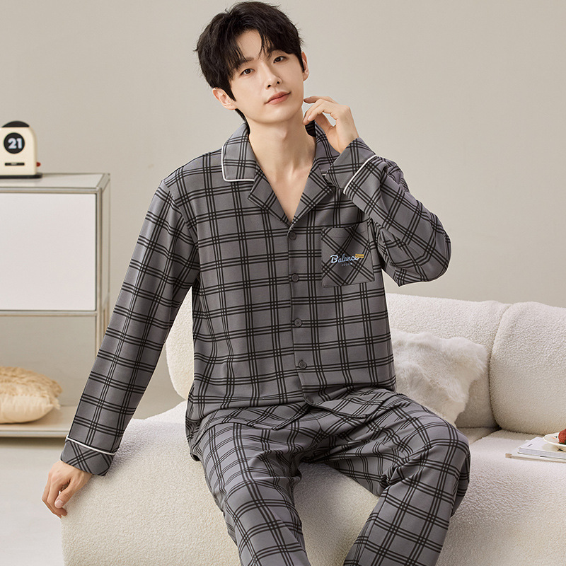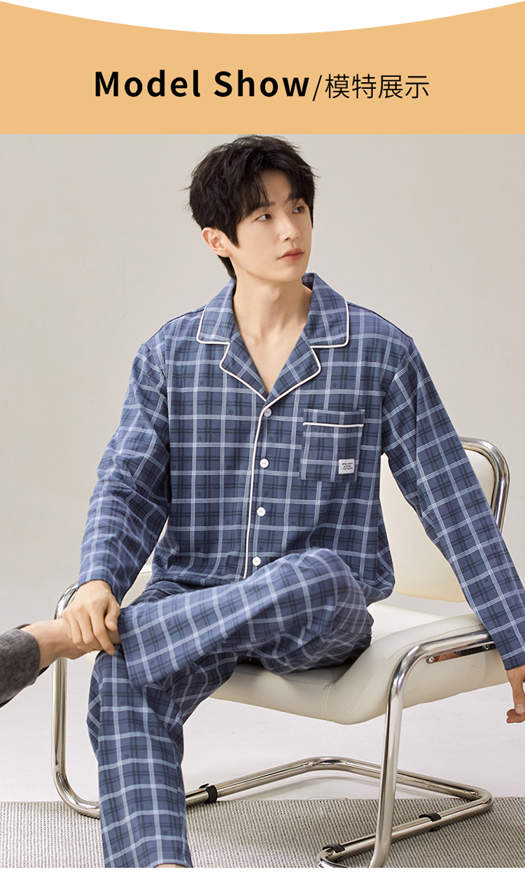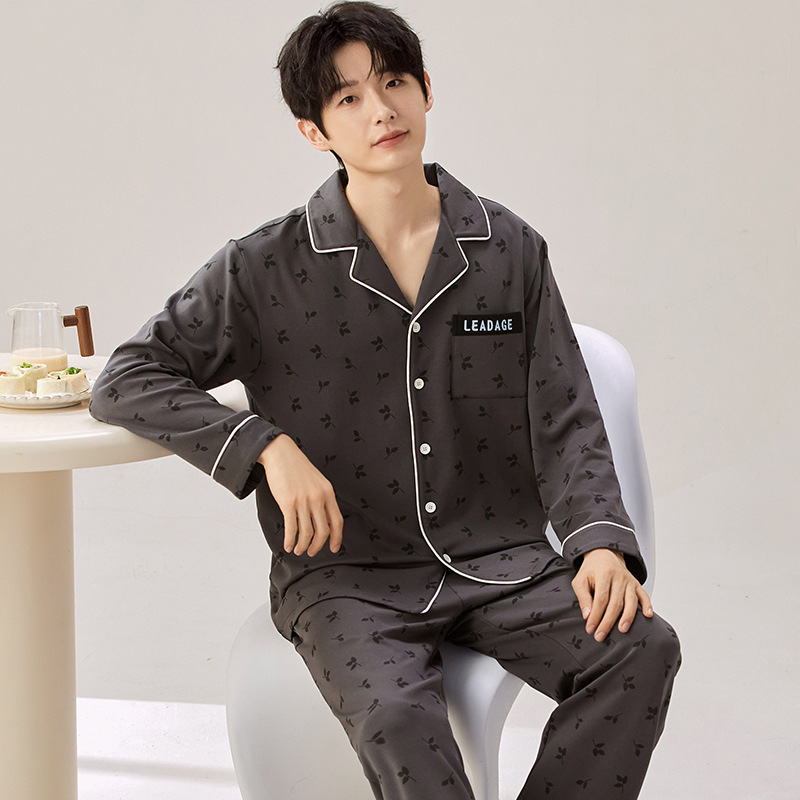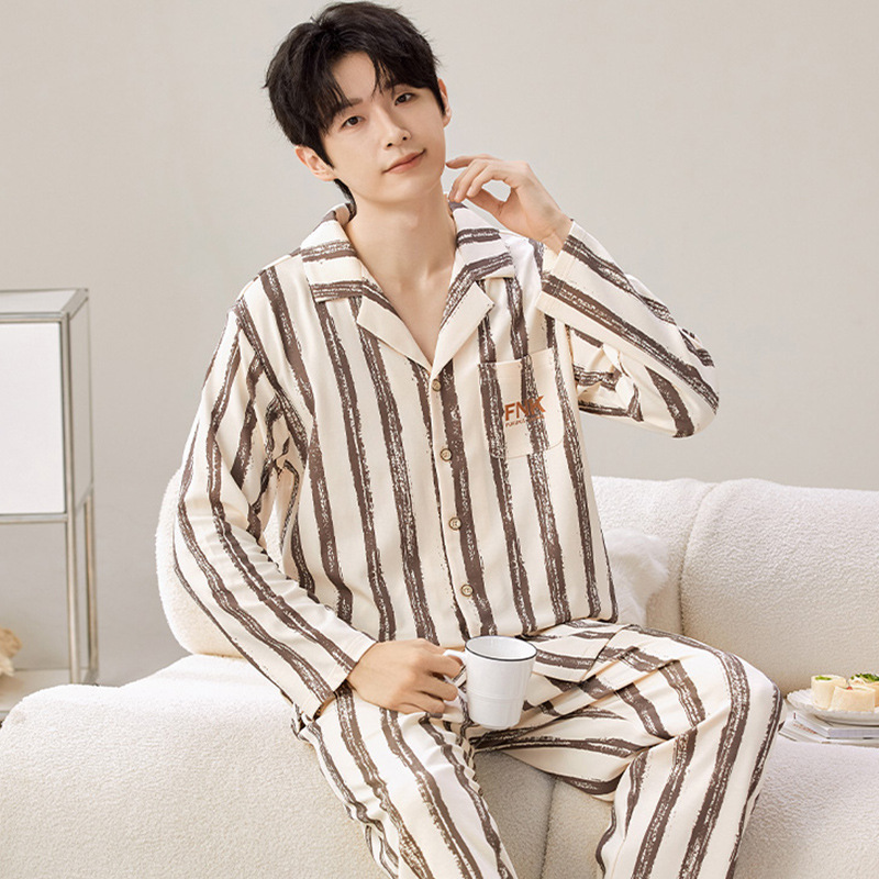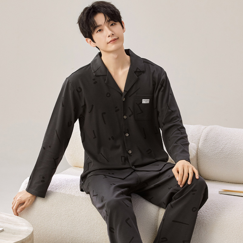 Пижама мужская весна и осень имитация хлопка с длинными рукавами 2024 новый удобный большой размер можно носить на улице