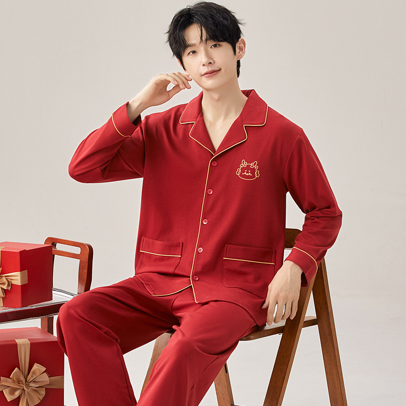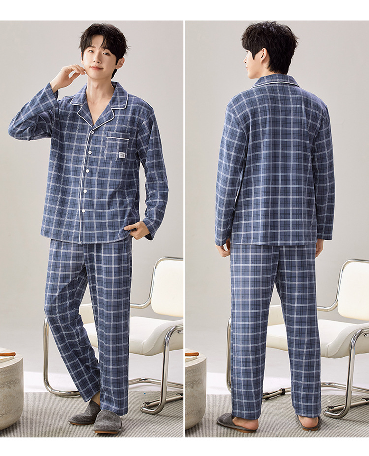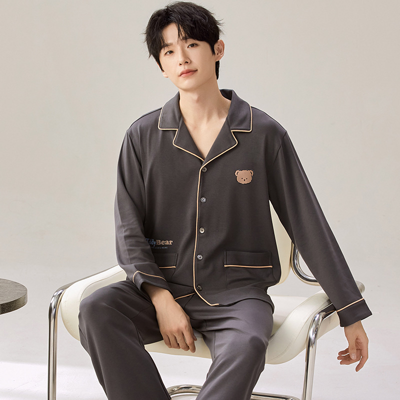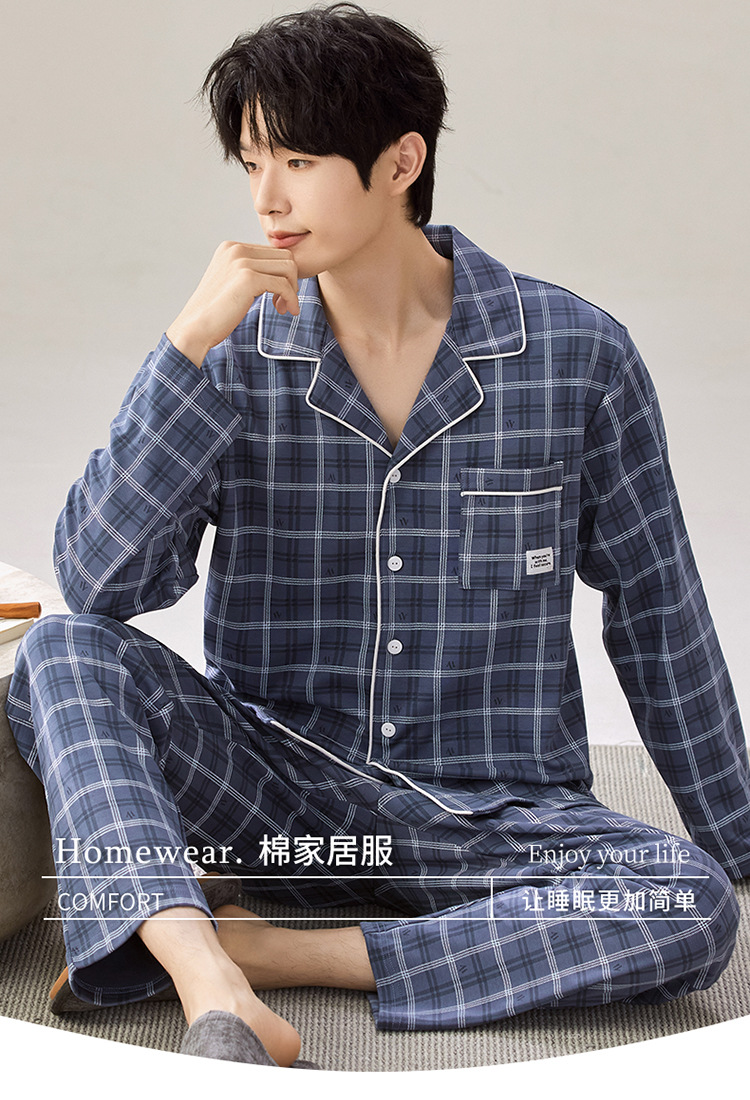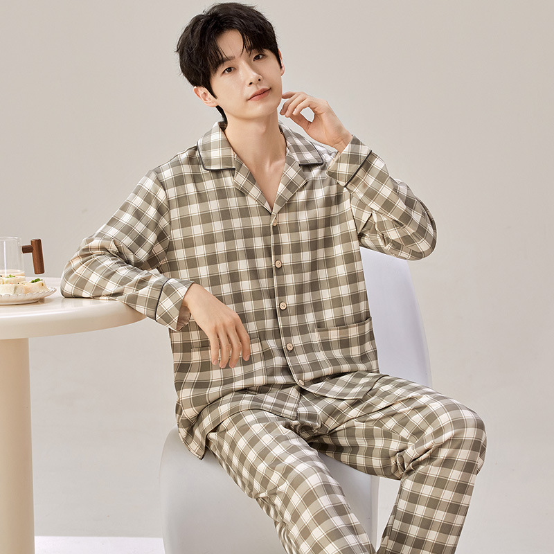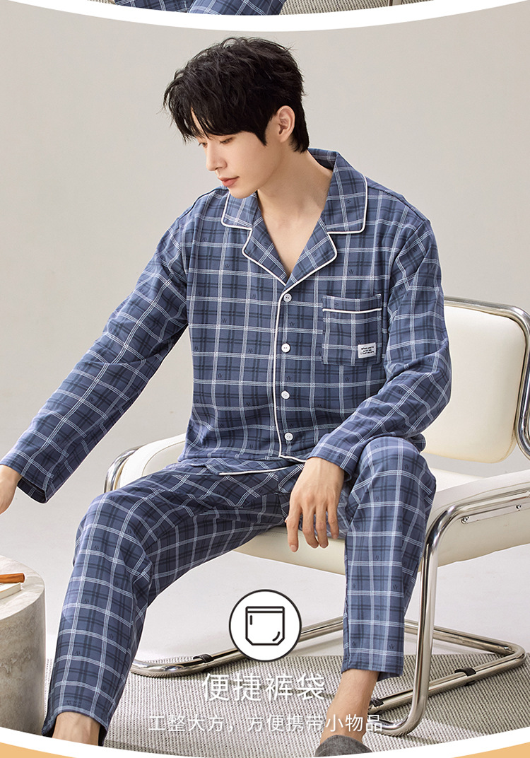 Пижама мужская весна и осень имитация хлопка с длинными рукавами 2024 новый удобный большой размер можно носить на улице