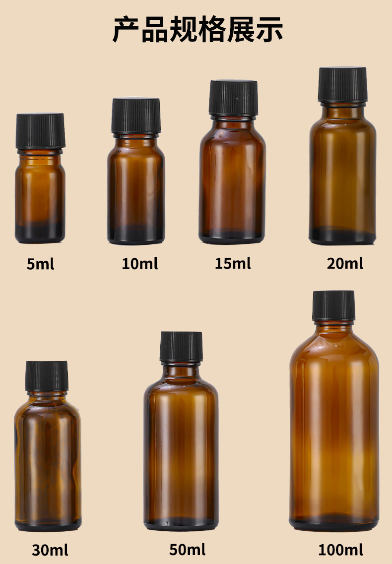 5мл; коричневый; стекло; 10мл; коричневый; стекло; 15мл; коричневый; стекло; 20мл; коричневый; стекло; 30мл; коричневый; стекло; 50мл; коричневый; стекло; 100мл; коричневый; стекло