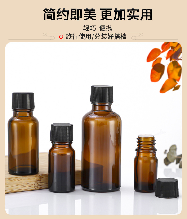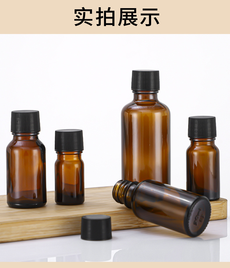 Флакон для эфирных масел коричневого цвета в наличии, с пластиковой крышкой, светонепроницаемый, из коричневого стекла, дорожный флакон для эфирных масел, коричневый флакон типа «Бостон».