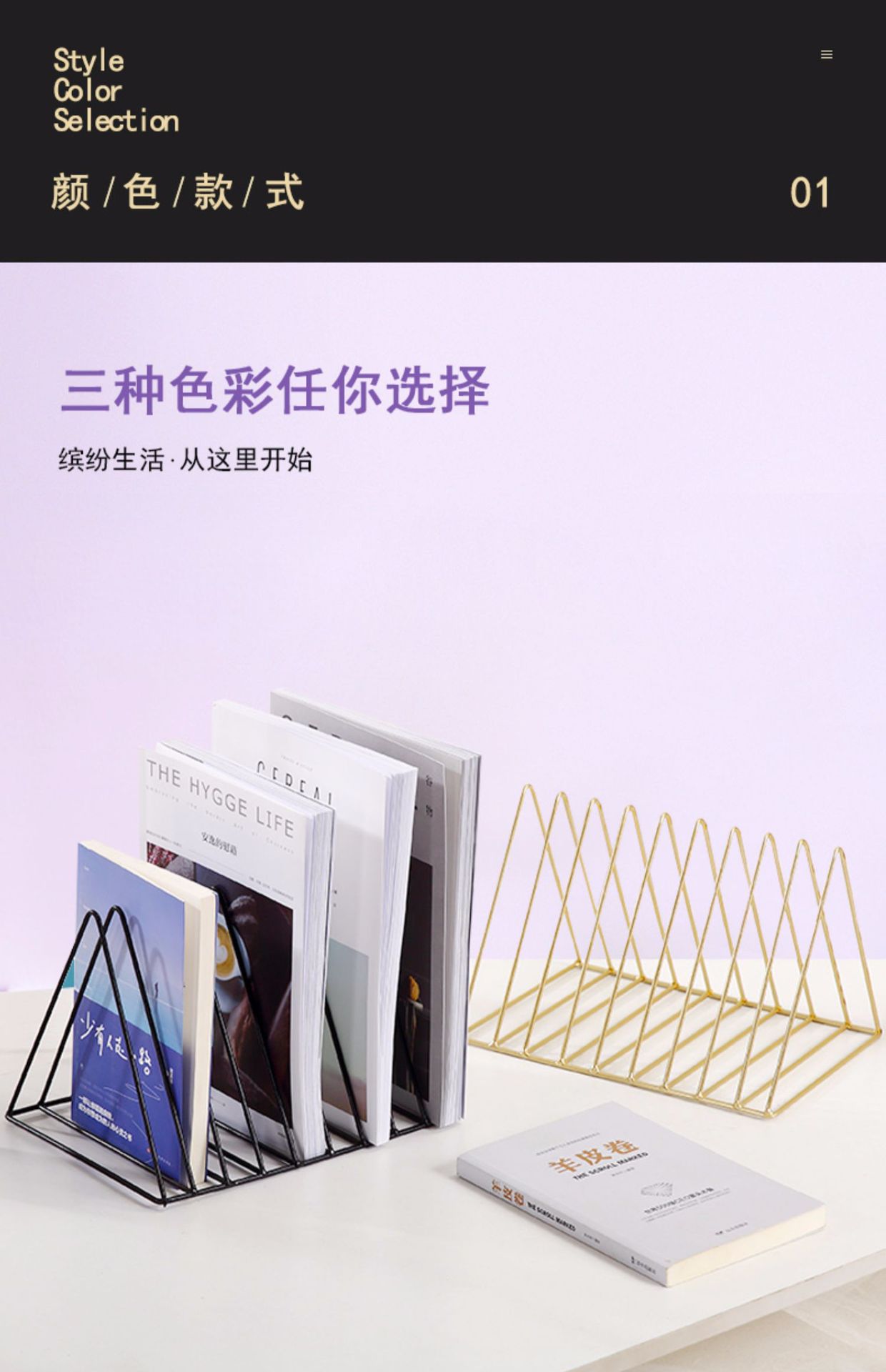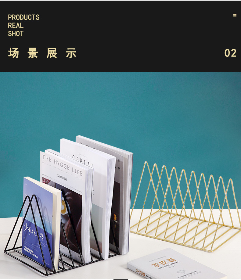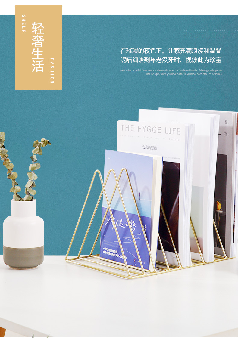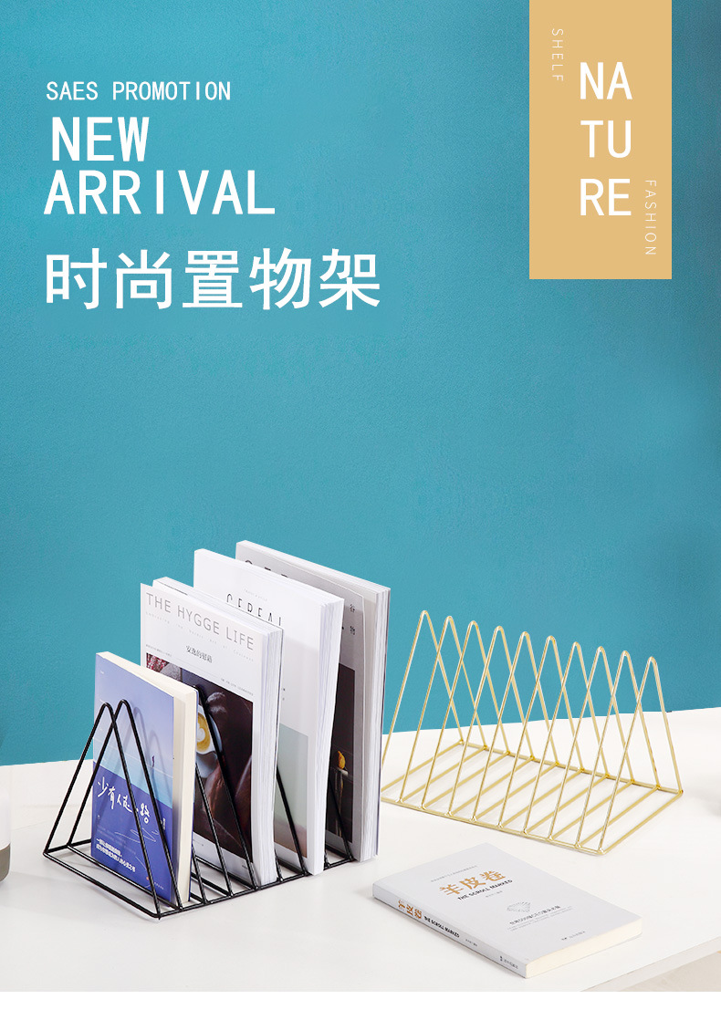 Скандинавские железные книжные полки Скандинавские креативные золотые треугольные книжные полки
