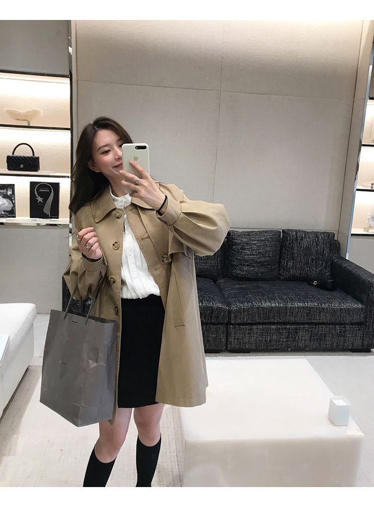 Весенняя и осенняя средняя длинная школьный стиль беспроводной ветровки головы пальто маленькое пальто прилив темперамент топ