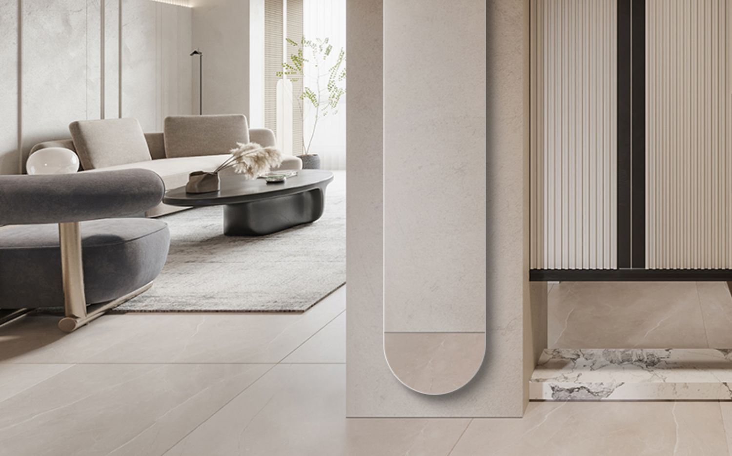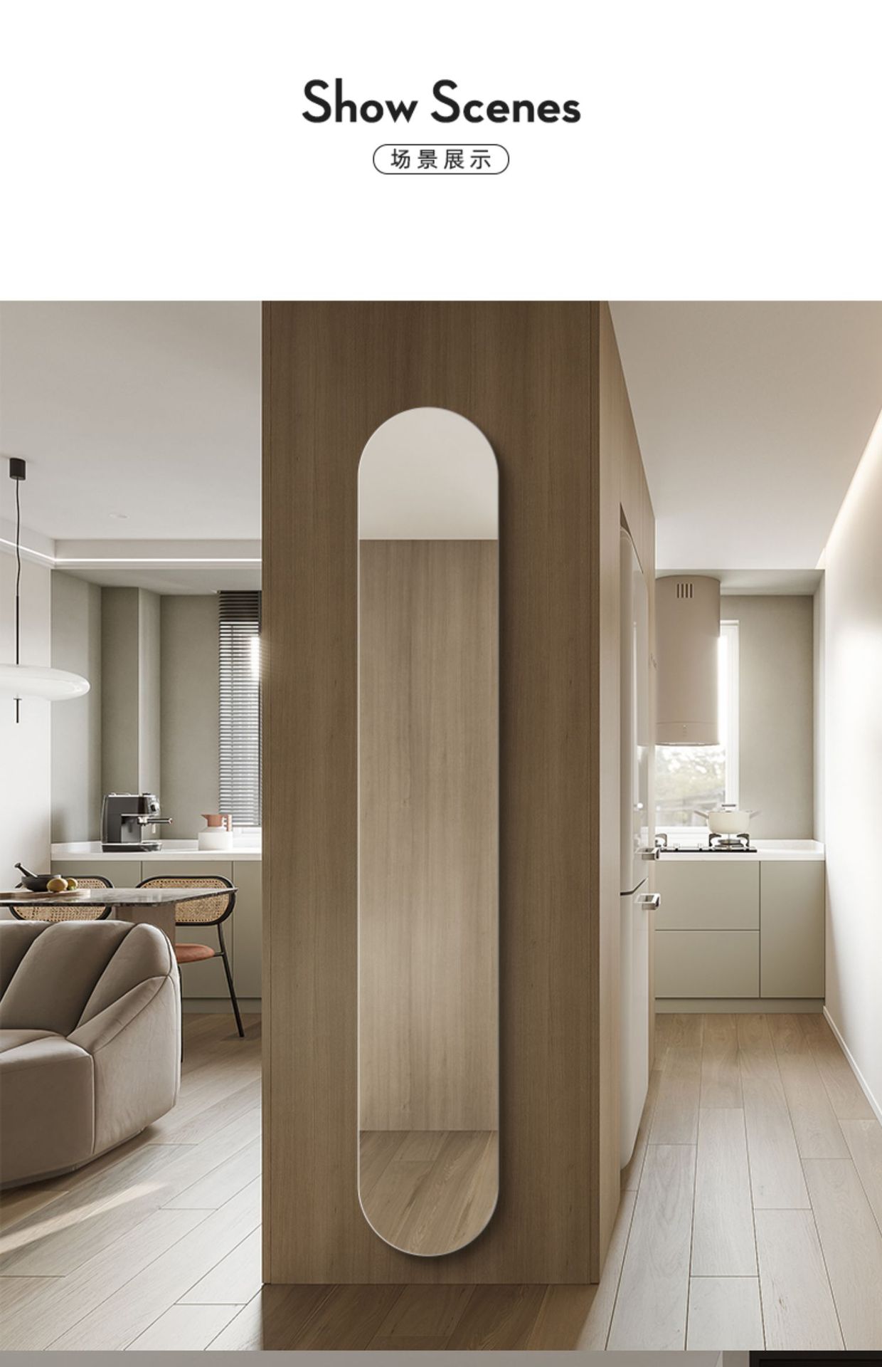 Безрамное чрезвычайно узкое зеркало.
