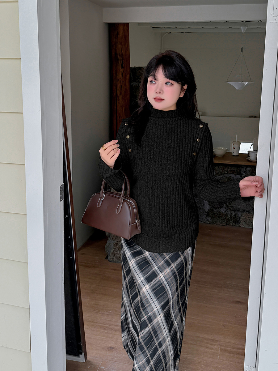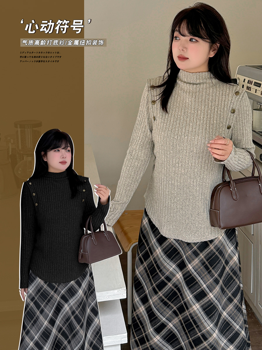 7947 Xuanchen слегка толстый большой размер с половинным вырезом трикотажный нижний свитер женский дизайн ощущает эластичность