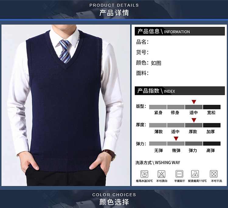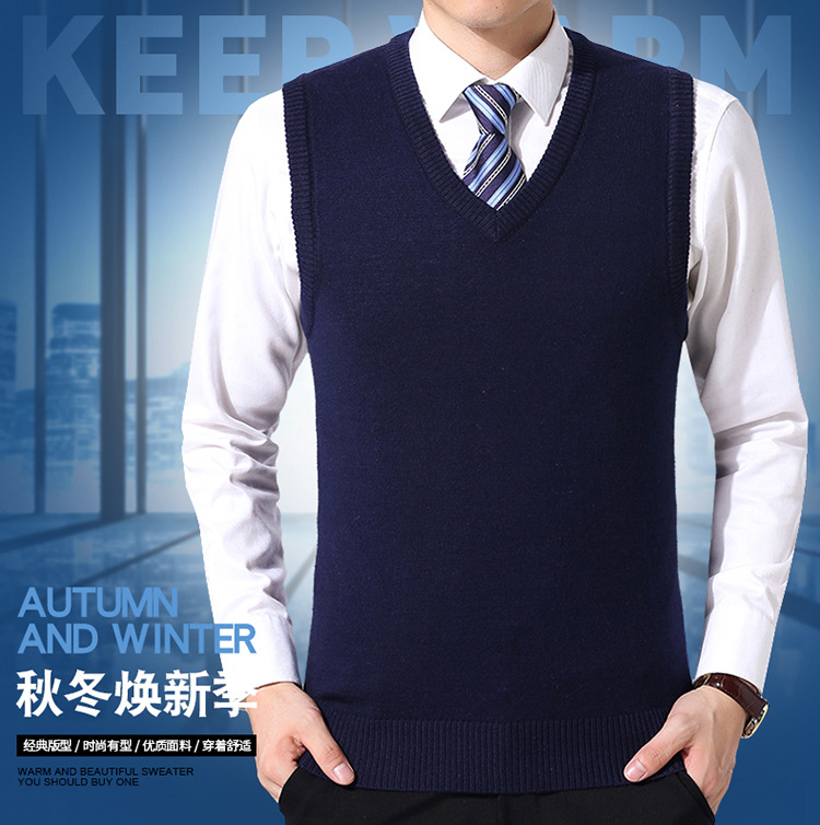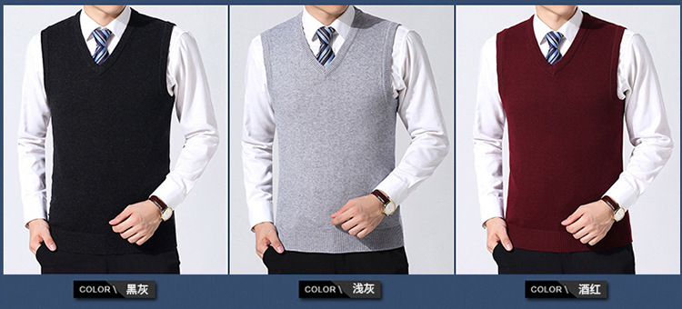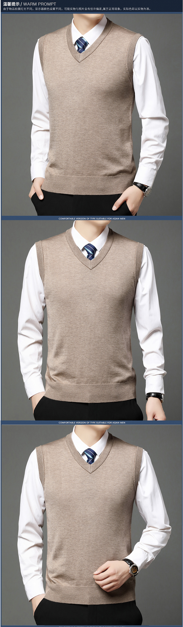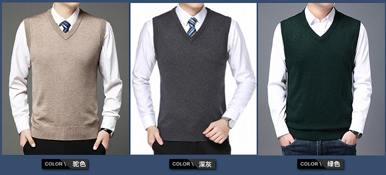 2024 осень новый мужской V-образный свободный шерстяной жилет сплошной цвет вязаный свитер мужской шерстяной жилет без рукавов