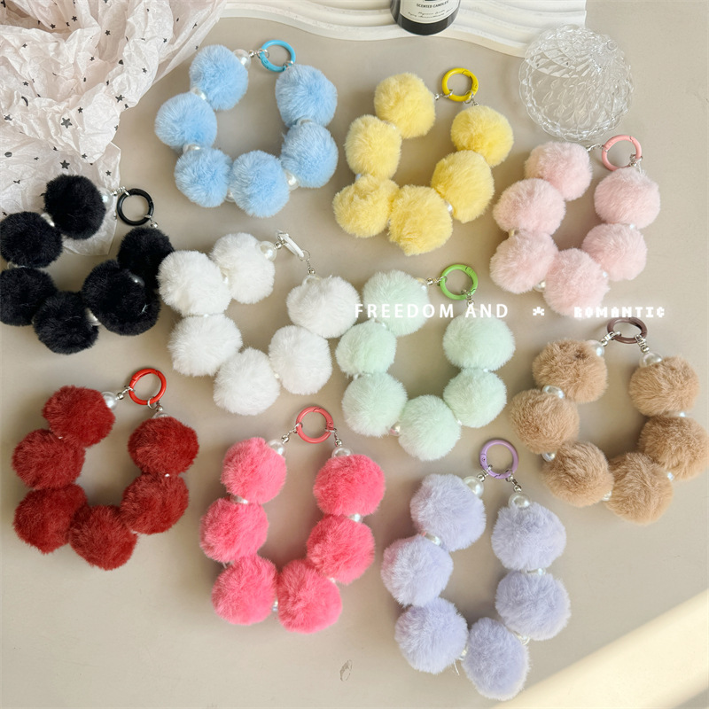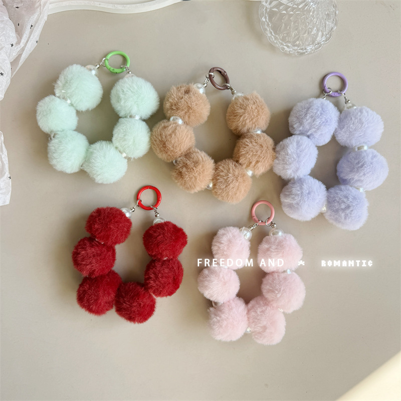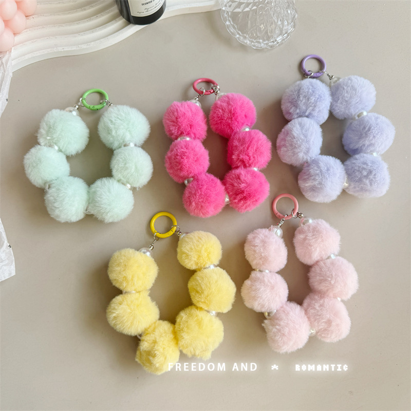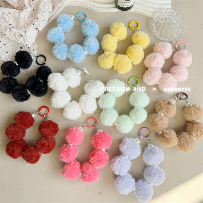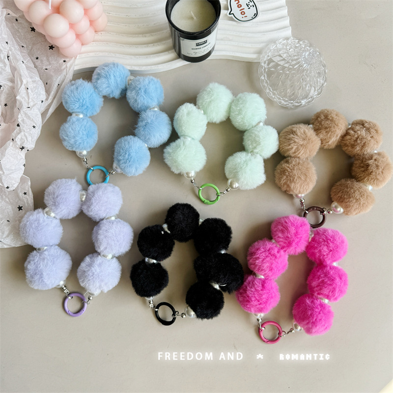 Новый плюшевый красочный меховой шар, подвесная цепочка, чехол для мобильного телефона, украшение, креативная краска, пружинное кольцо, аксессуары, украшение для женской сумки