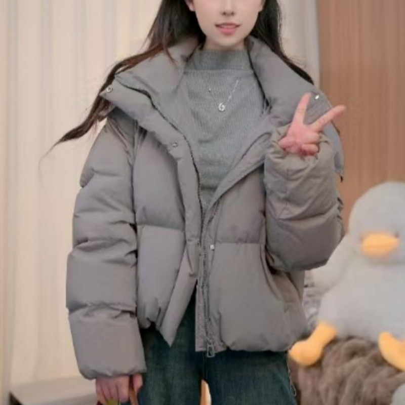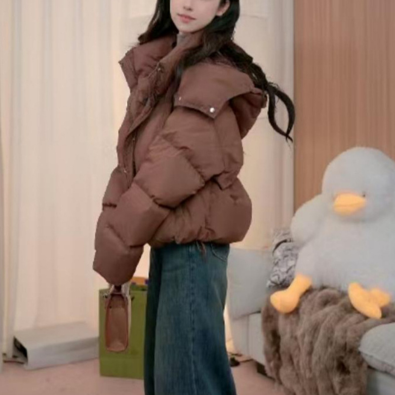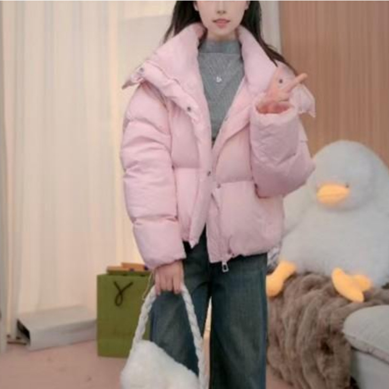 Пуховик из слоеного пуховика короткая свободная толстая сетка красная зимой теплая простота свободная дама дикая сплайна для отдыха