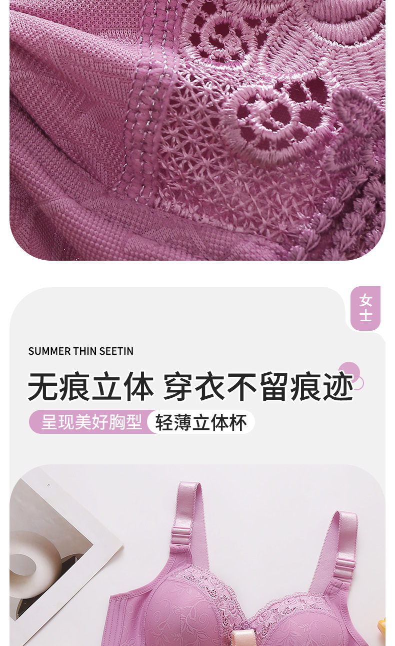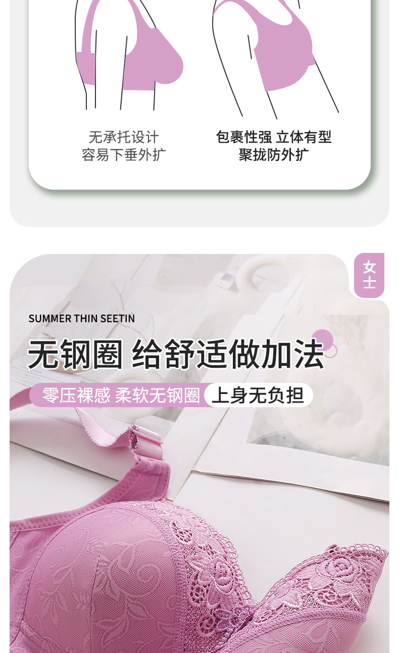 Большой размер роскошного кружева без стального кольца бюстгальтера