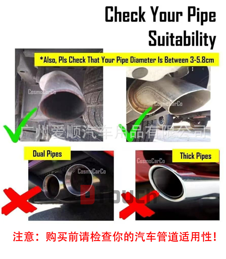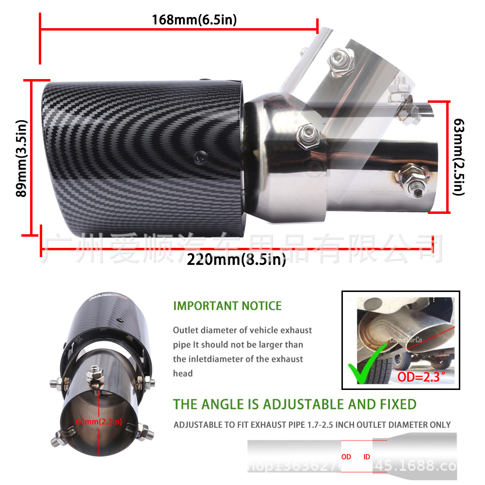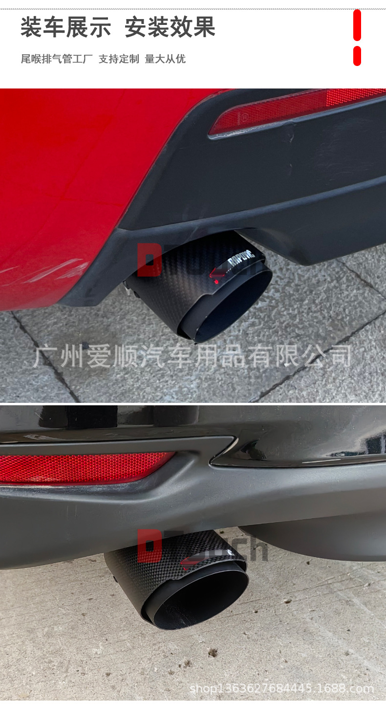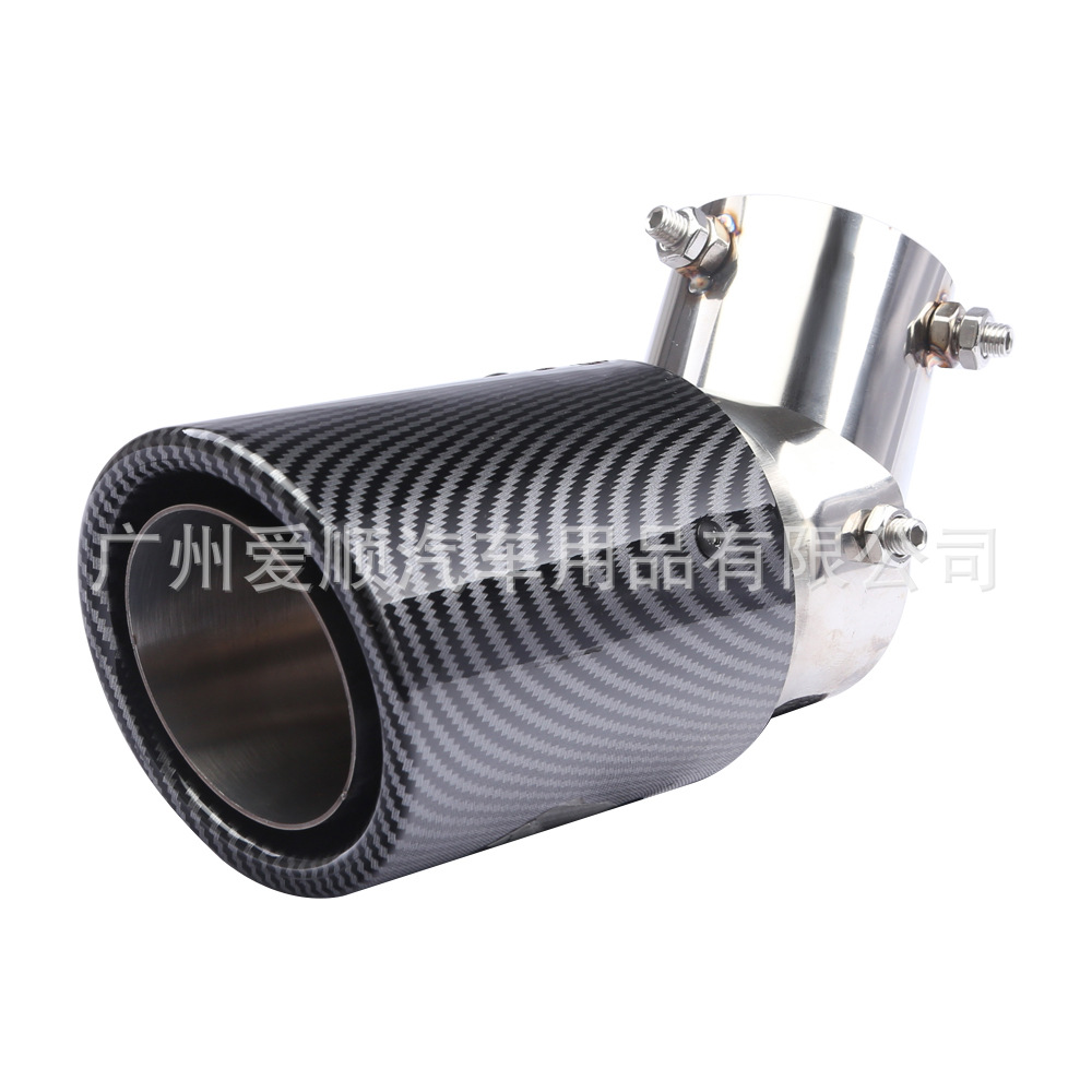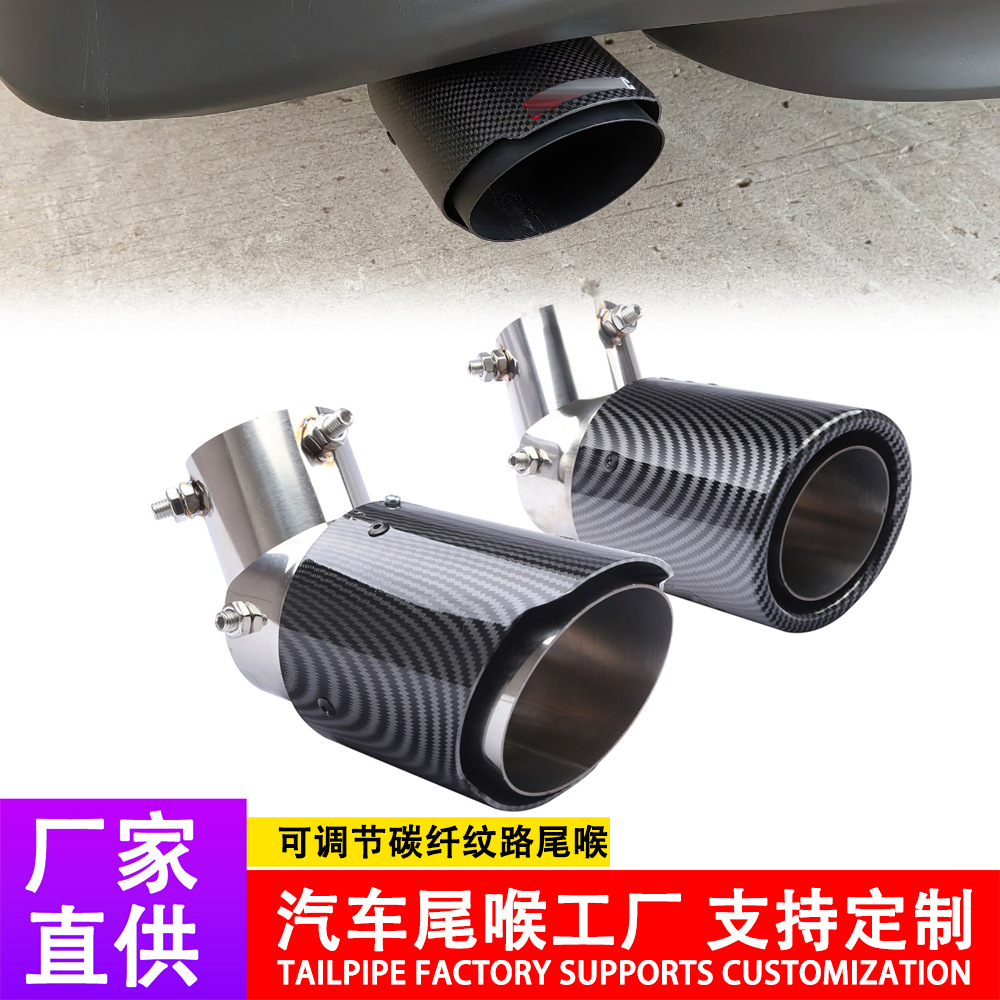 汽车可调节碳纤纹路尾喉63-89mm不锈钢弯头尾喉ABS塑料外壳消声器