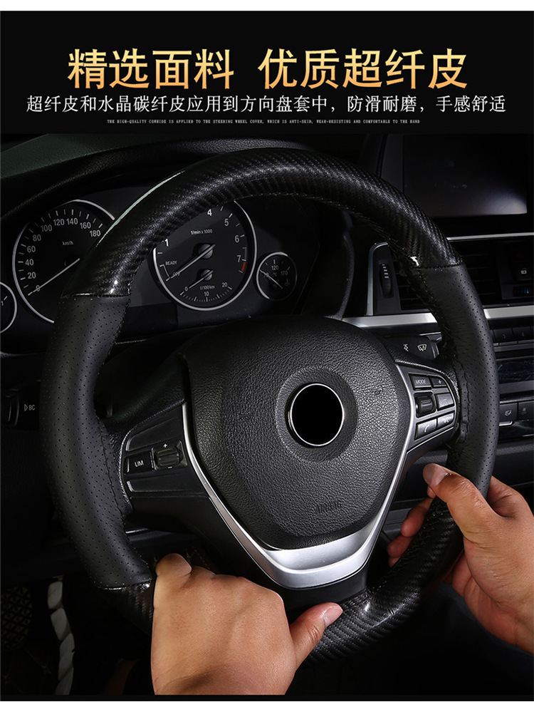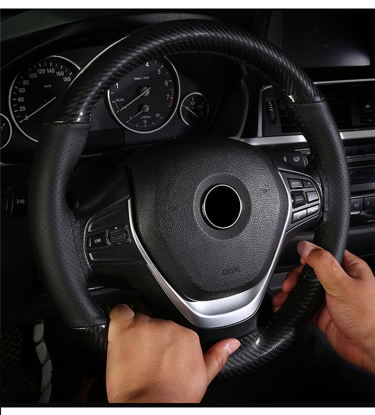 Тщательно отобранный чехол на руль из микрофибры с эффектом карбона Amazon, декоративный чехол на руль для автомобиля, подходит для всех сезонов, чехол с ручной прострочкой.