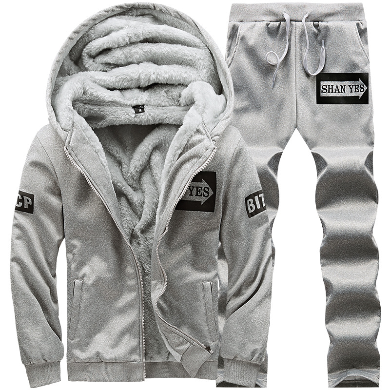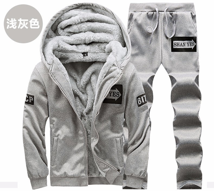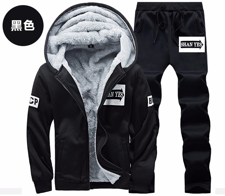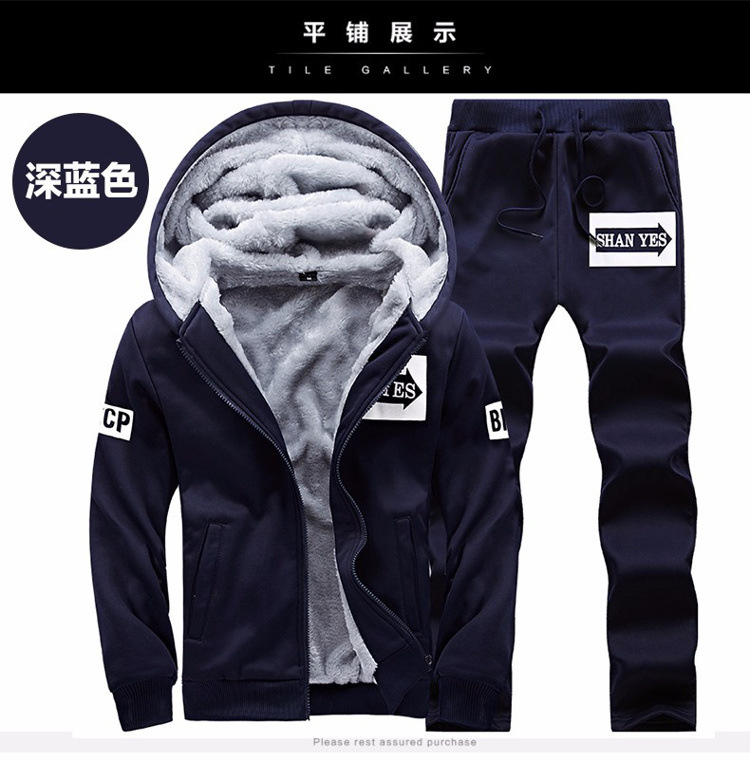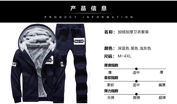 Трансграничная мужская повседневная спортивная одежда стрелка плюс бархат теплая два комплекта толстая зимняя свитерская мужская одежда