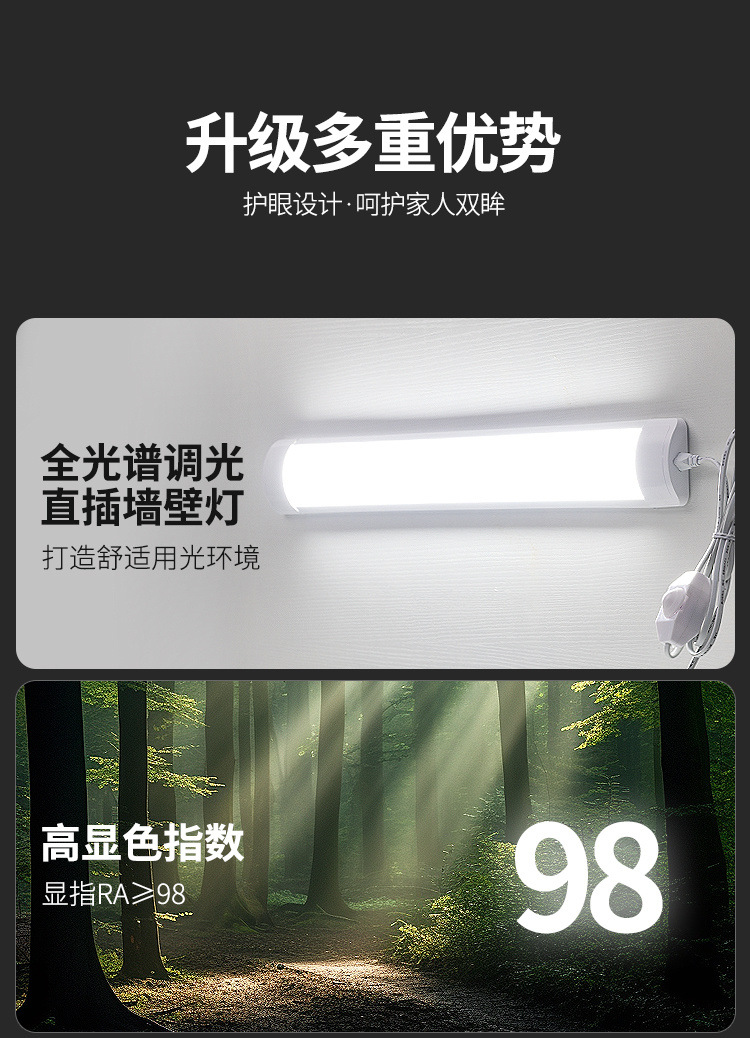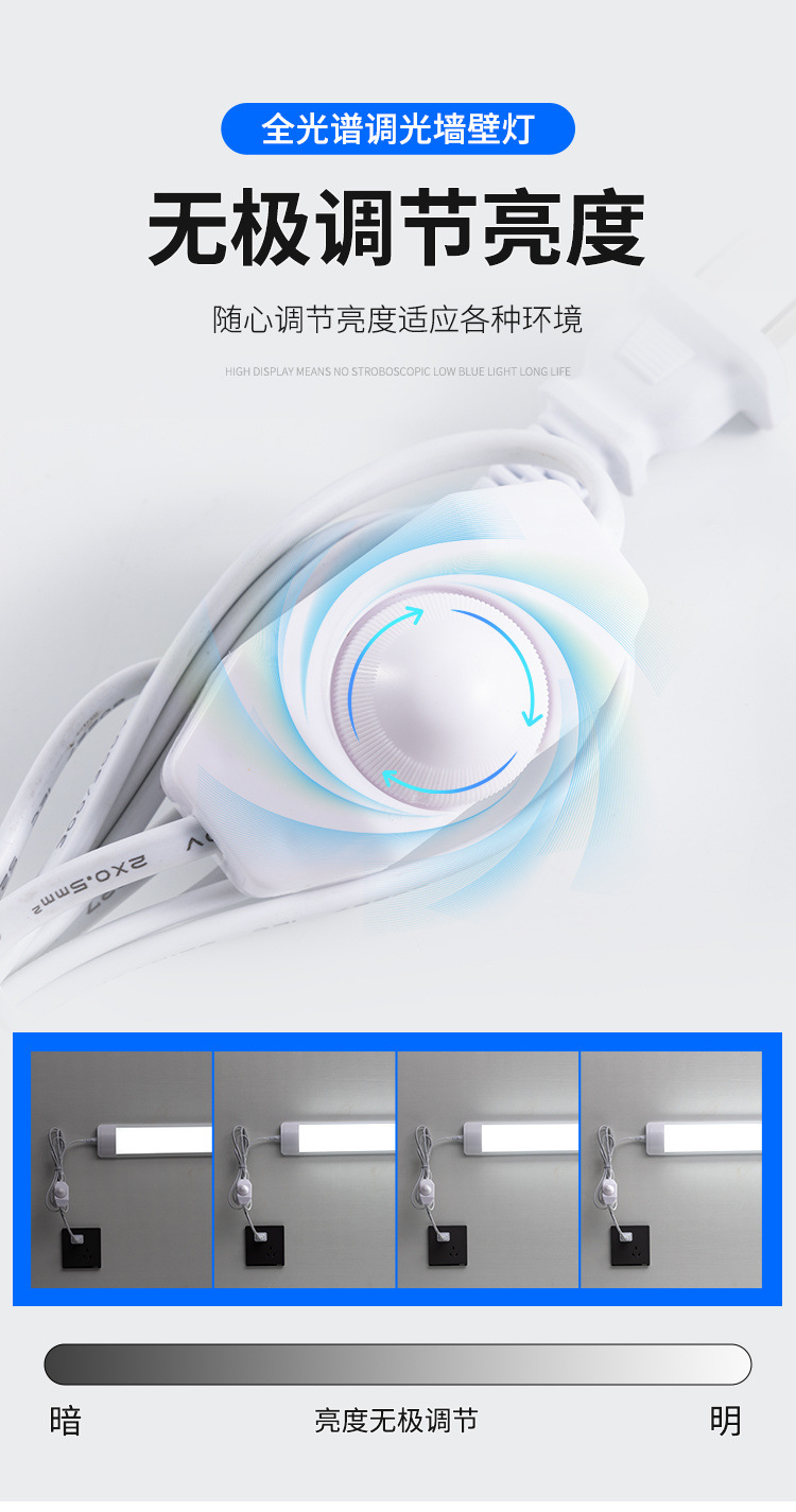 Светодиодный полноспектральный свет с прямым подключением ультра-яркая бесконечная труба затемненной лампы длинная домашняя спальня без подключения настенного светильника
